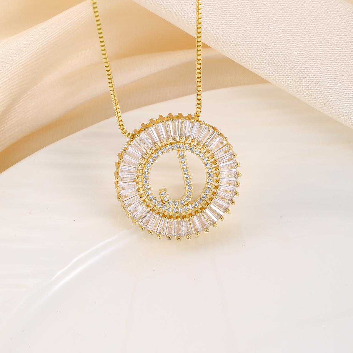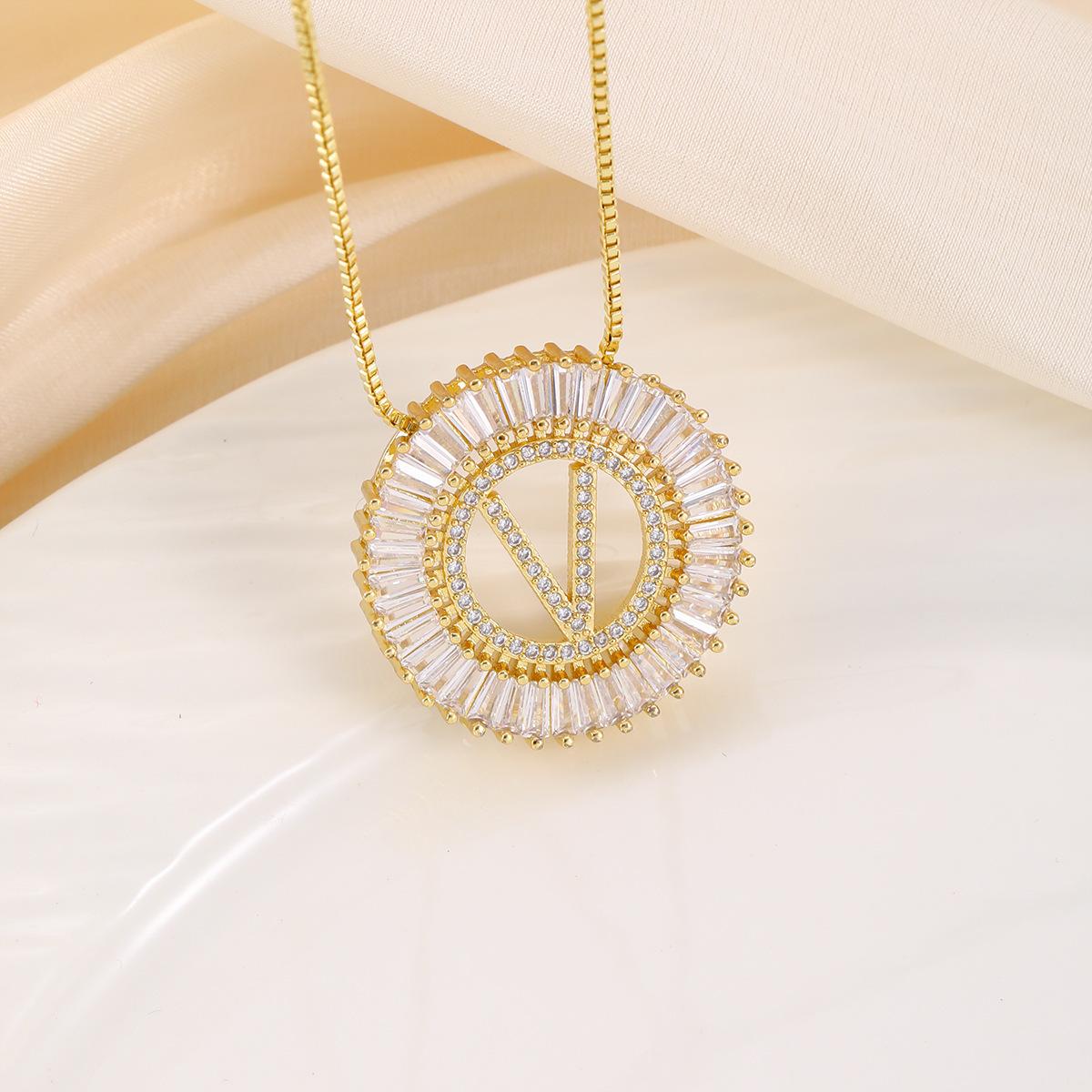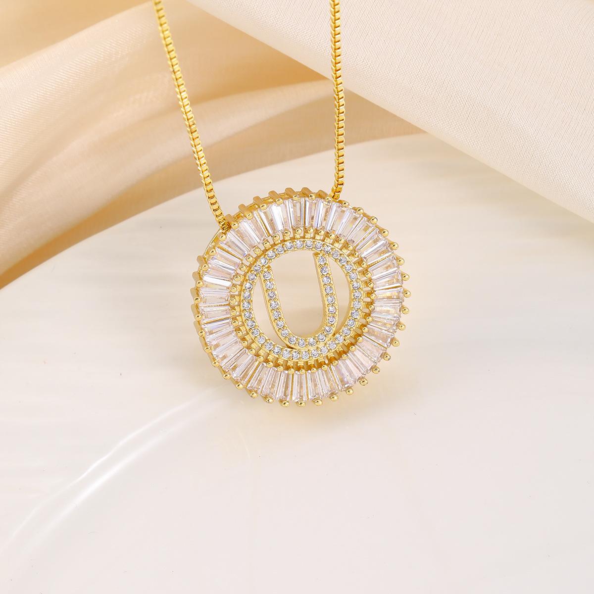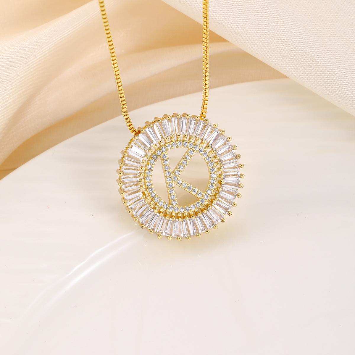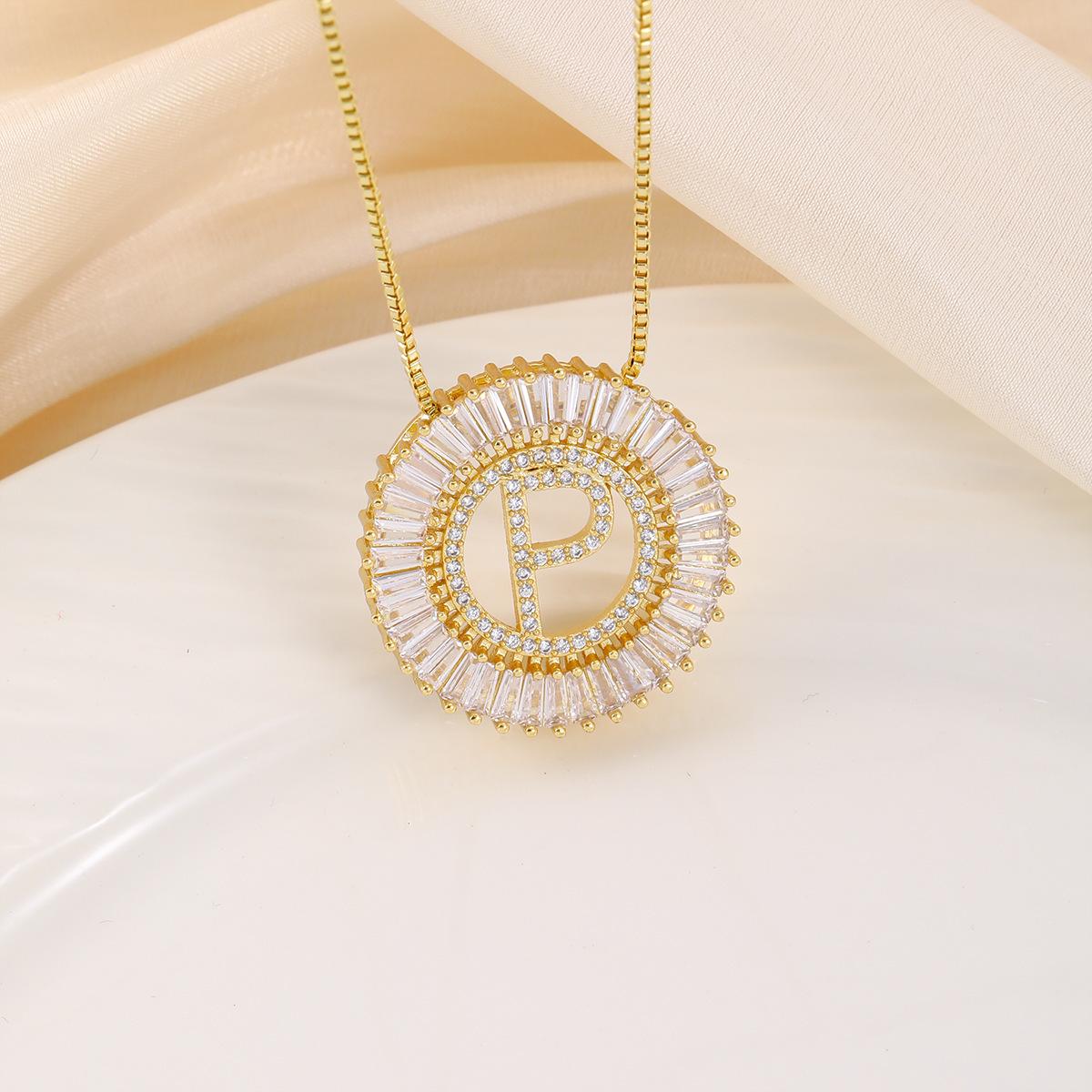 Collar con letras de joyería transfronteriza de Amazon, sencillo, con incrustaciones de cobre redondas, colgante de letra de circonita, cadena de clavícula, venta al por mayor