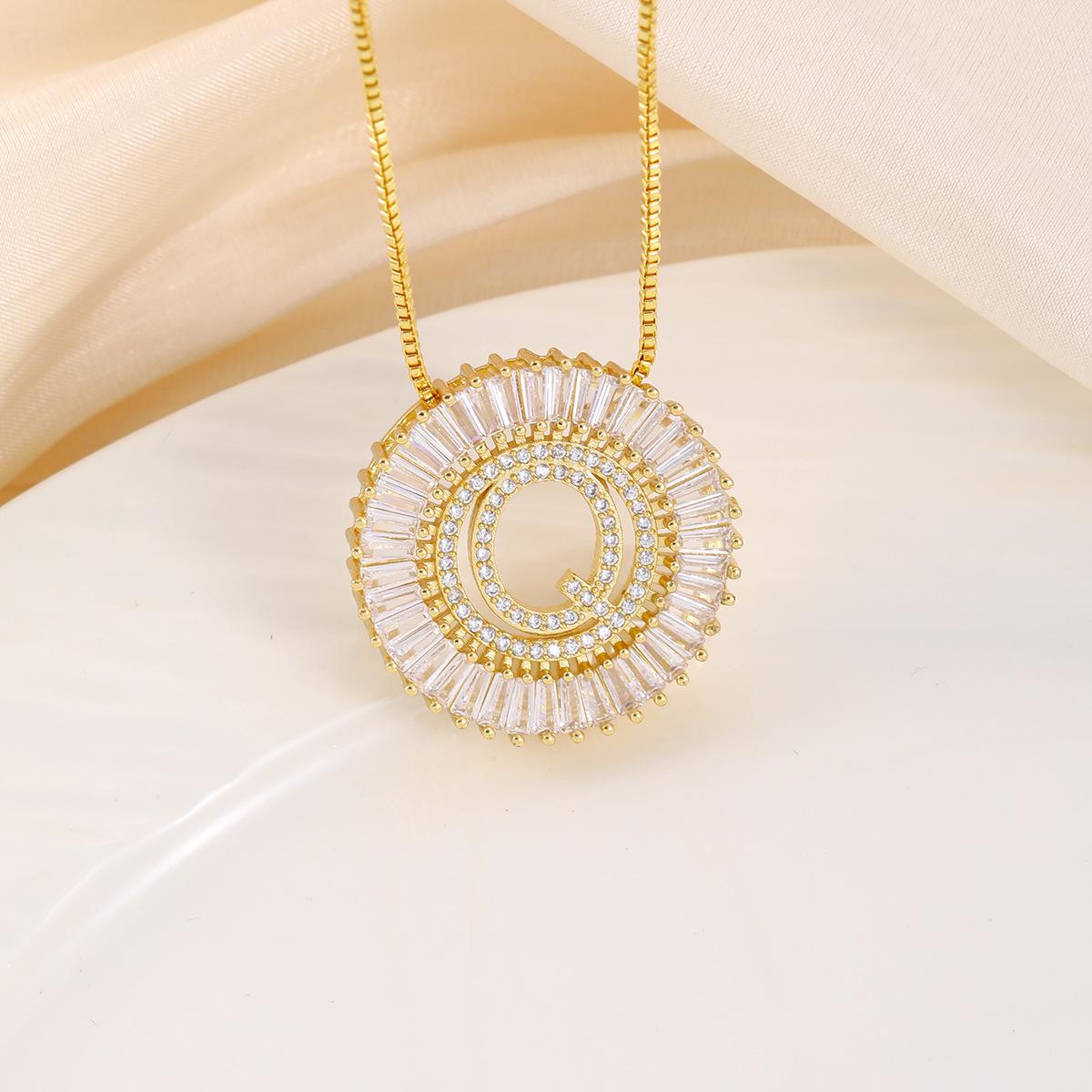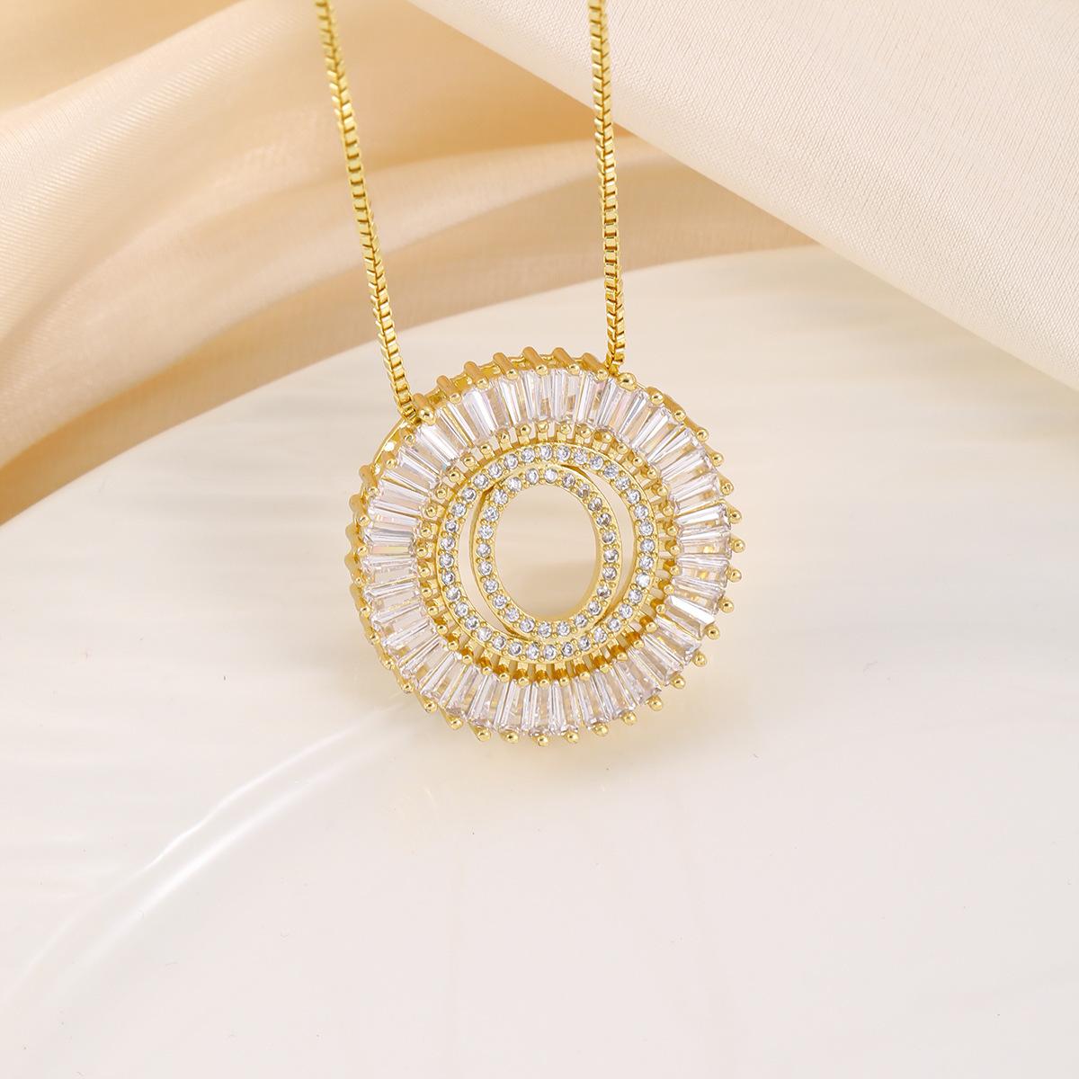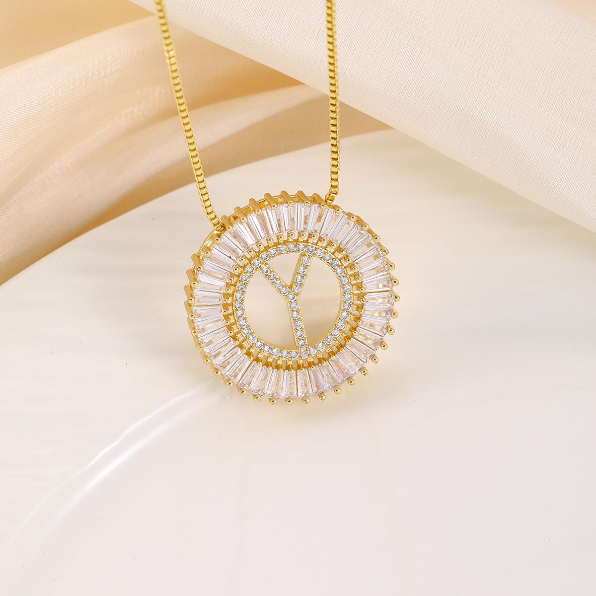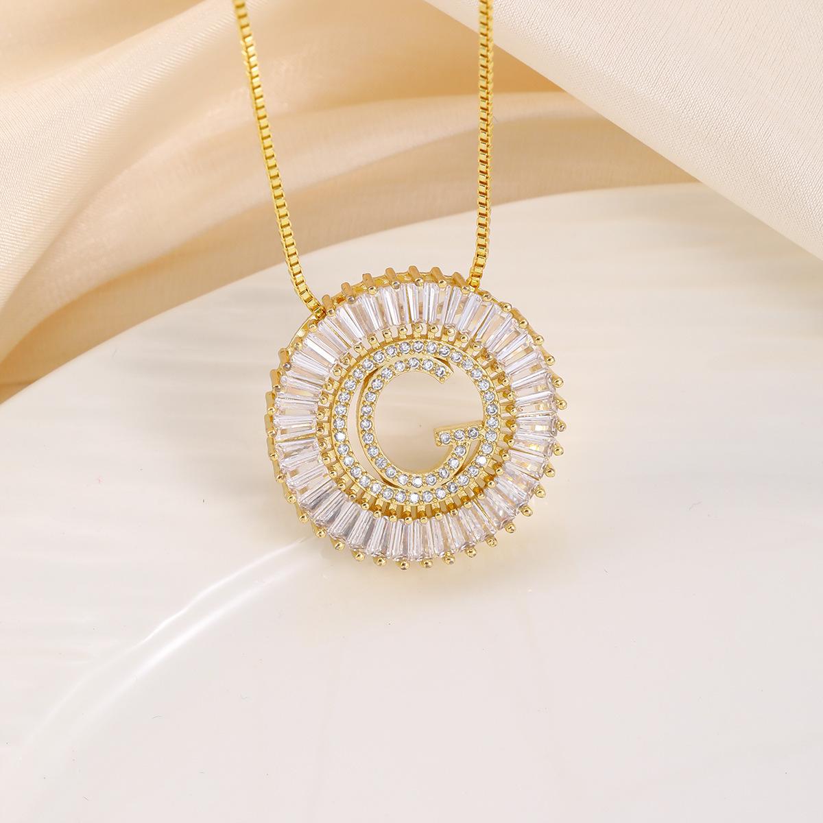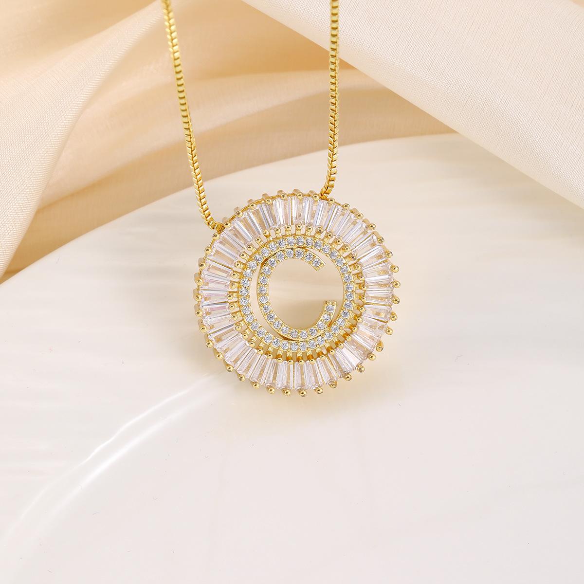 Collar con letras de joyería transfronteriza de Amazon, sencillo, con incrustaciones de cobre redondas, colgante de letra de circonita, cadena de clavícula, venta al por mayor