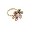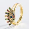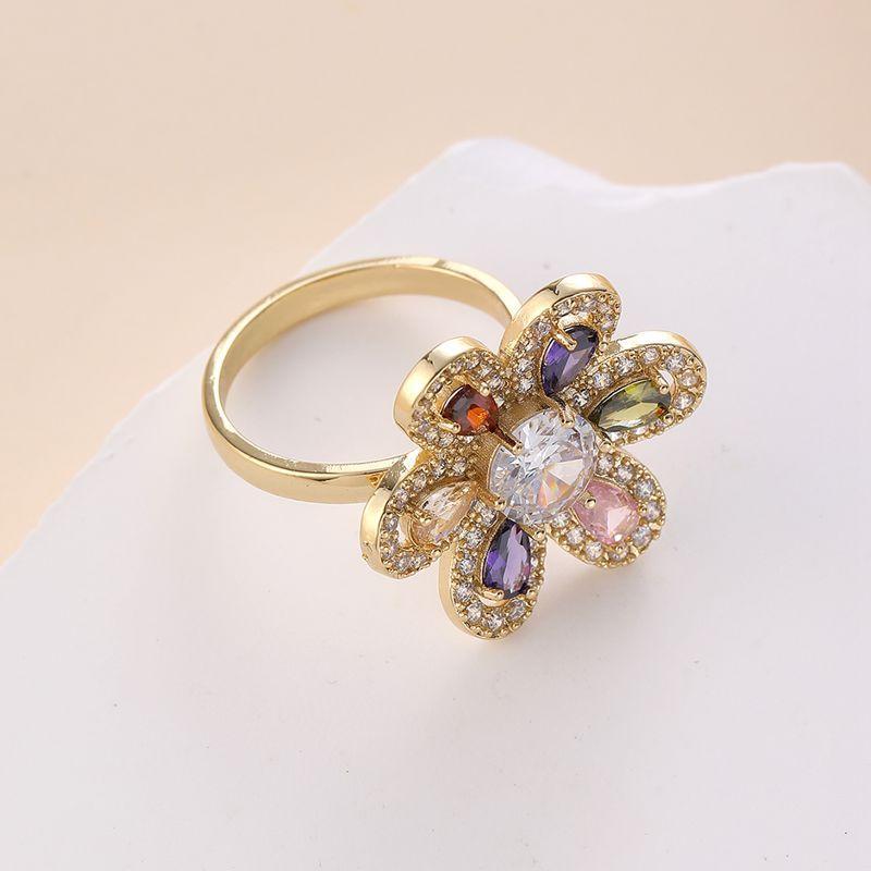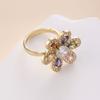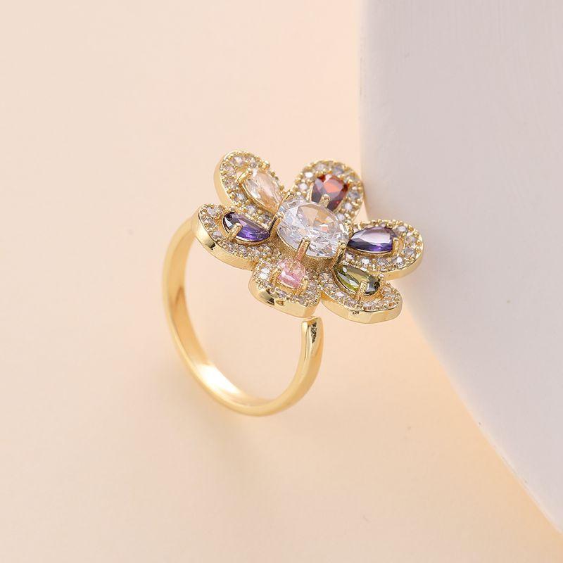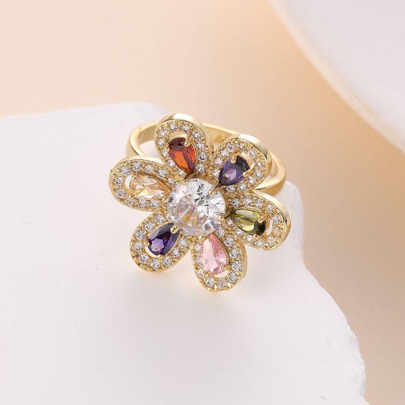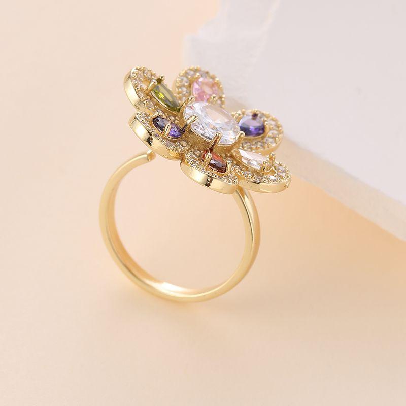 Anillo nuevo abierto de seis hojas de color dorado con nicho de joyería de circonita con micro incrustaciones bañado en oro de estilo europeo y americano transfronterizo