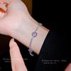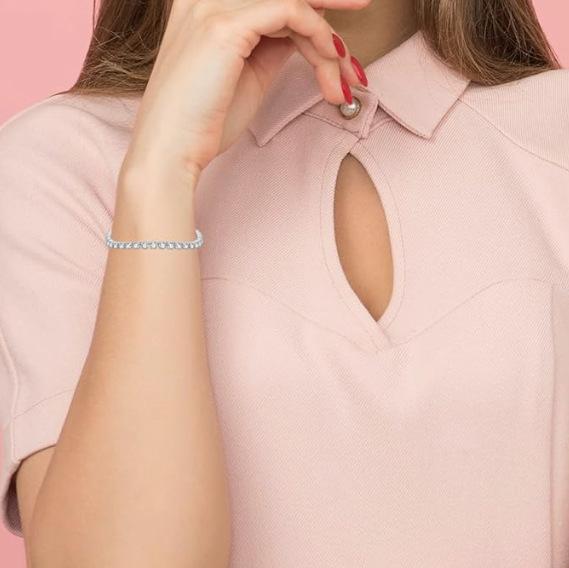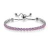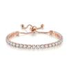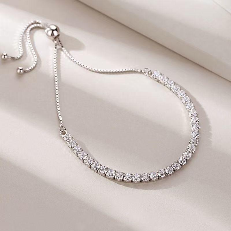 Pulsera de Circonita Europea y Americana de Alta Gama, Pulsera de Circonita para Mujer de 4 mm Redonda de una Sola Fila con Diamantes Completos, Joyería Ajustable de Fábrica