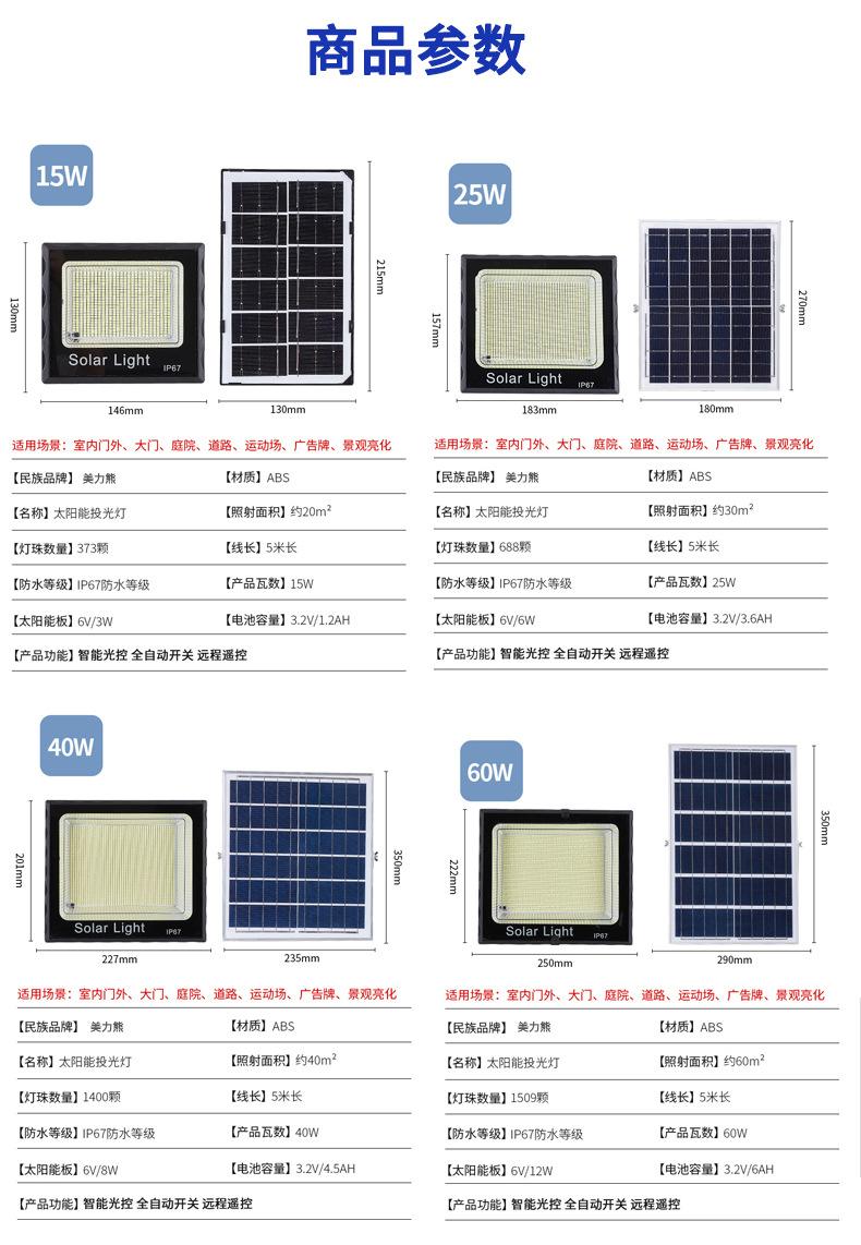 15W (373 lamp beads), 25W (688 lamp beads), 40W (1400 lamp beads), 60W (1509 lamp beads), 100W (2350 lamp beads)