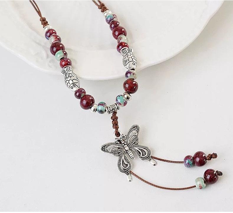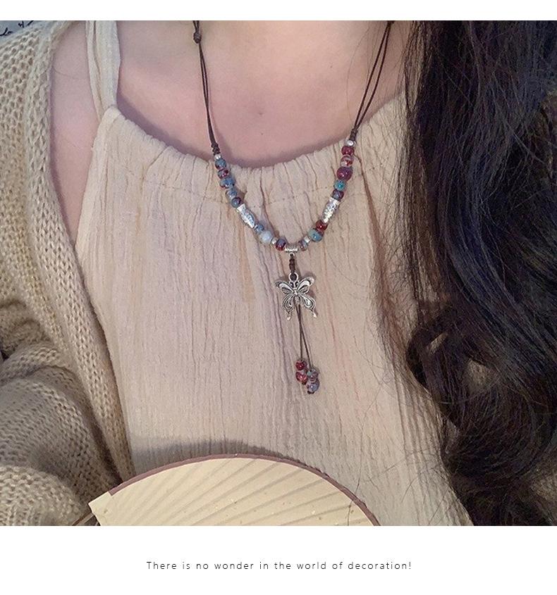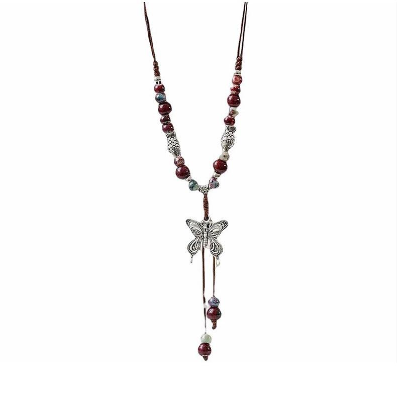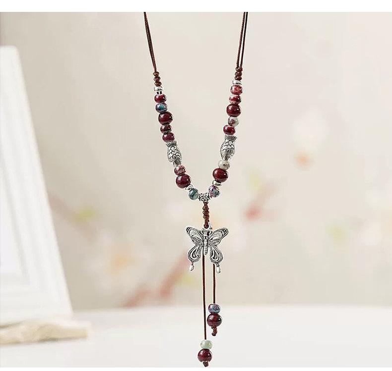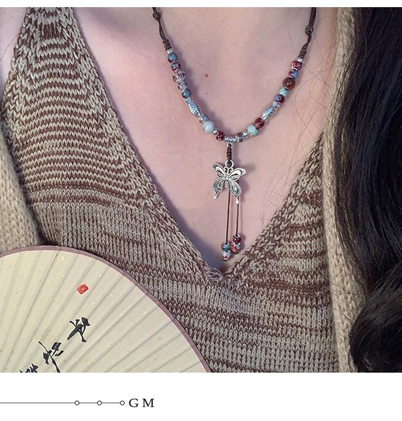 Nuevo collar largo con cuentas de mariposa de estilo étnico chino, diseño de nicho de moda para mujer, estilo antiguo, cadena de suéter con temperamento personalizado