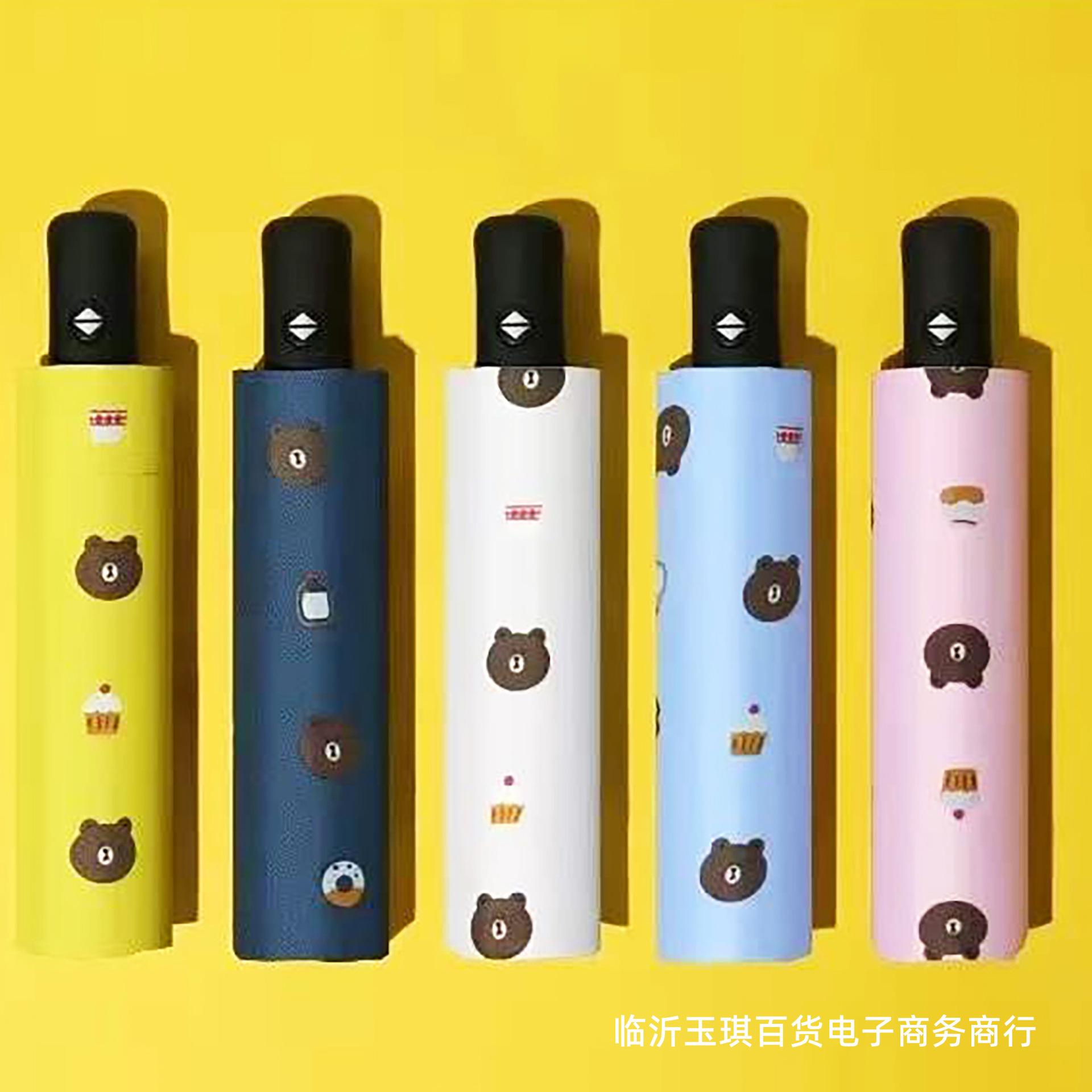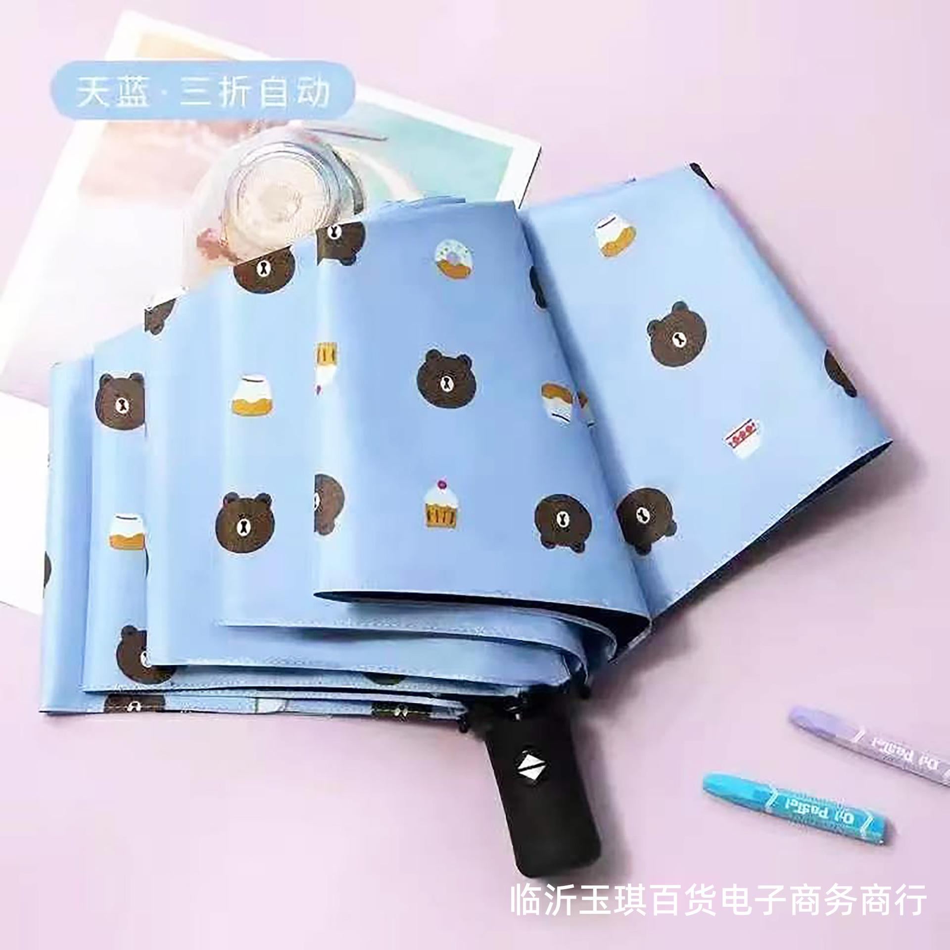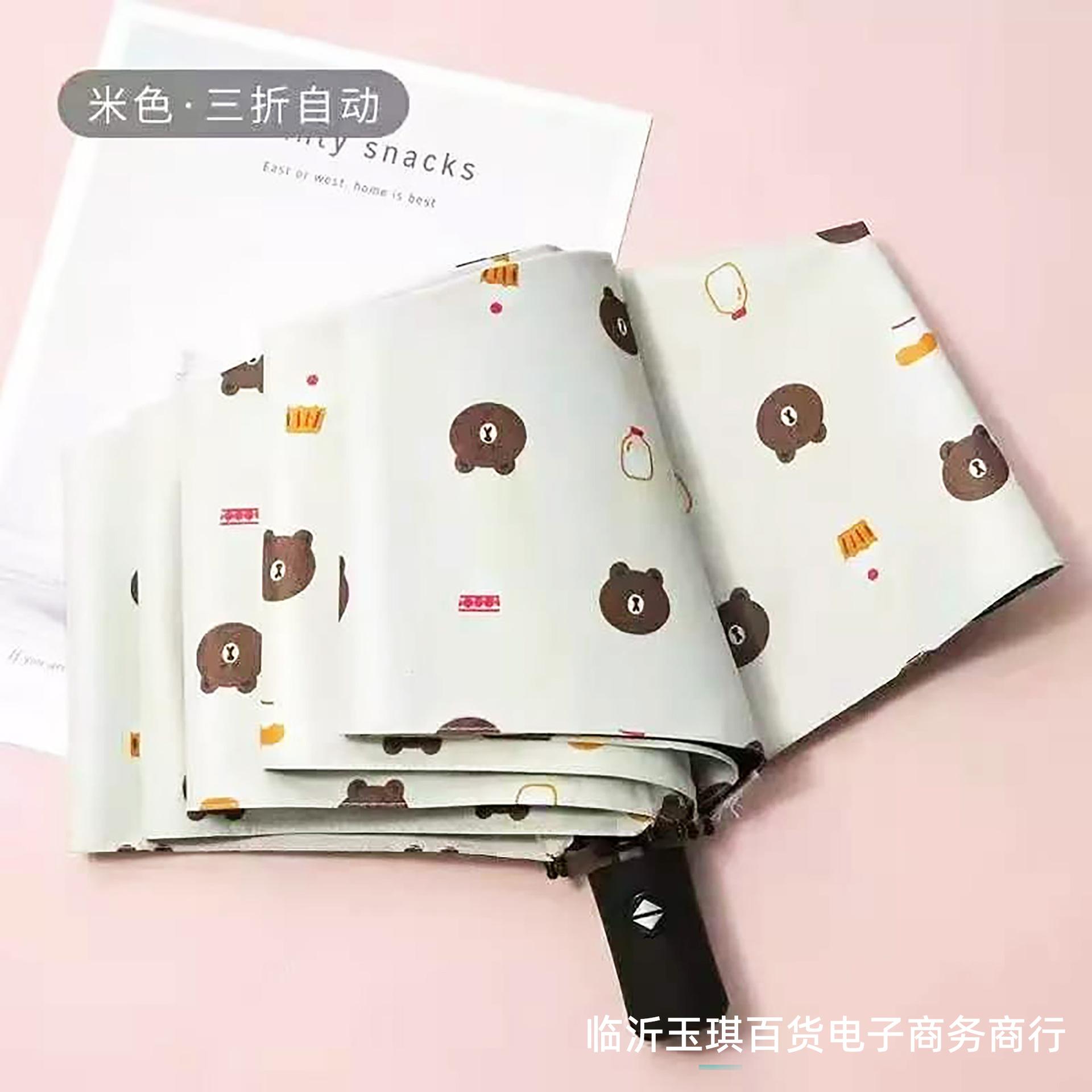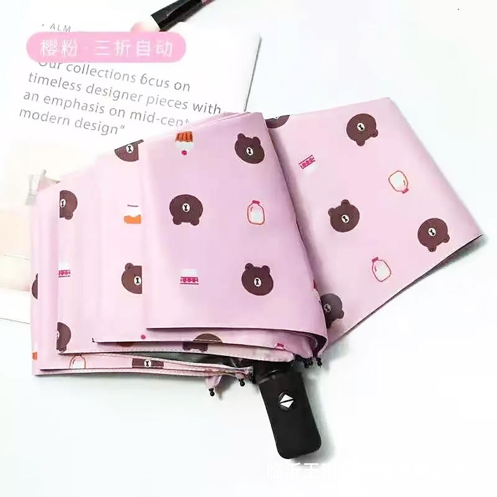 Paraguas automático de oso, de goma negra, portátil, de tres pliegues, resistente al sol y a la lluvia, de doble uso, con protección solar y protección UV, venta al por mayor.