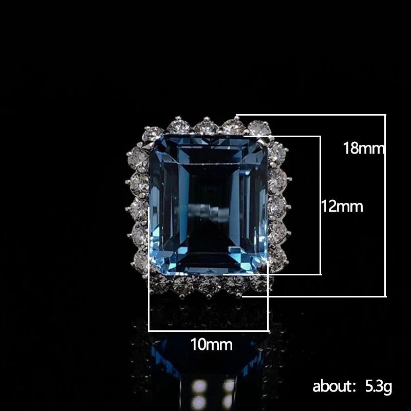 Anillo de lujo Cao Shi con zafiro topacio simulado y diamantes, anillo cuadrado princesa, venta en vivo de nuevos productos por parte de celebridades de Internet.