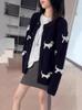 Cárdigan de punto de longitud media para mujer, cárdigan de punto con bolsillos sólidos, abrigo de otoño e invierno de comercio exterior europeo y americano, abrigo para mujer