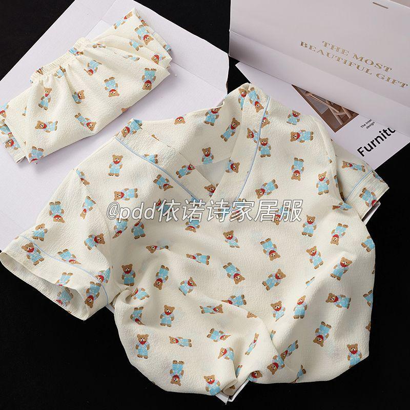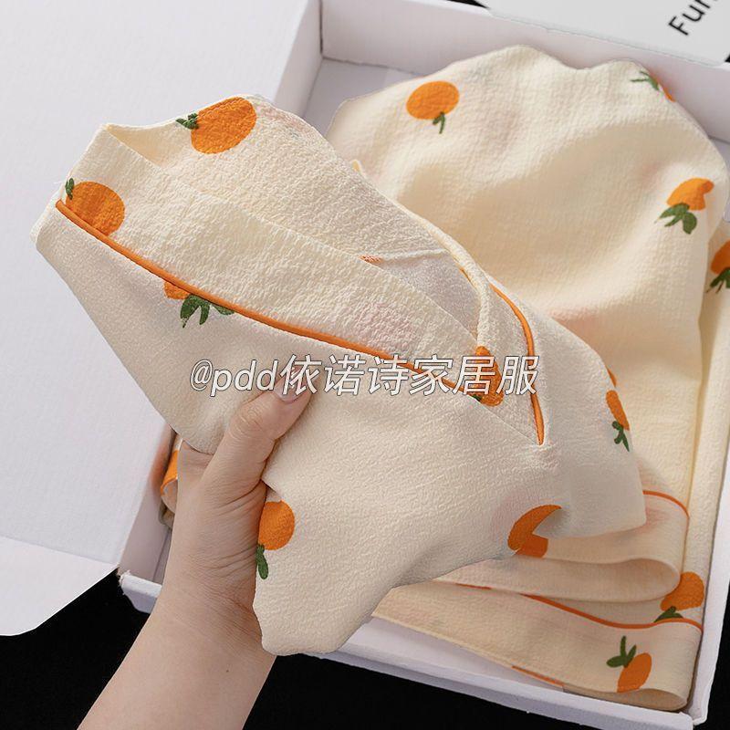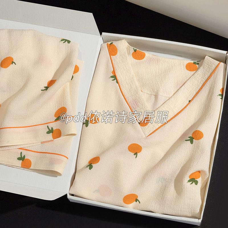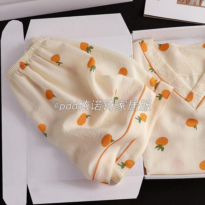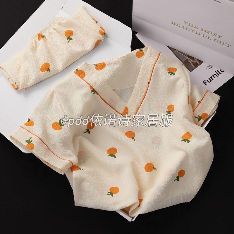 Pijama de algodón estilo ins para bebé, de verano, de manga corta, fino, pequeño, naranja, dulce, para estudiantes y niñas.