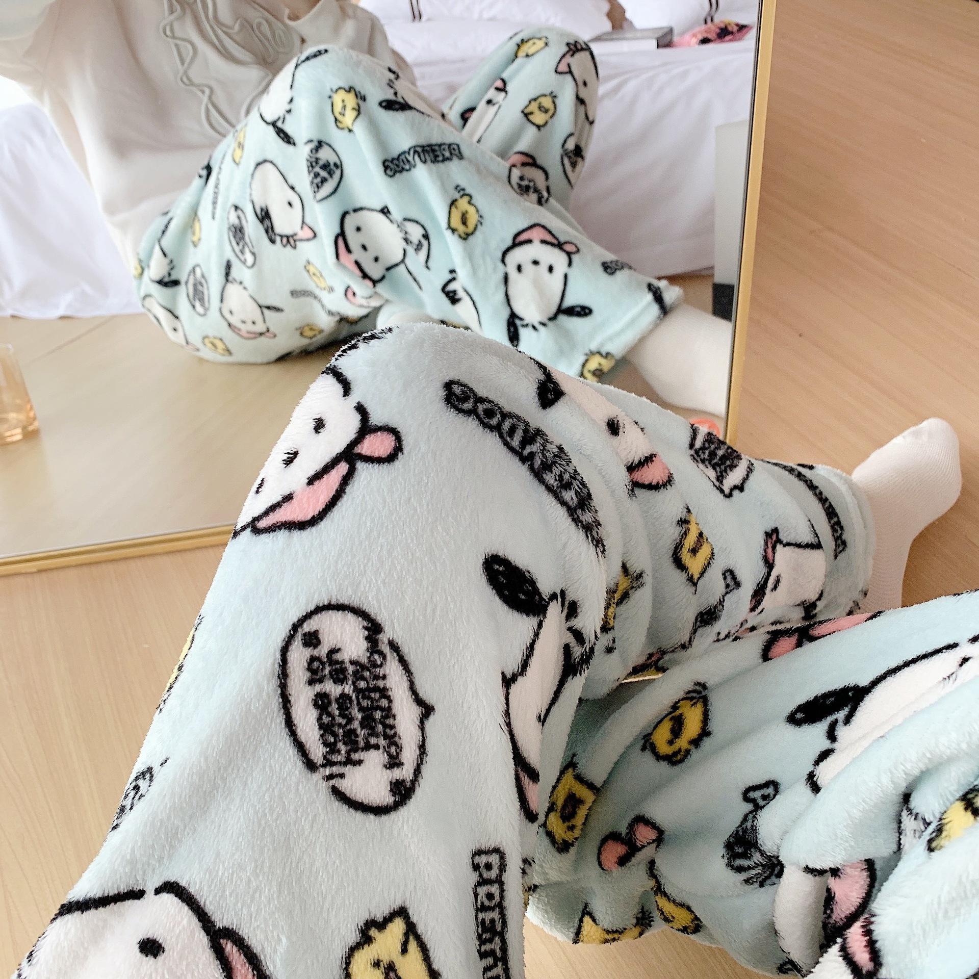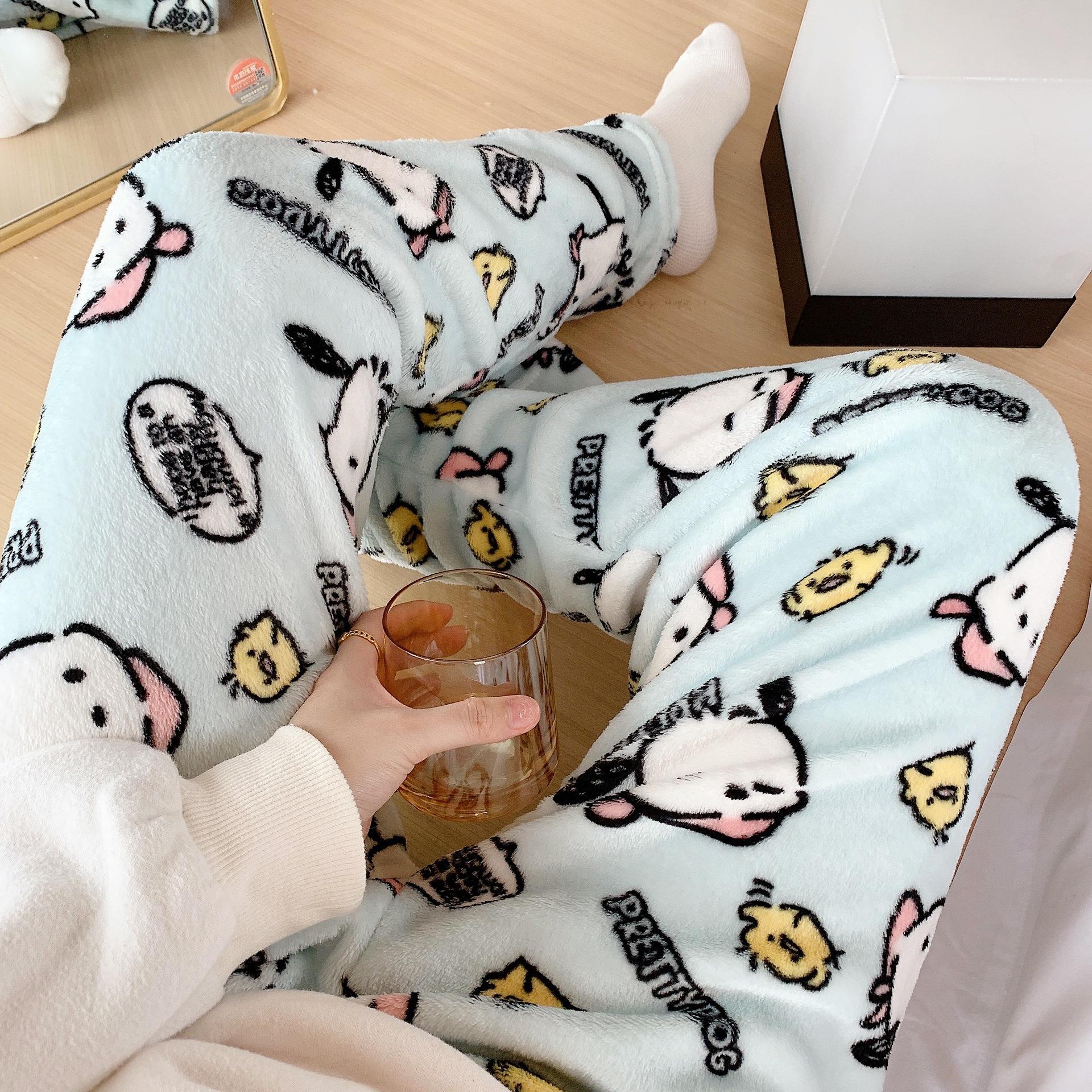 Pantalones de pijama de franela con diseño de perro Pacha de dibujos animados para mujer, otoño e invierno, nuevos pantalones casuales cálidos con forro polar grueso de coral para el hogar