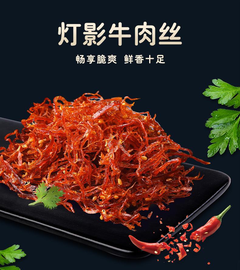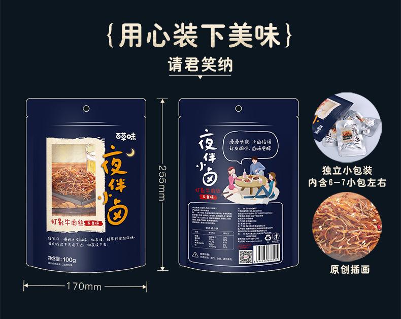 Tiras de Carne Seca Baicaowei 100g Paquete de Snack Picante Desmenuzado a Mano, 60 Bolsas, Estilo Sichuan Casual