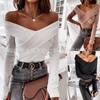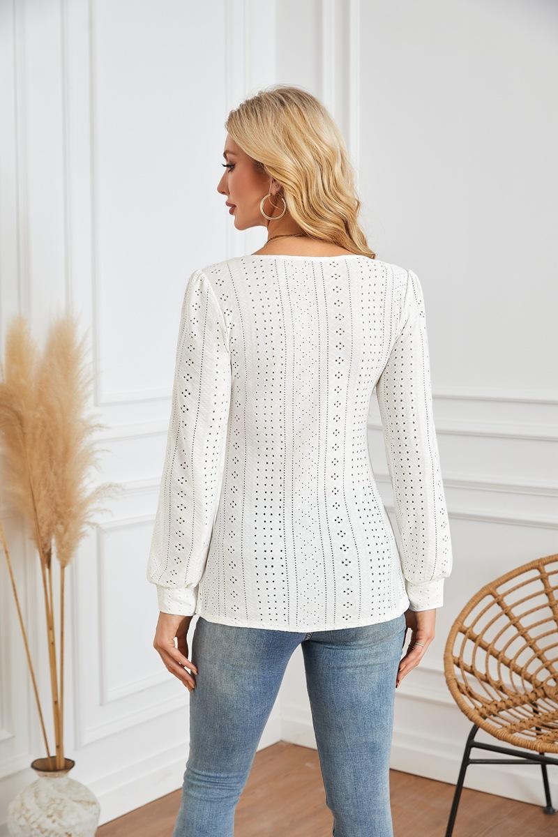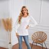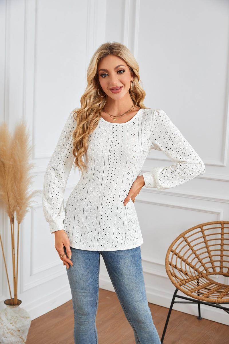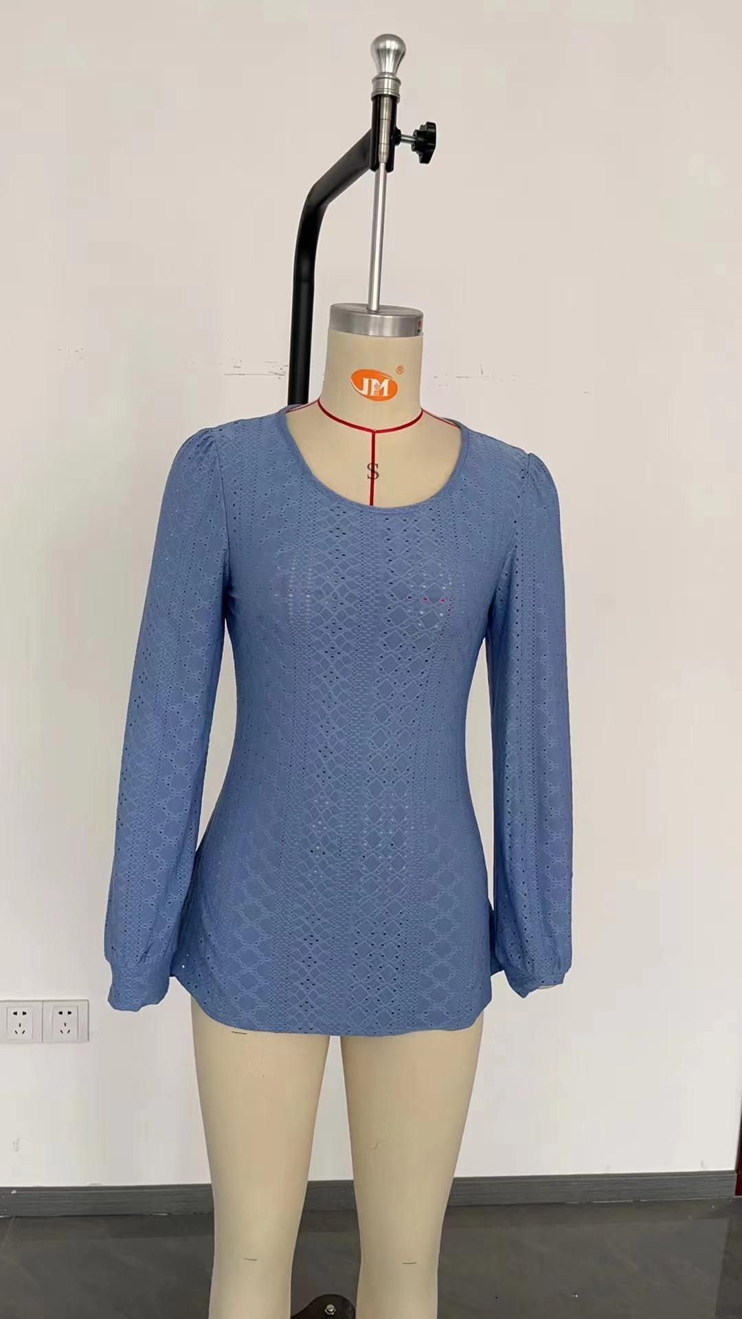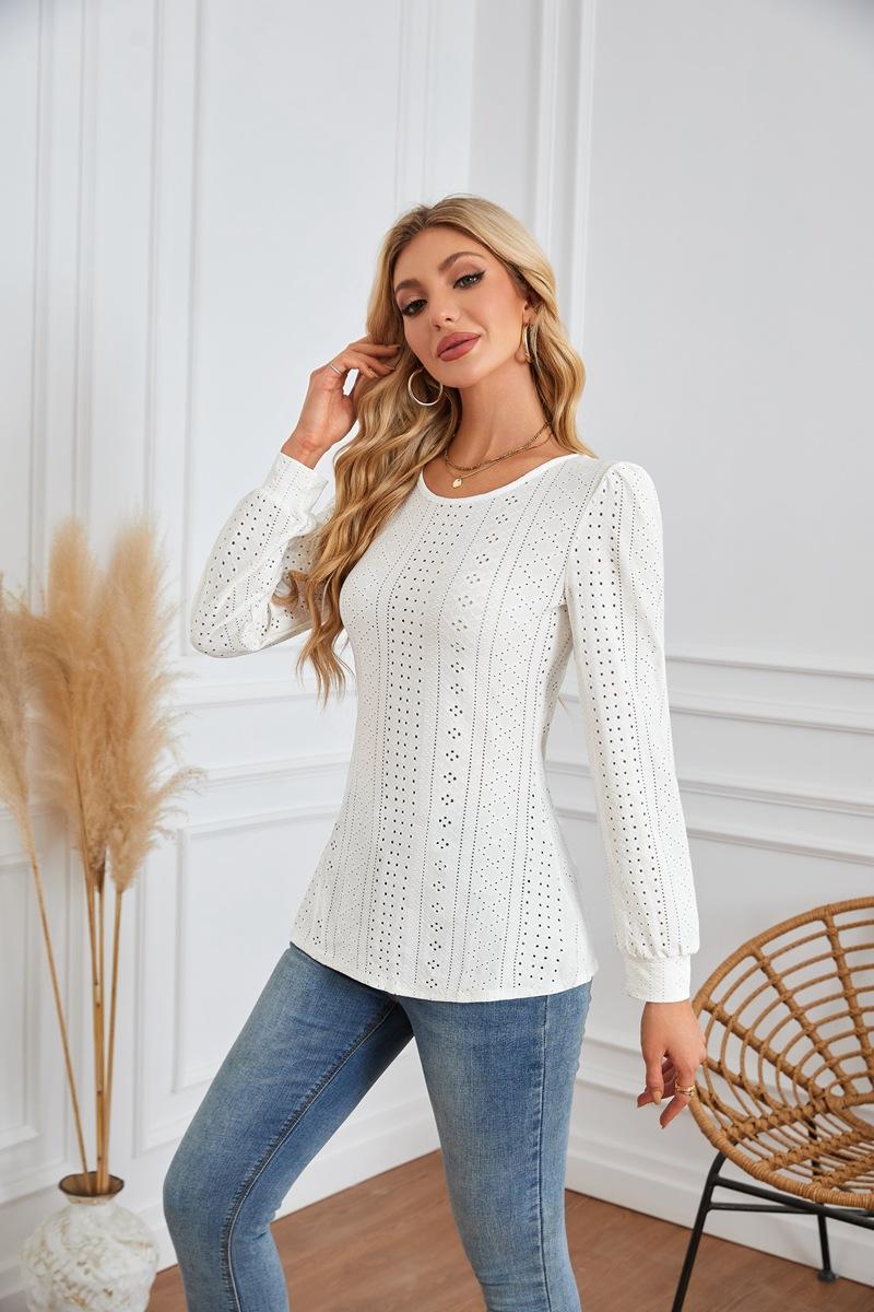 Ropa de Mujer Transfronteriza de Exportación Europea y Americana 2025 Estilo Caliente de Amazon Cuello Redondo Agujero Pequeño Manga Abullonada Top Camiseta de Manga Larga