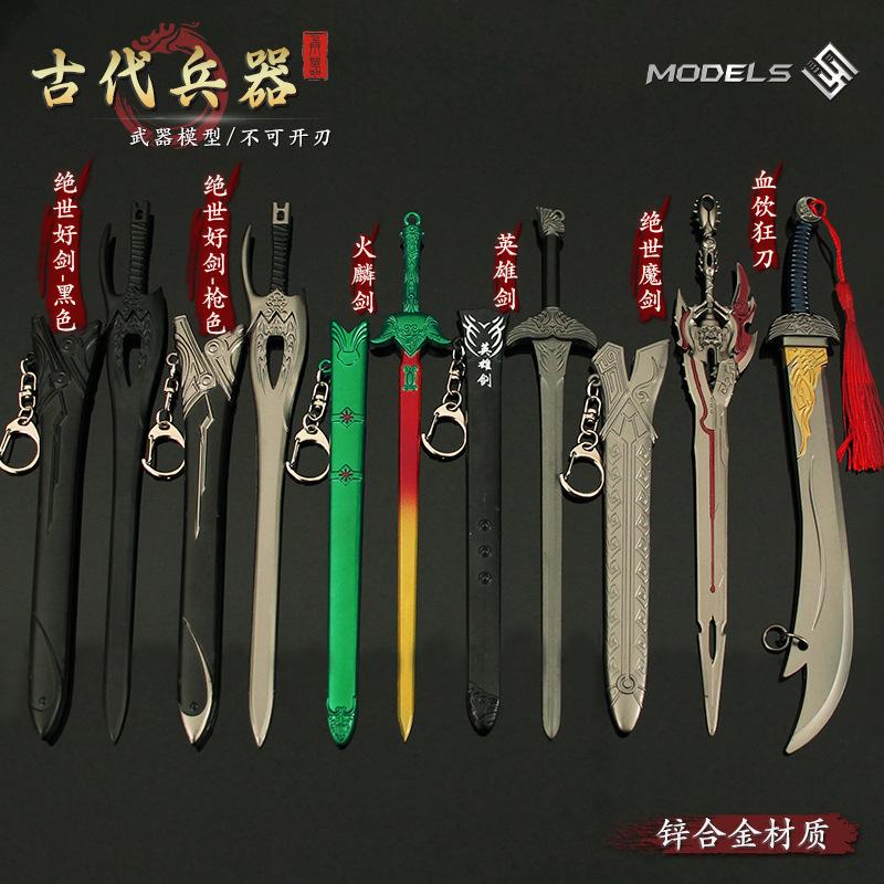 Los expositores de productos deben adquirirse por separado, y se indicarán claramente si se regalan.Armamento Tibetano Antiguo Libro Secreto Accesorios Armas Espada Inigualable Deng Chanyu Espada de Héroe Fantasma Caja Ciega Periferia