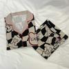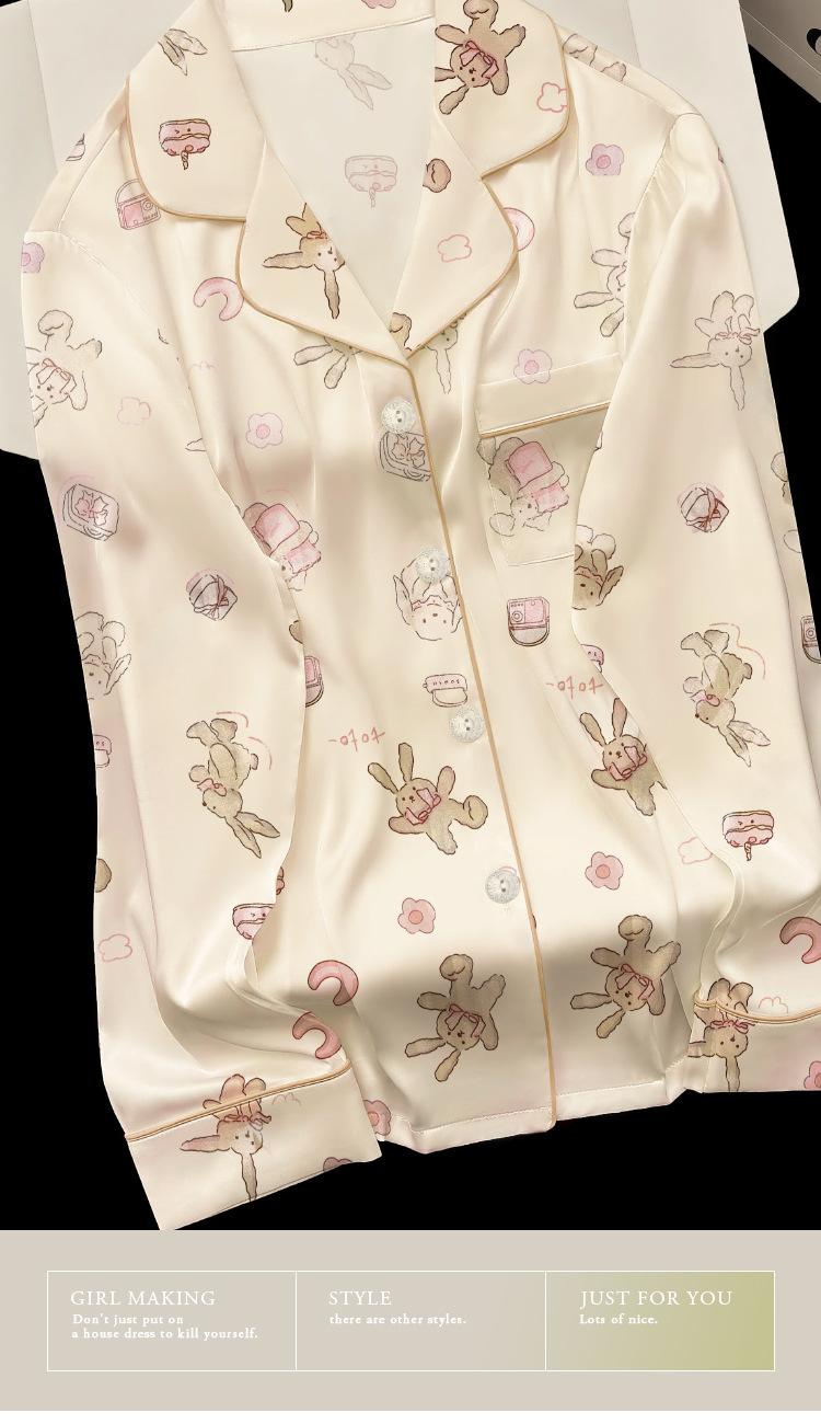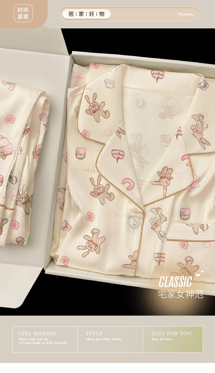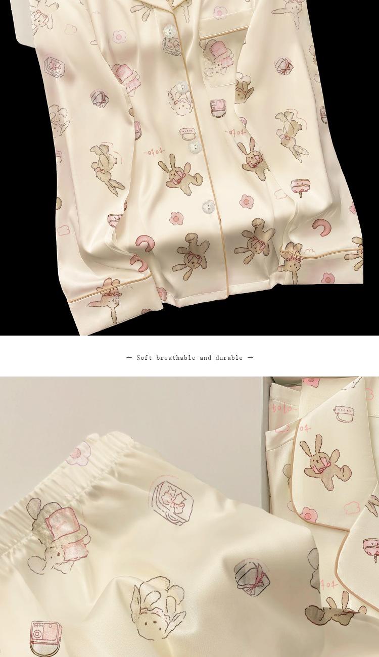 Moda transfronteriza de primavera y otoño solapa crema muñeca conejo estampado pijama manga larga pantalón dos piezas foto real mayoreo