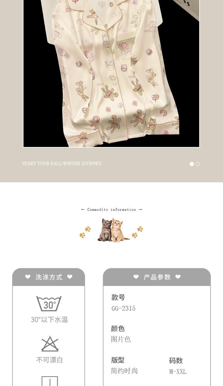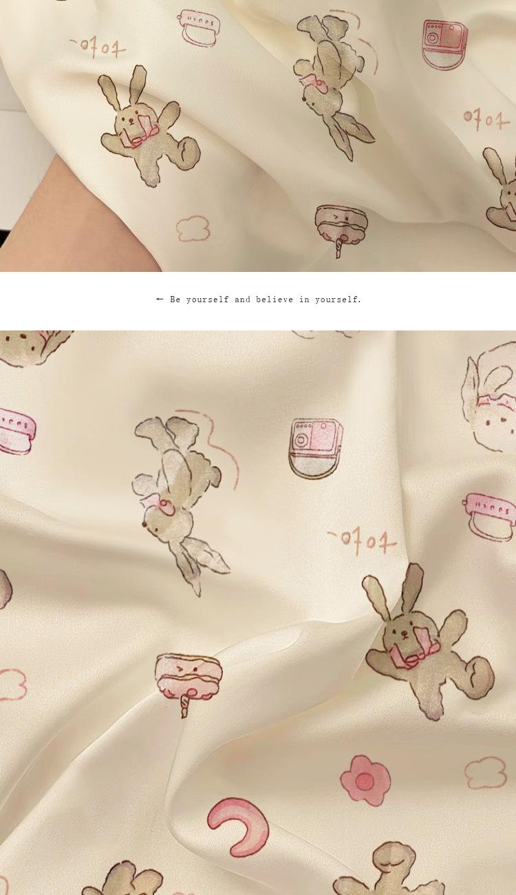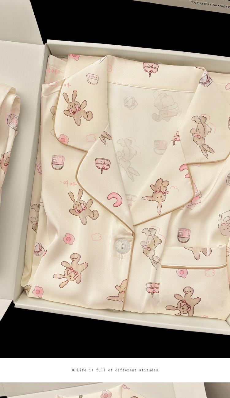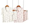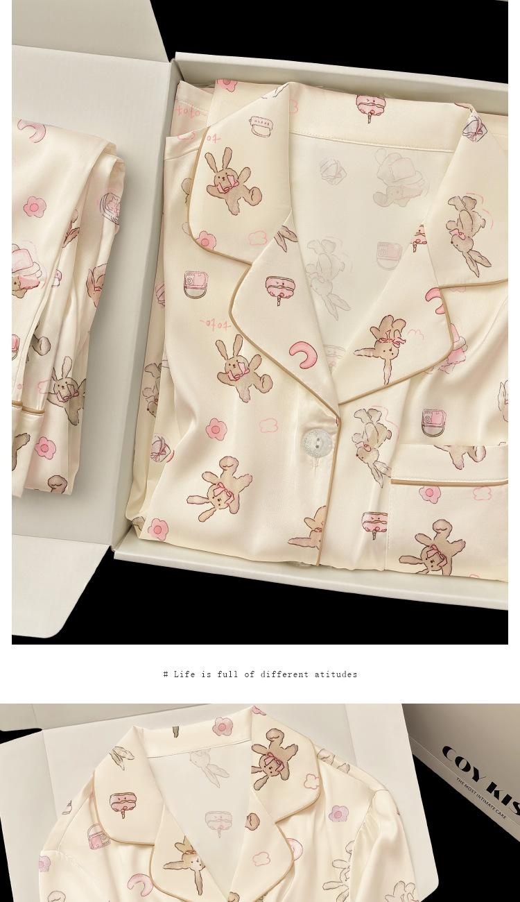 Moda transfronteriza de primavera y otoño solapa crema muñeca conejo estampado pijama manga larga pantalón dos piezas foto real mayoreo