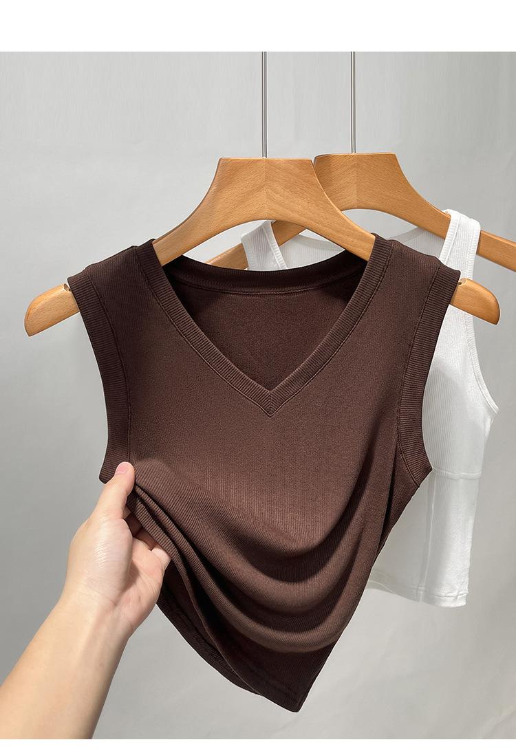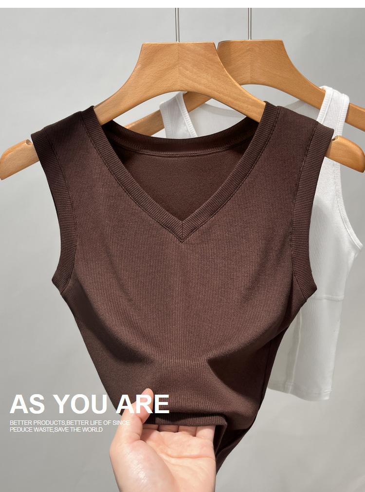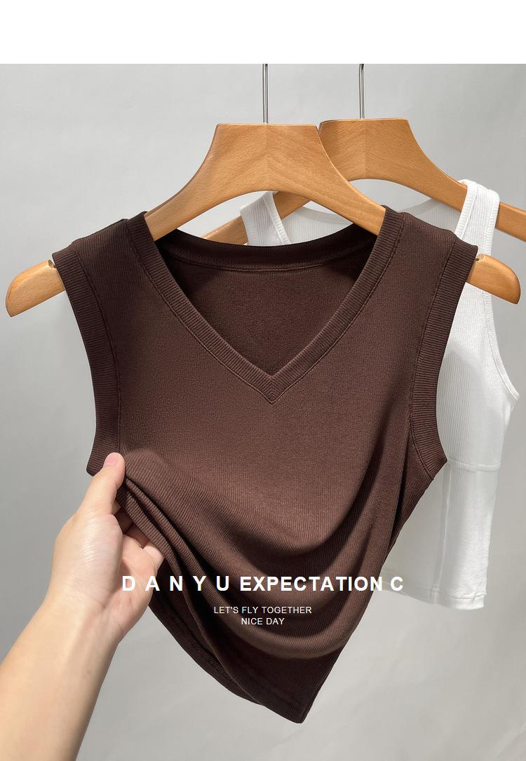 Chaleco Chaleco Ropa Exterior de Verano para Mujer 2025 Nuevo Verano Elegante Cuello en V Camiseta sin Mangas con Camiseta Base Top Corto