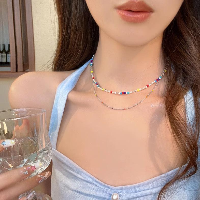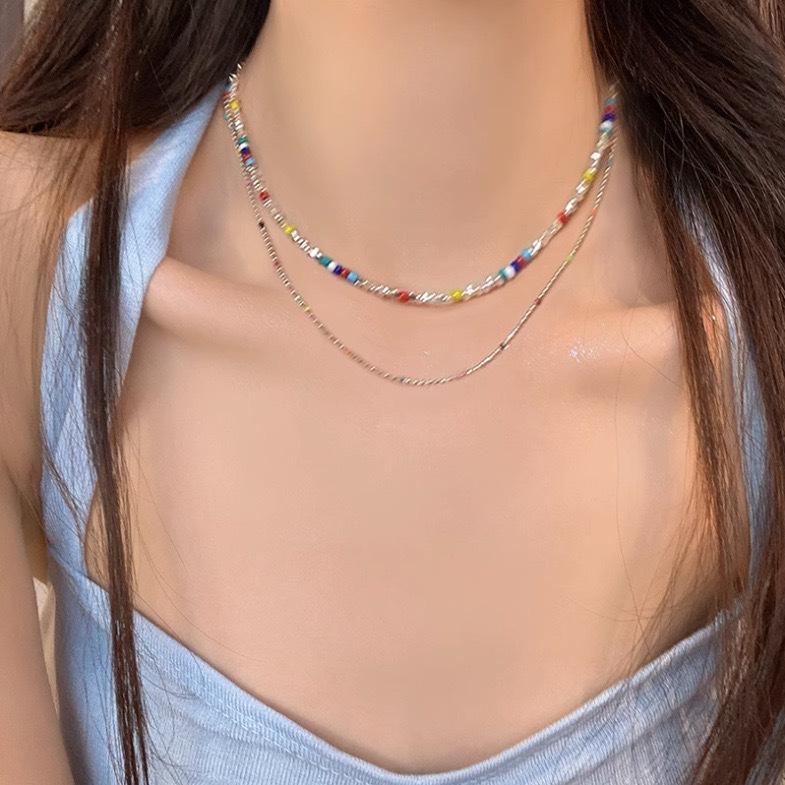 Collar de plata con cuentas coloridas y rotas para mujer, diseño de nicho ligero y lujoso de verano, cadena de clavícula, accesorios