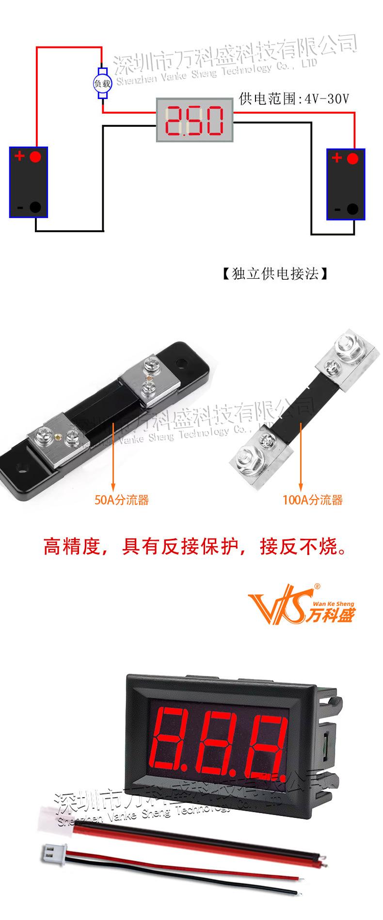 Amperímetro de CC DC0-10A 50A/100A, cabezal medidor digital con ajuste fino, pantalla digital, medidor de corriente con carcasa