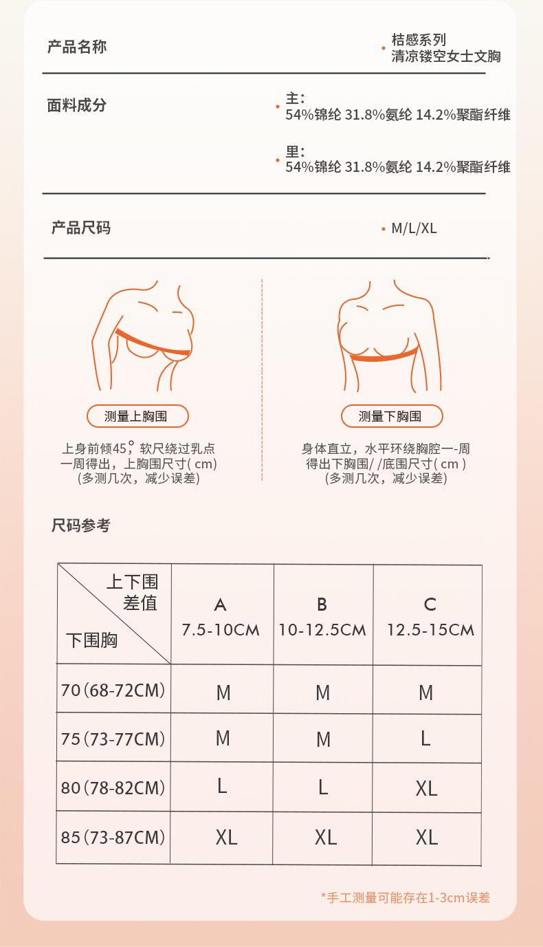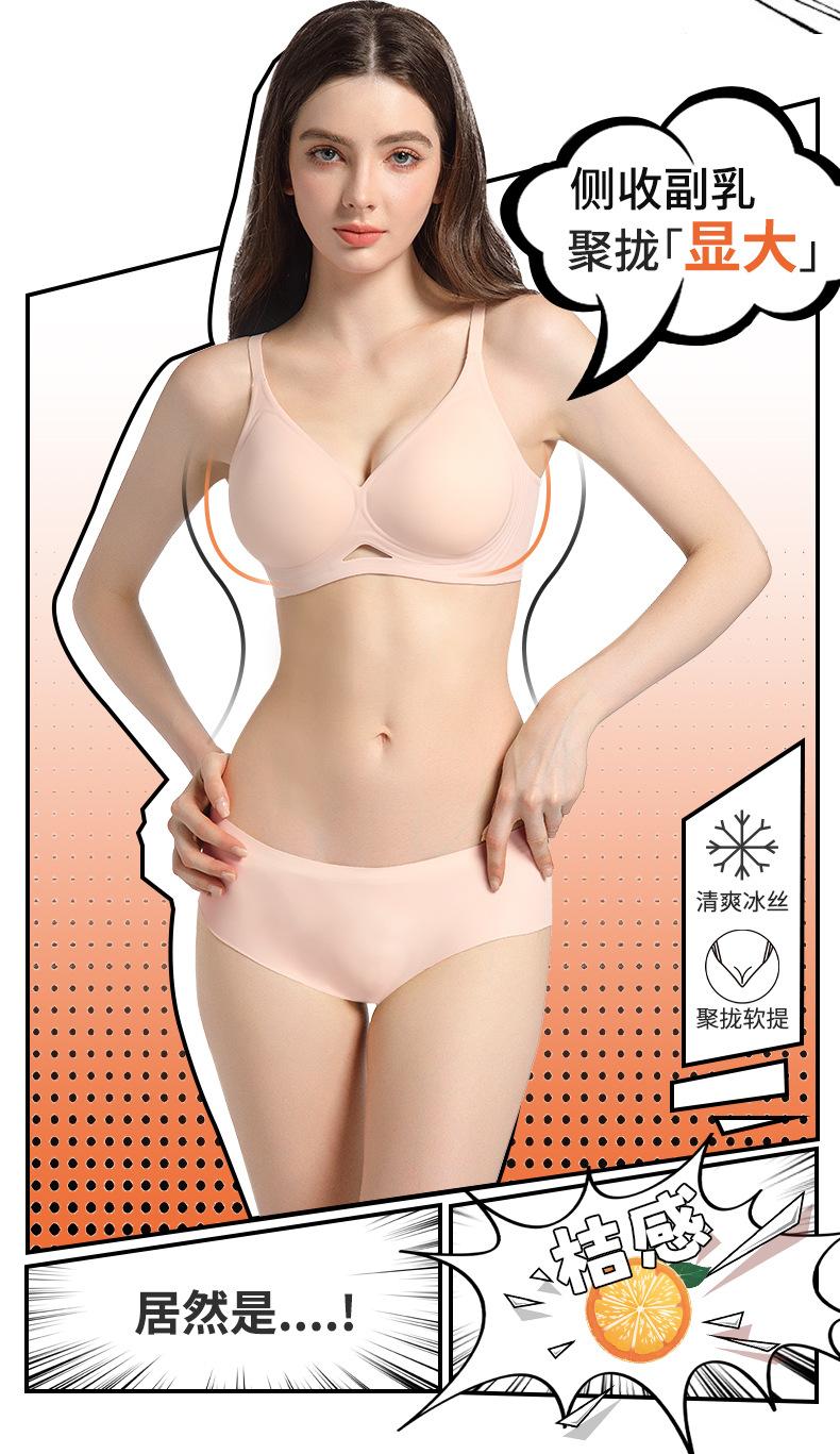 Cool Life Naranja 3D Soporte Suave Set de Ropa Interior para Mujer Push up Brillante Sin Costuras Sujetador Fino Pecho Grande Verano