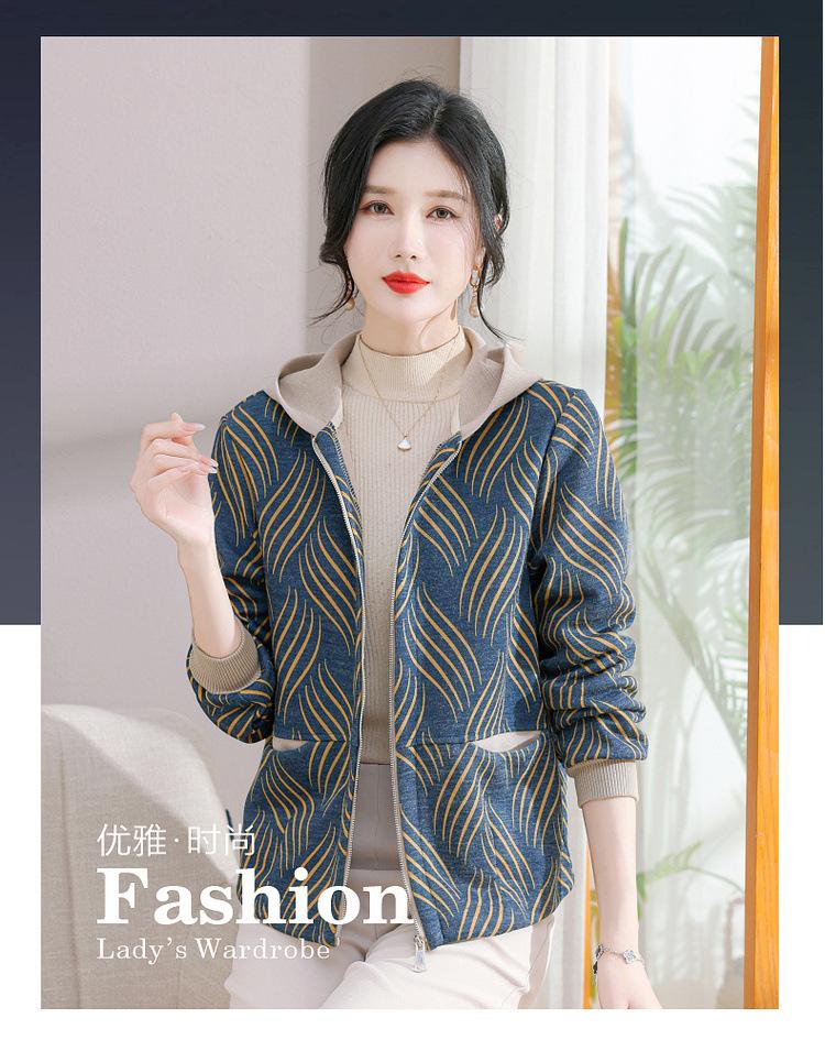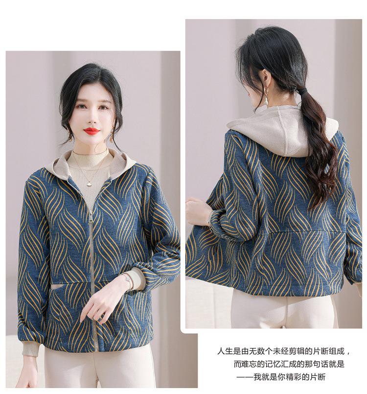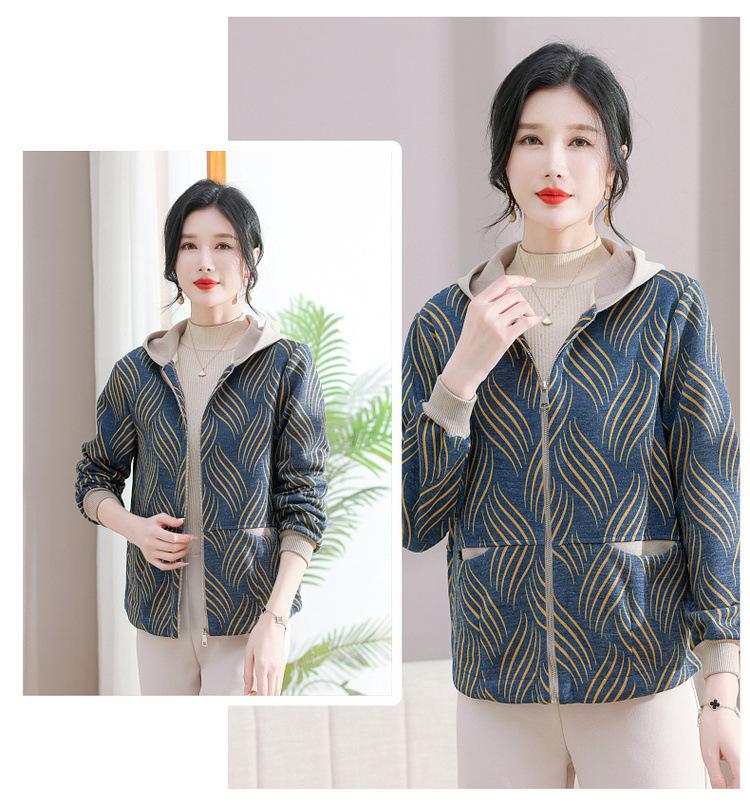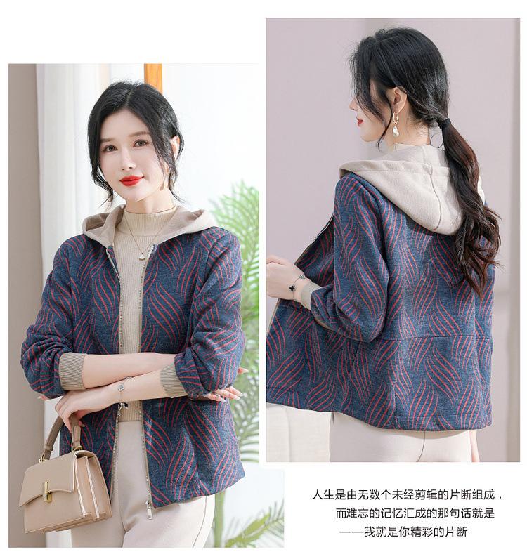 Abrigo fino de primavera y otoño para mamá, chaqueta con capucha para mujer de mediana edad de principios de otoño 2024, nuevo top corto de mediana edad