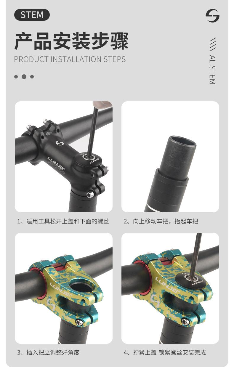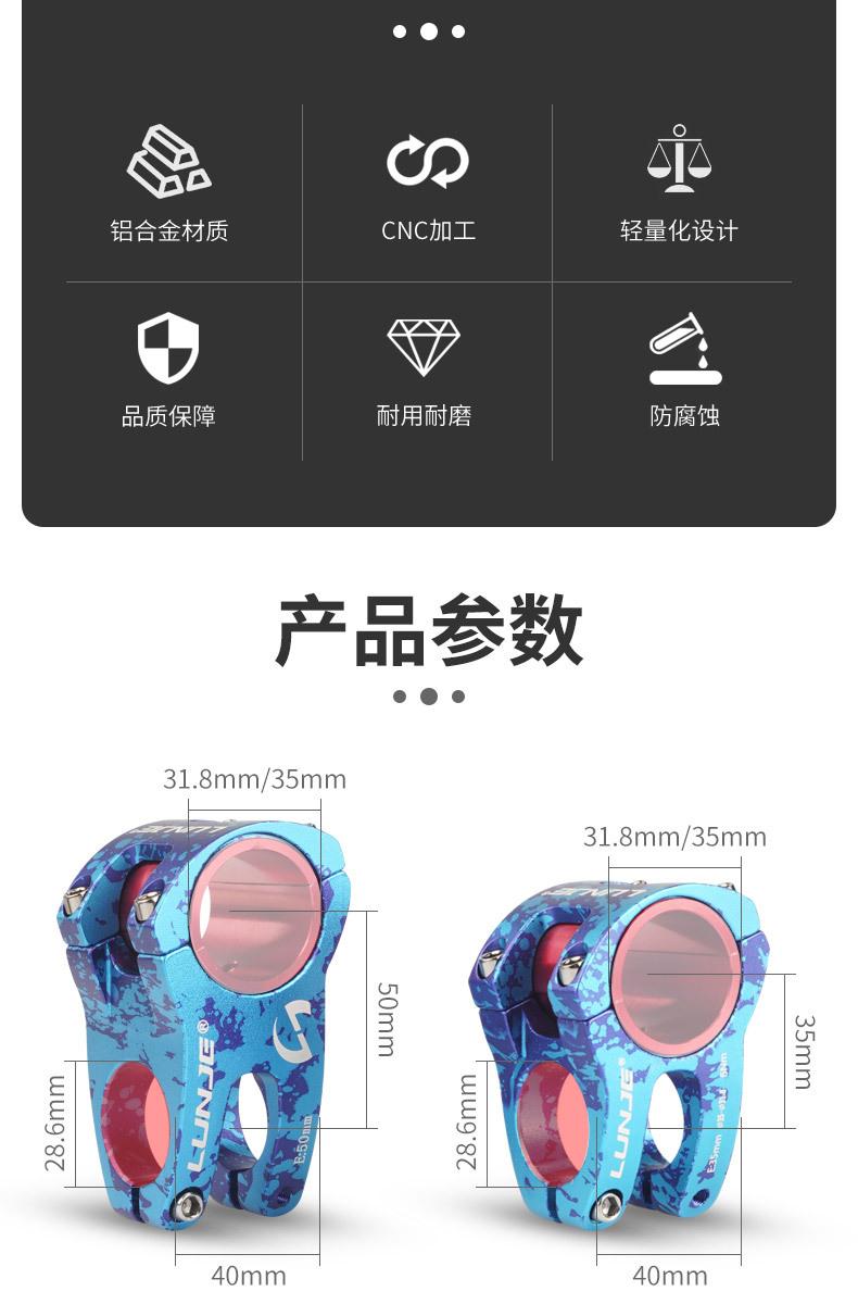 LUNJE - Manillar ultraligero de alta resistencia para bicicleta de montaña, manillar corto, elevador de descenso de 31,8 x 35/50 mm, accesorios para bicicleta