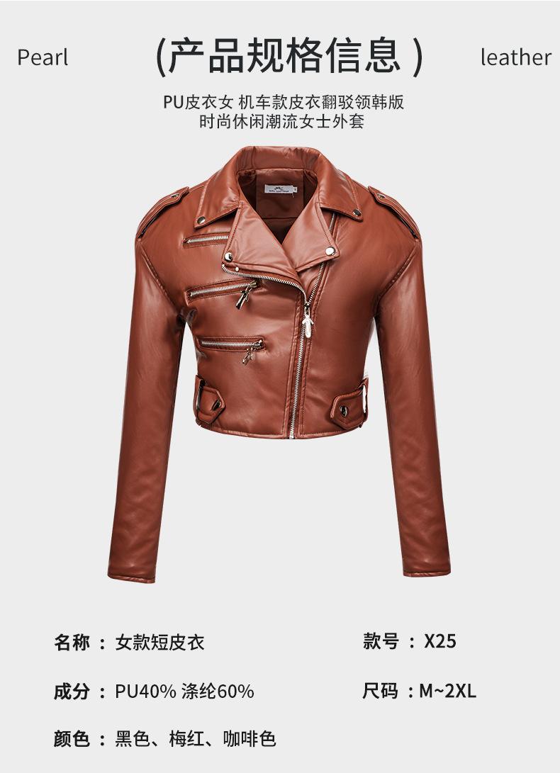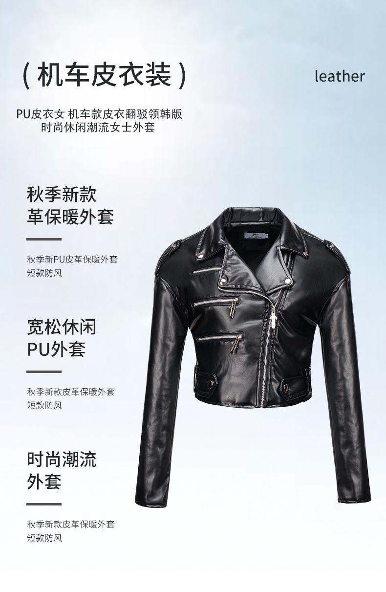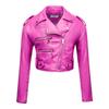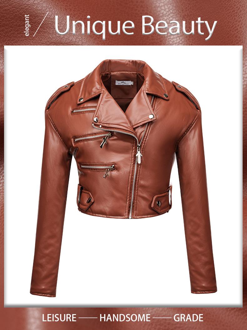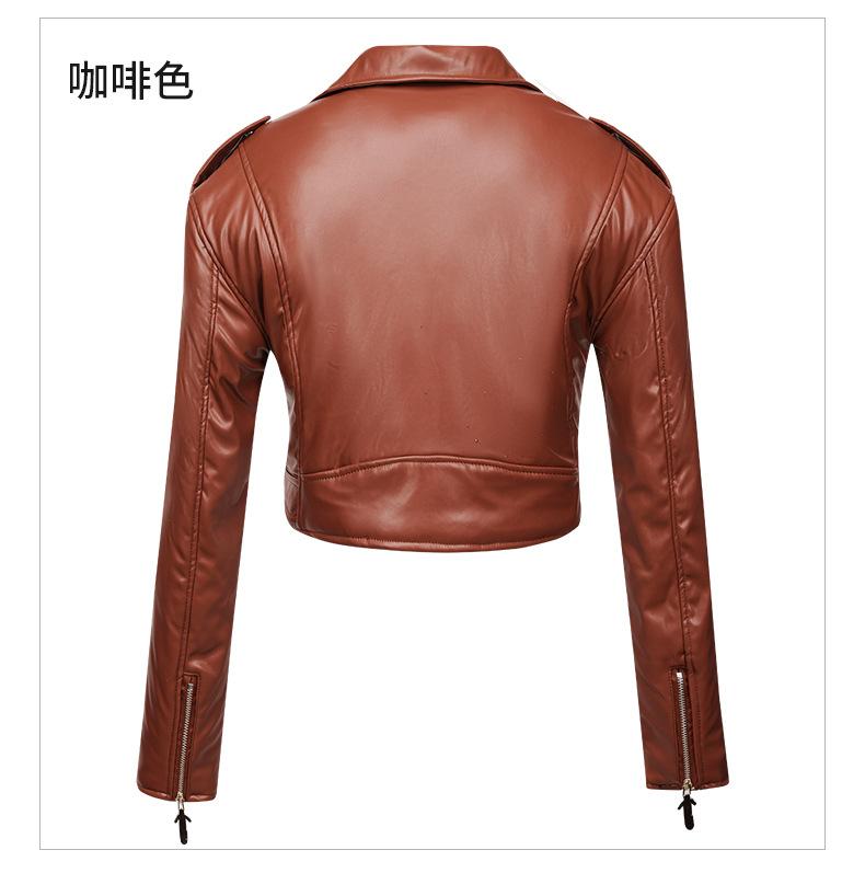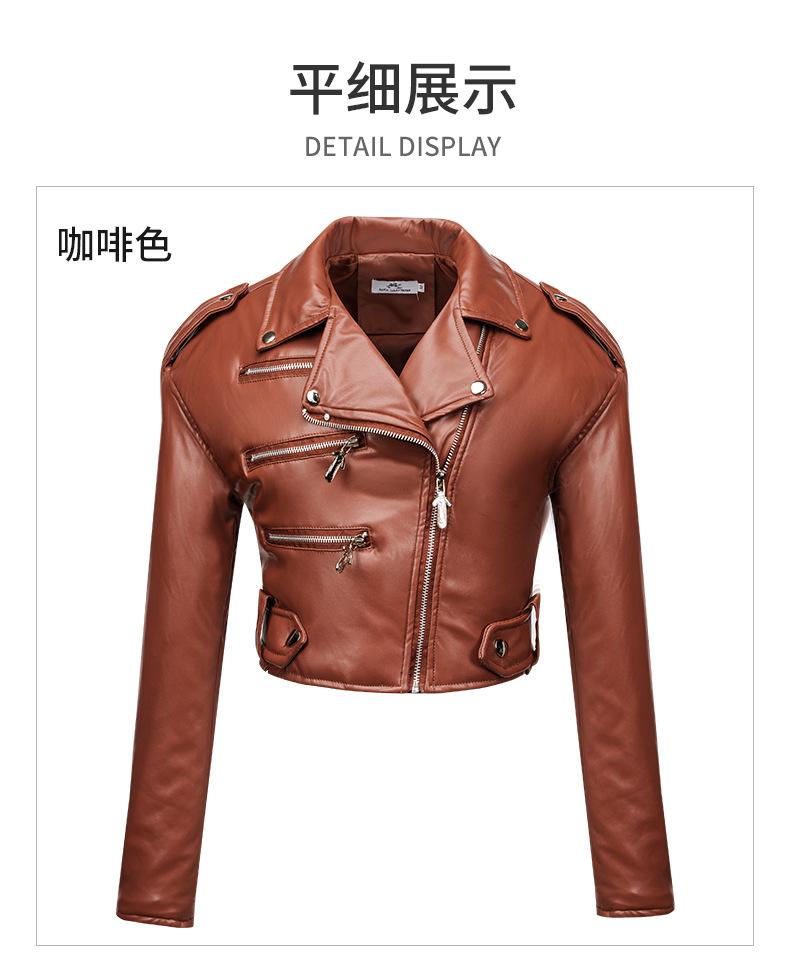 Chaqueta de Cuero para Mujer de Comercio Exterior Corte Slim Corta Algodón Cintura Alta Manga Larga Solapa Cremallera Diagonal Chaqueta de Cuero Pu Ropa de Motociclista para Mujer