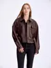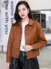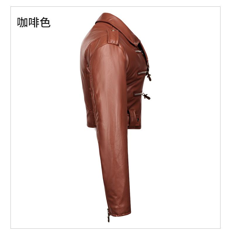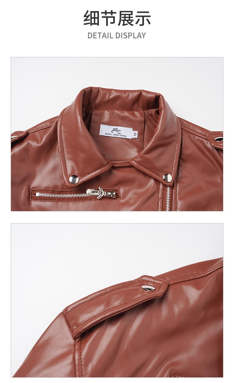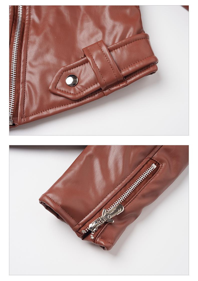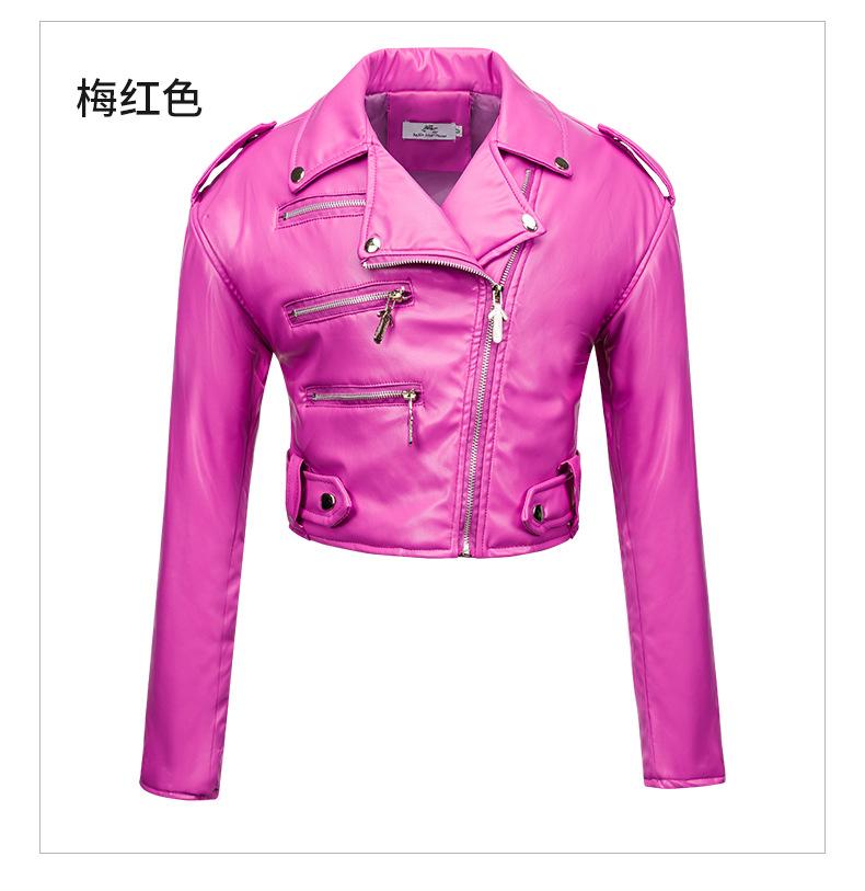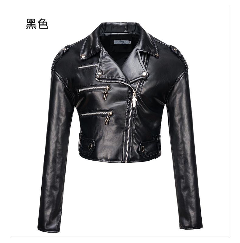 Chaqueta de Cuero para Mujer de Comercio Exterior Corte Slim Corta Algodón Cintura Alta Manga Larga Solapa Cremallera Diagonal Chaqueta de Cuero Pu Ropa de Motociclista para Mujer