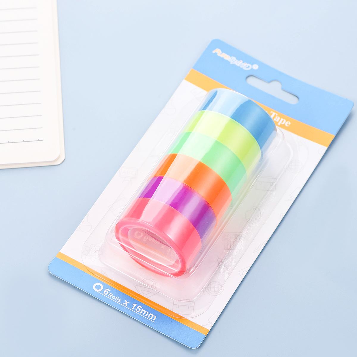 6 rollos de cinta transparente de arcoíris de color, papelería de corrección para estudiantes, cuenta a mano, volumen pequeño, cinta de oficina al por mayor, cuenta a mano