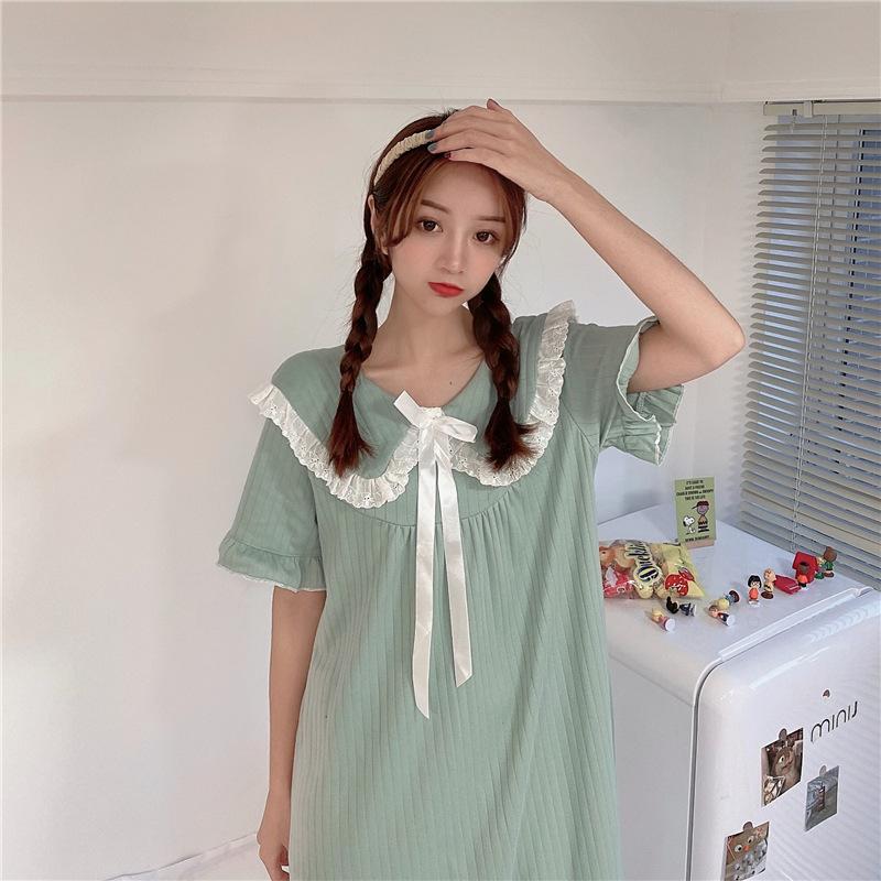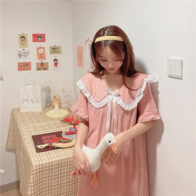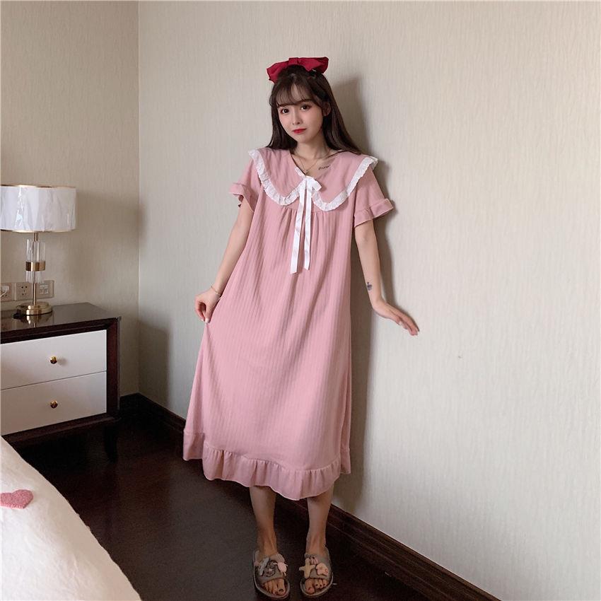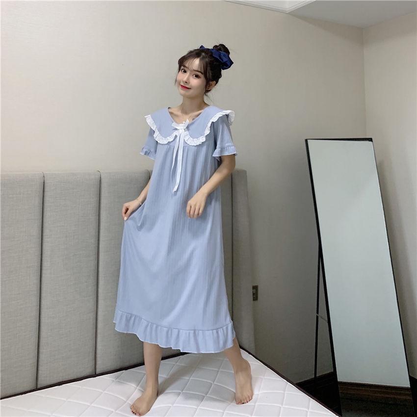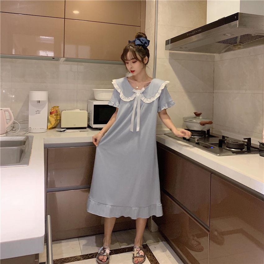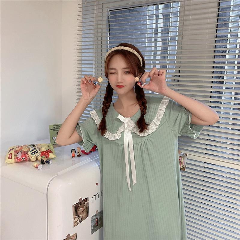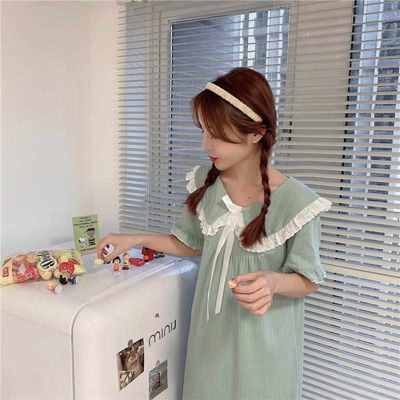 Camisón de verano para mujer, de manga corta, con cuello de muñeca, estilo coreano, estilo princesa, para el hogar