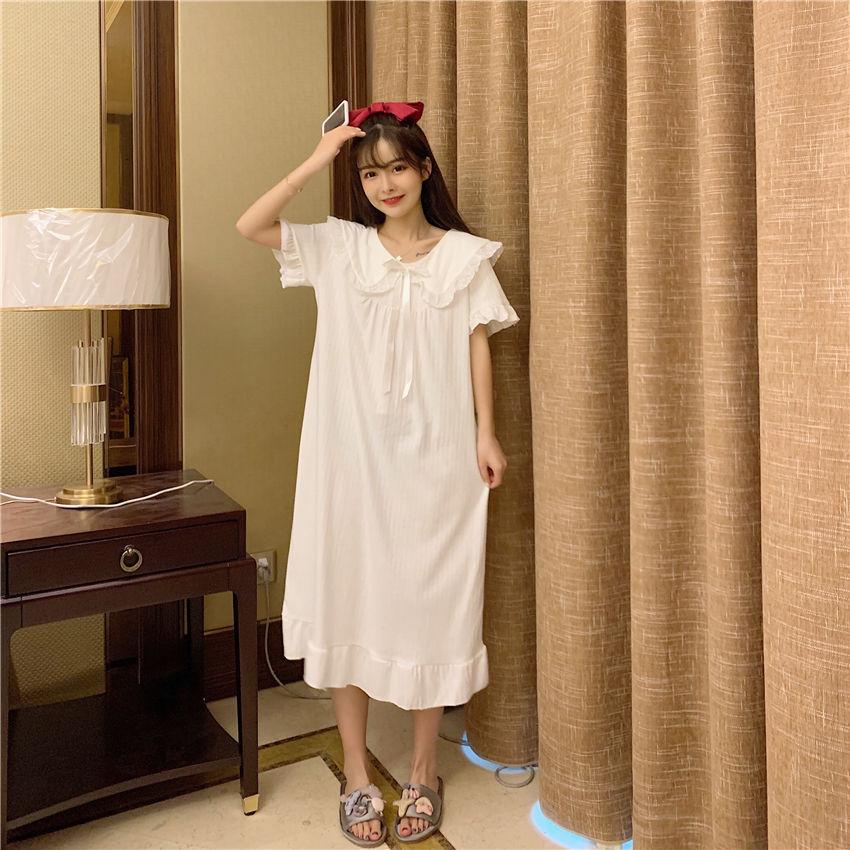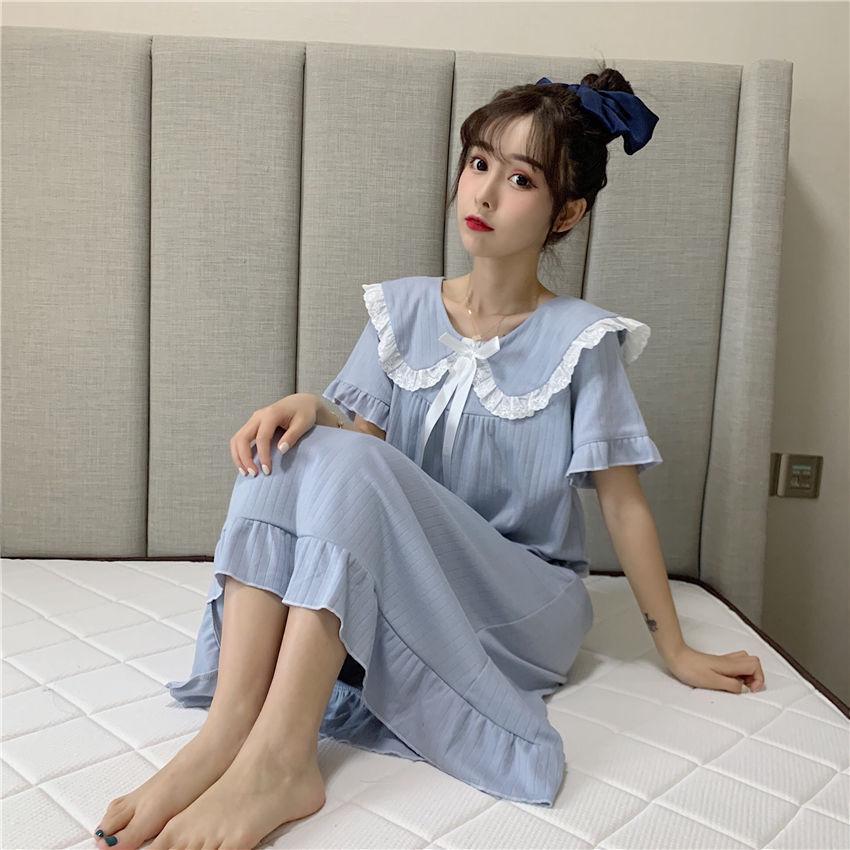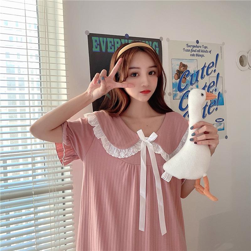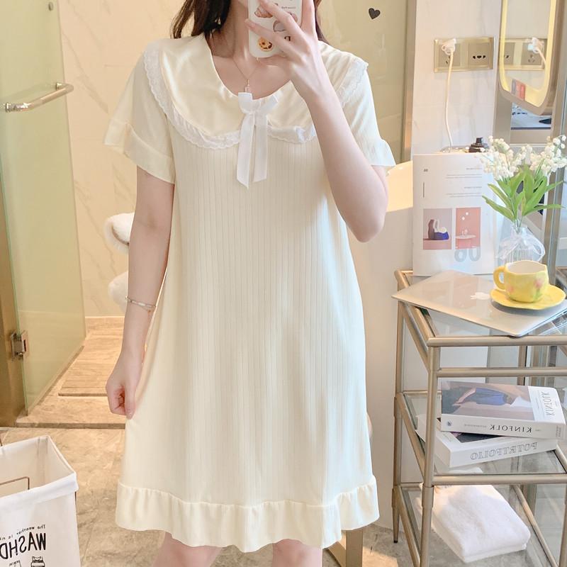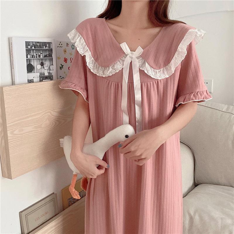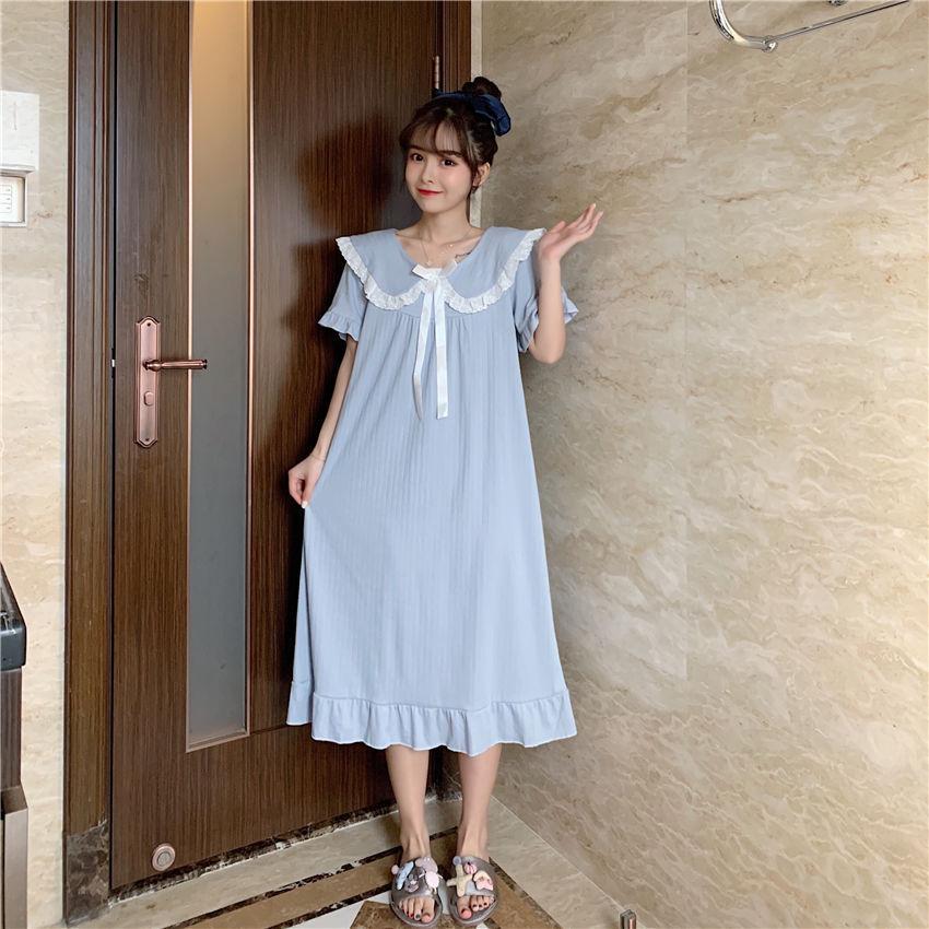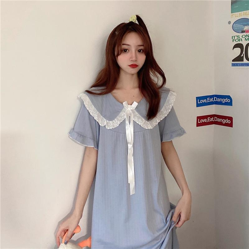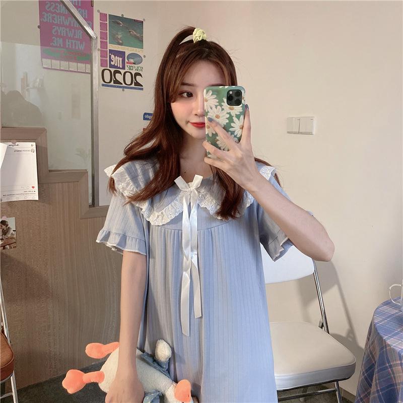 Camisón de verano para mujer, de manga corta, con cuello de muñeca, estilo coreano, estilo princesa, para el hogar