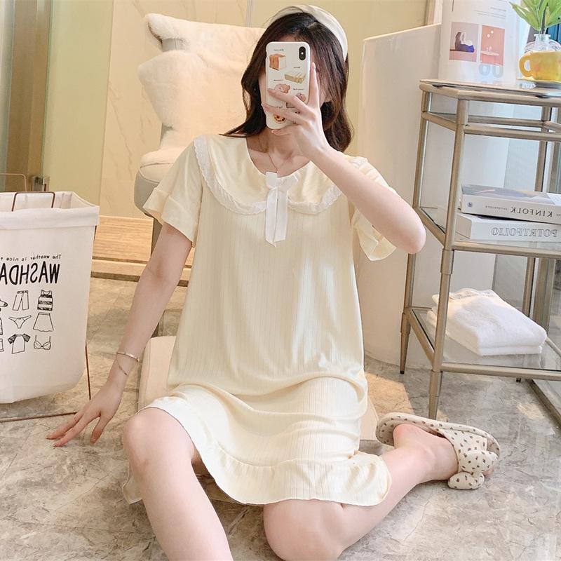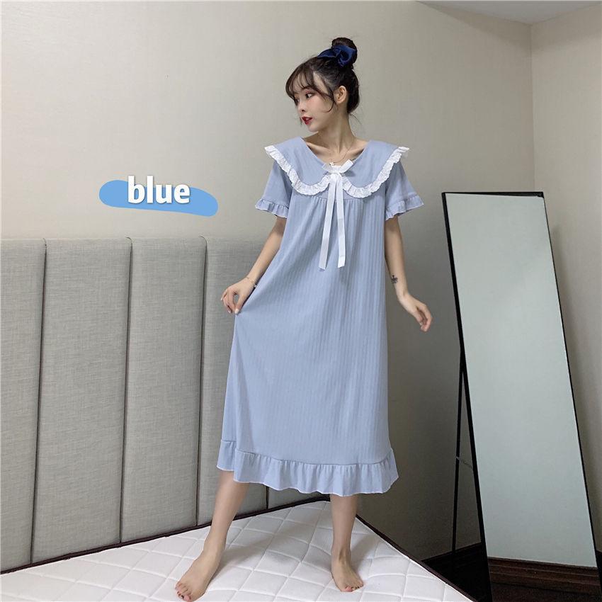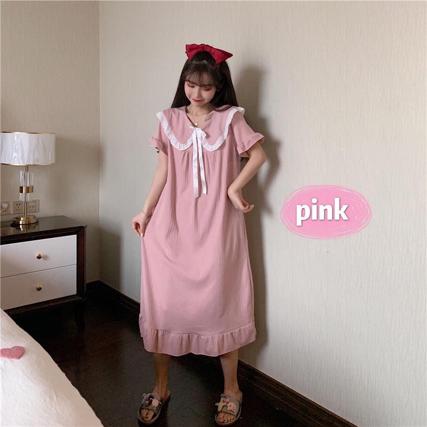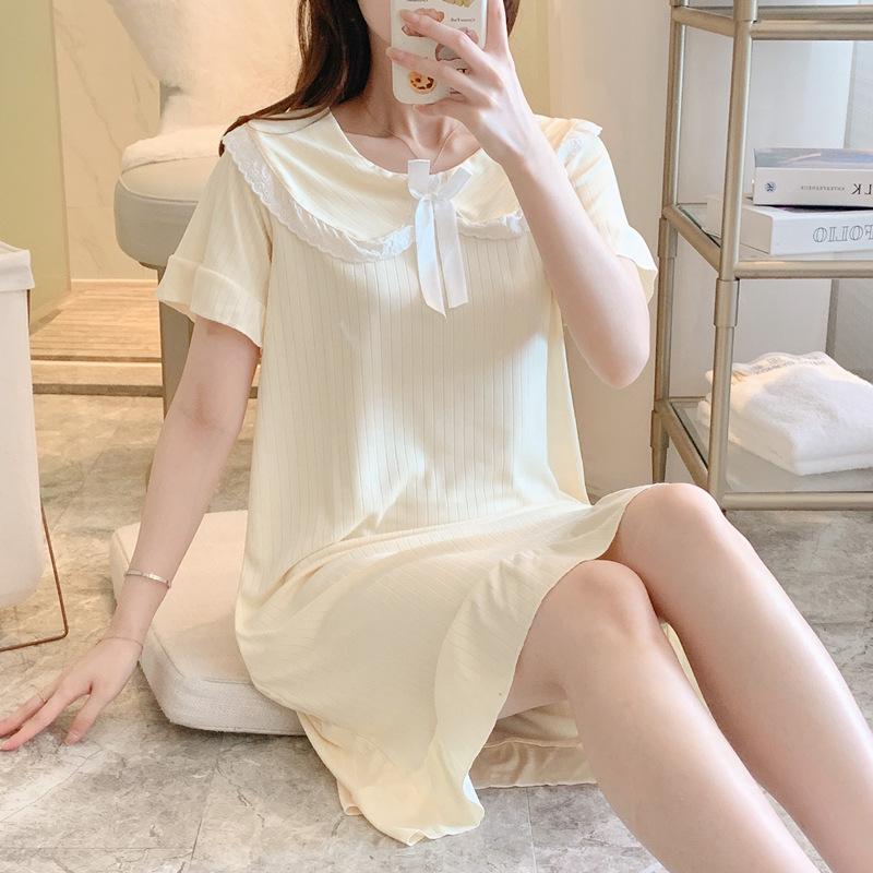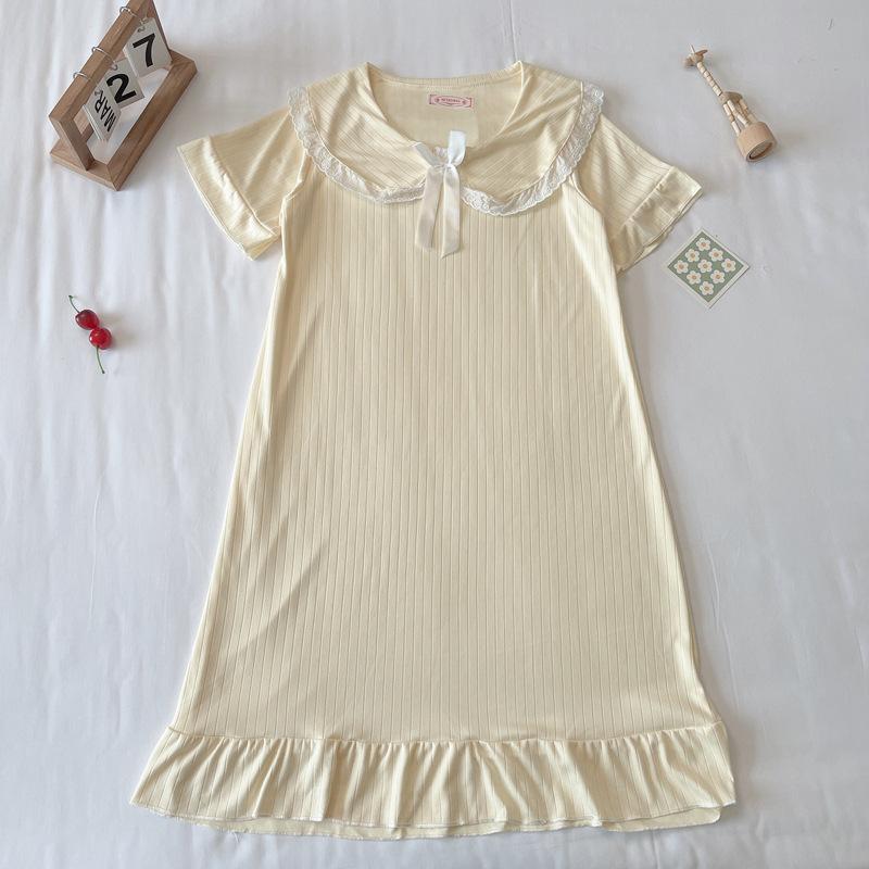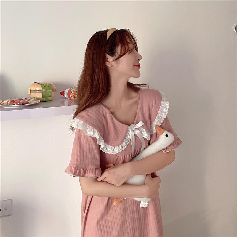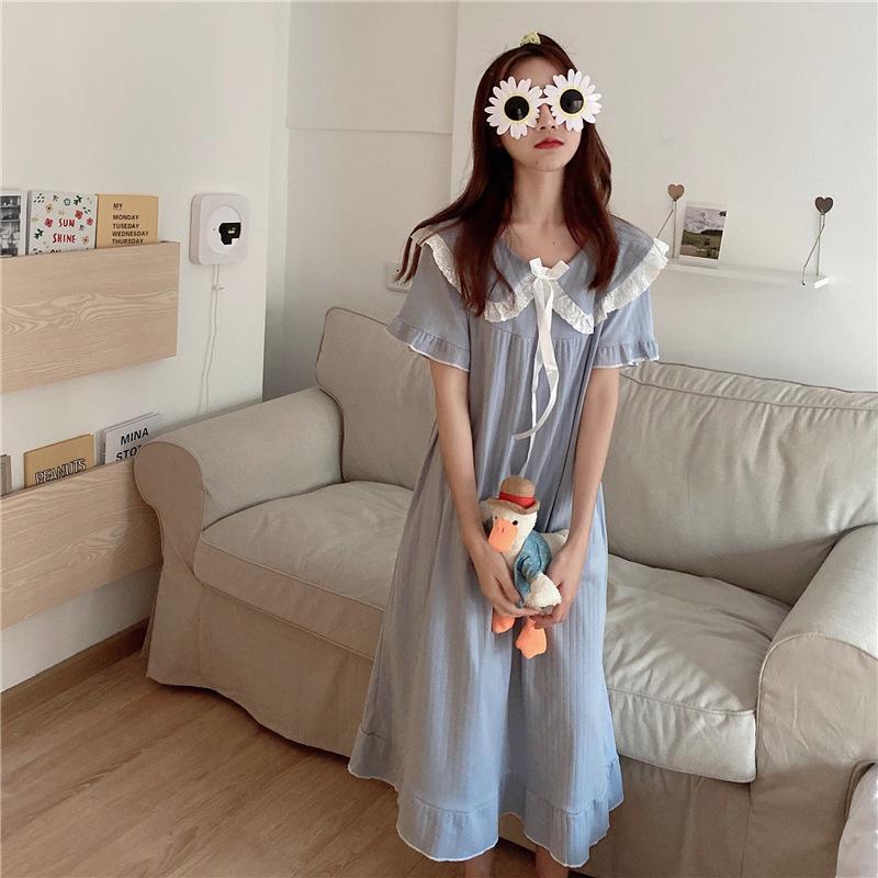 Camisón de verano para mujer, de manga corta, con cuello de muñeca, estilo coreano, estilo princesa, para el hogar