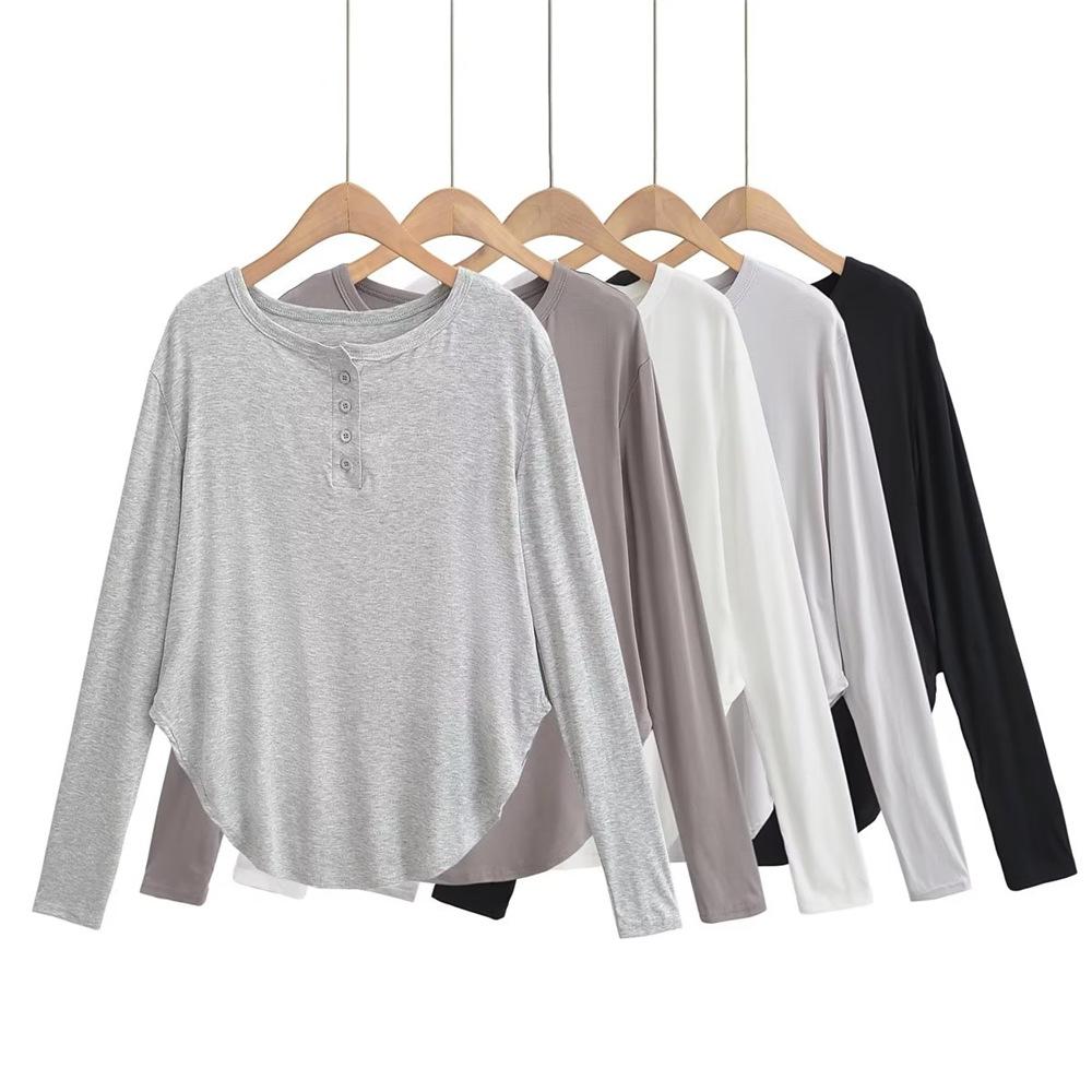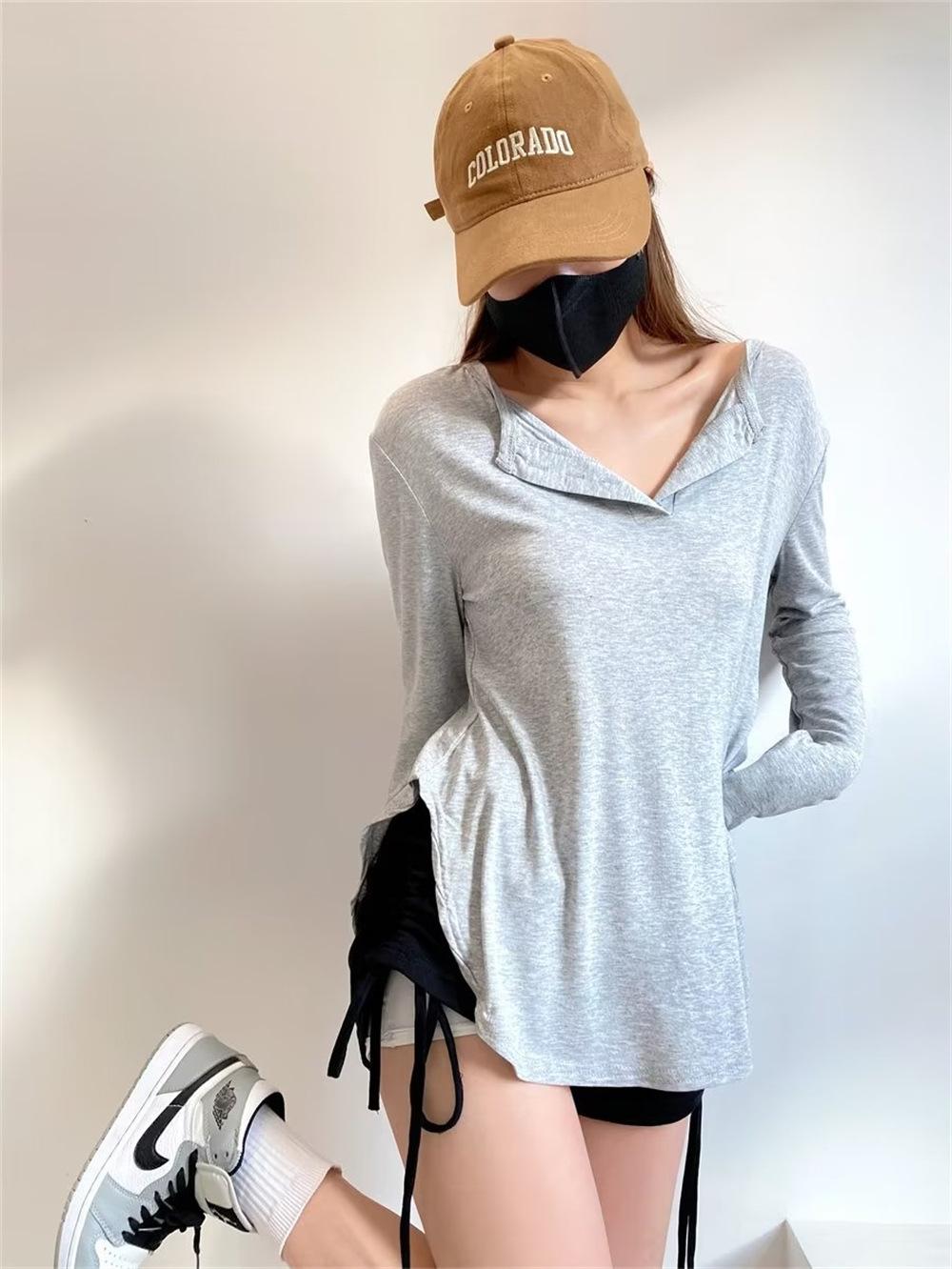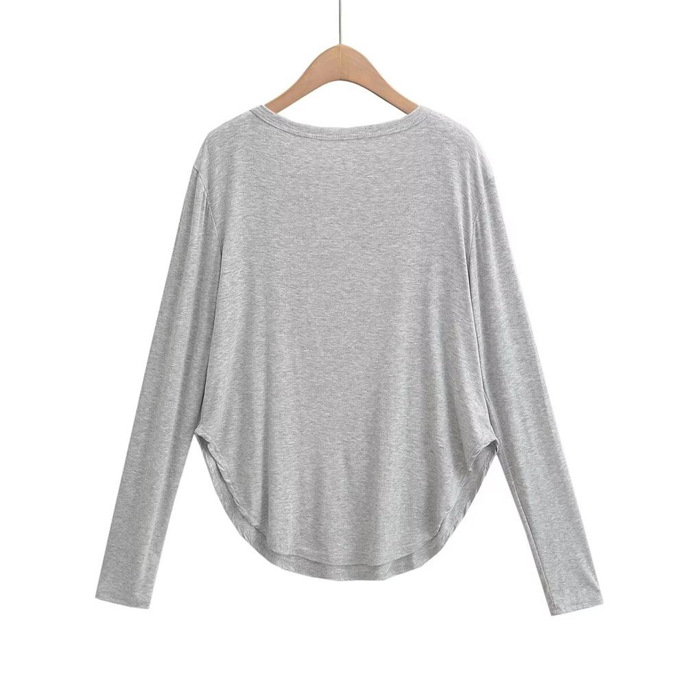 YPFF, ropa de mujer de moda, estilo holgado, dobladillo curvo, camiseta de manga larga, otoño e invierno, nueva camisa de protección solar, top largo