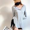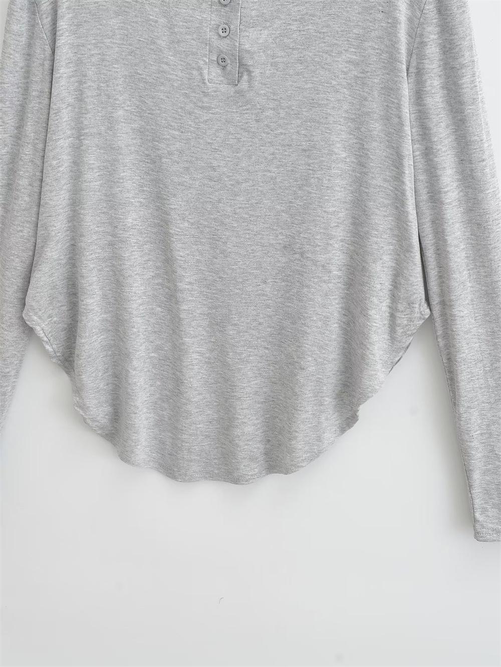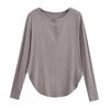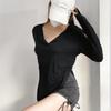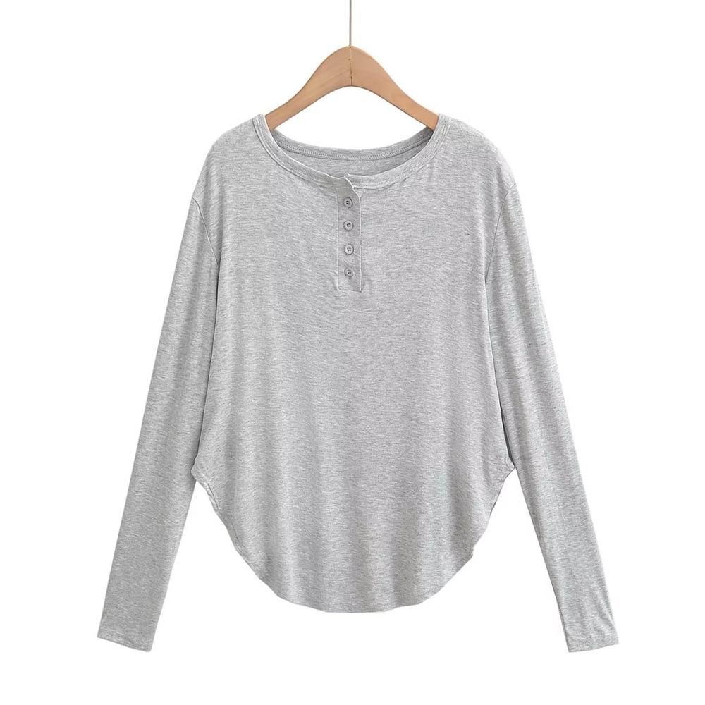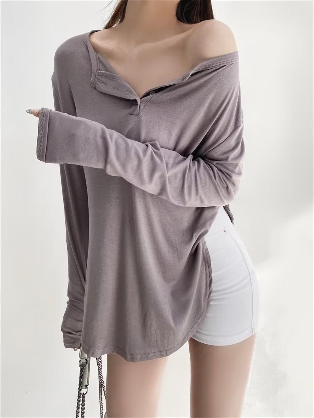 YPFF, ropa de mujer de moda, estilo holgado, dobladillo curvo, camiseta de manga larga, otoño e invierno, nueva camisa de protección solar, top largo