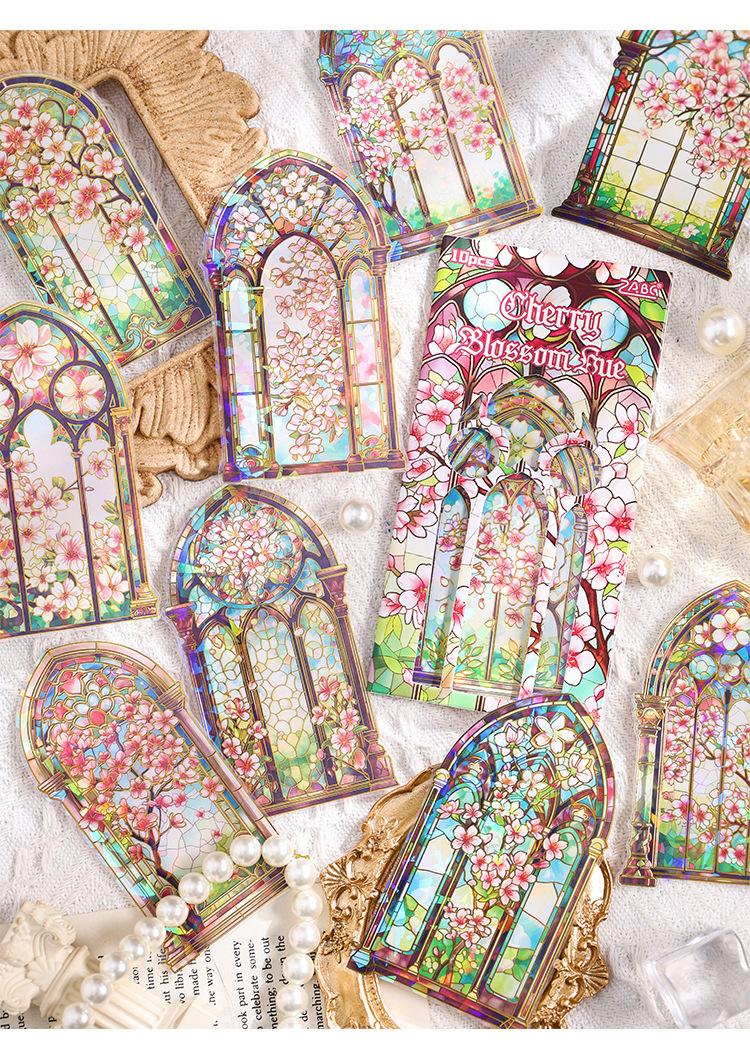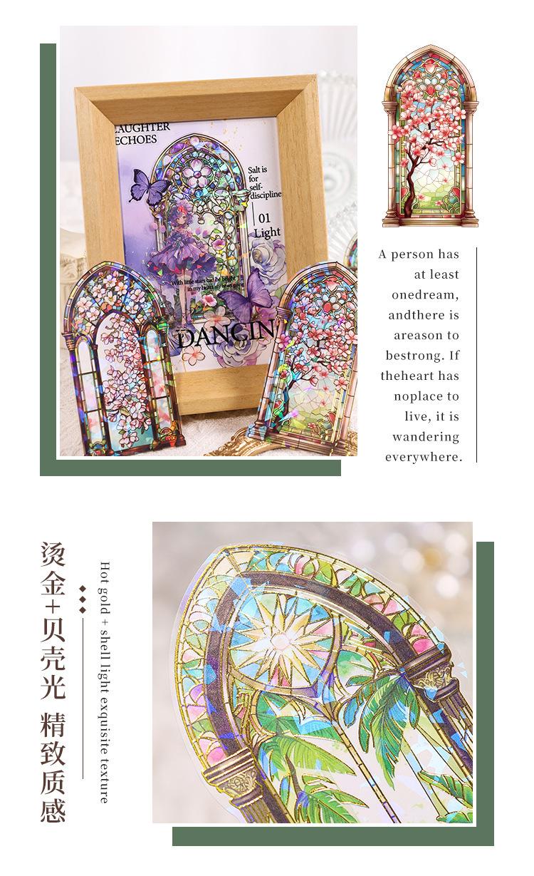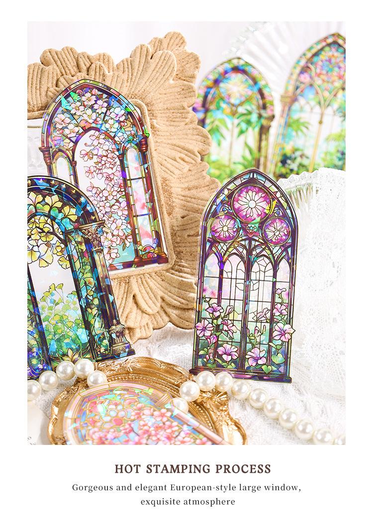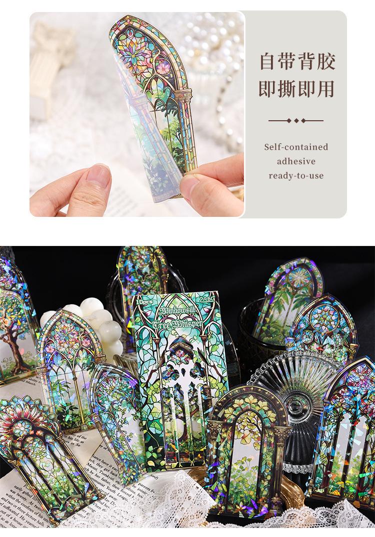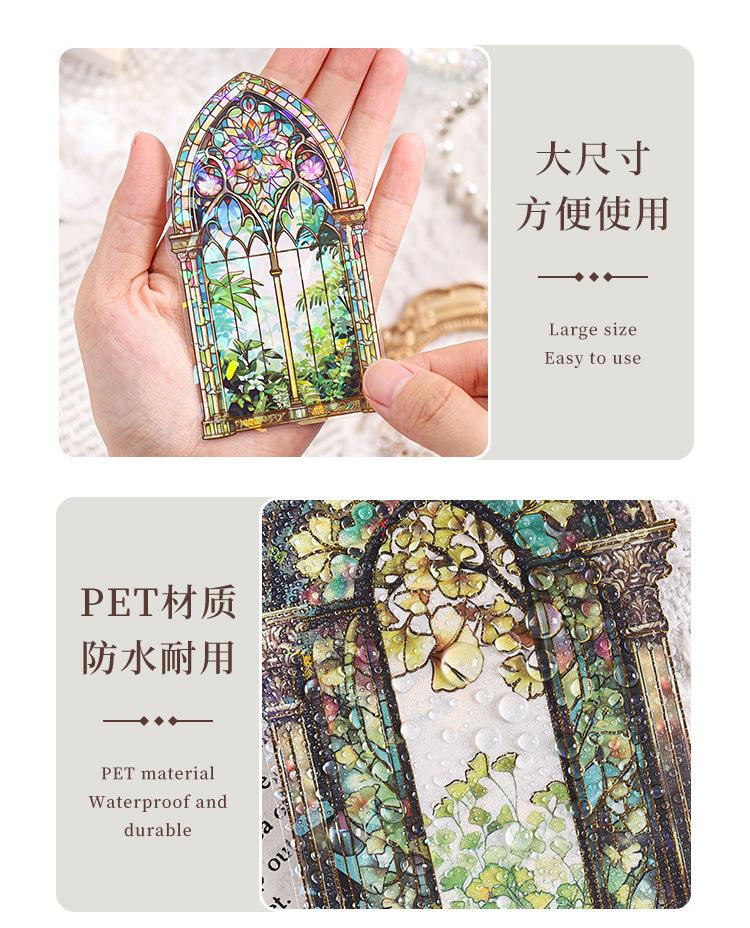 Pegatina transfronteriza ZABC para ventana, serie colorida, láser, retro, cuenta manual, pegatina de material PET impermeable
