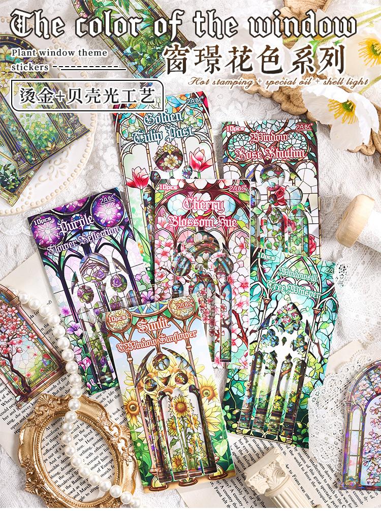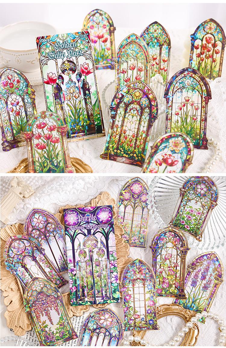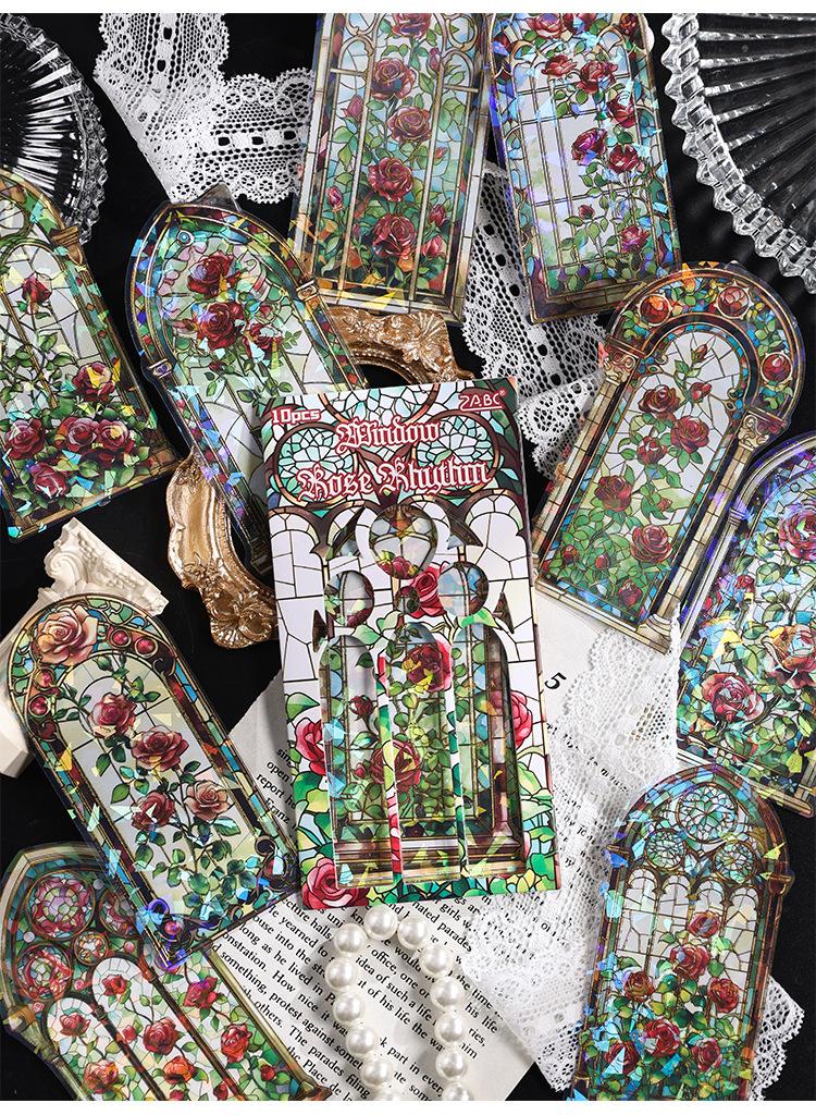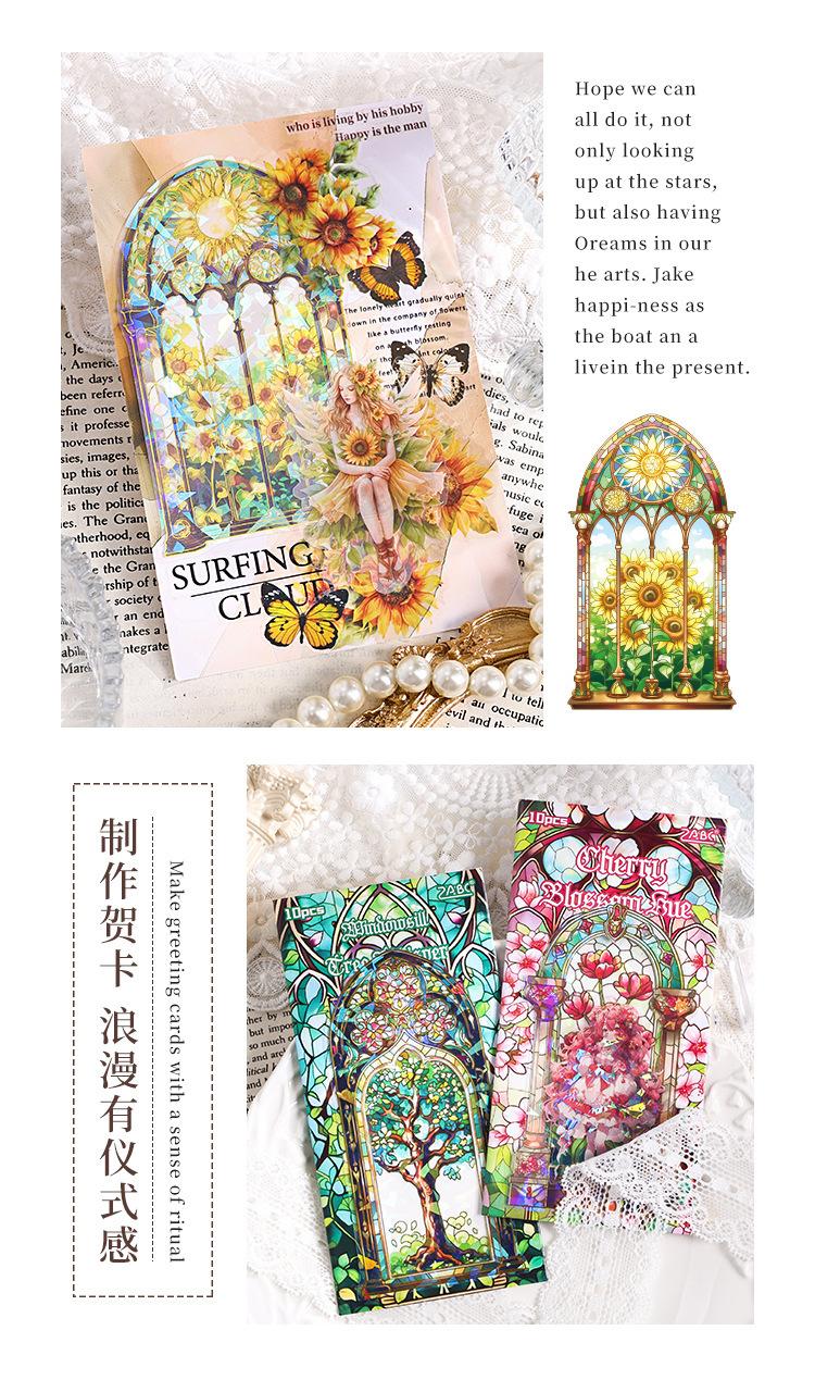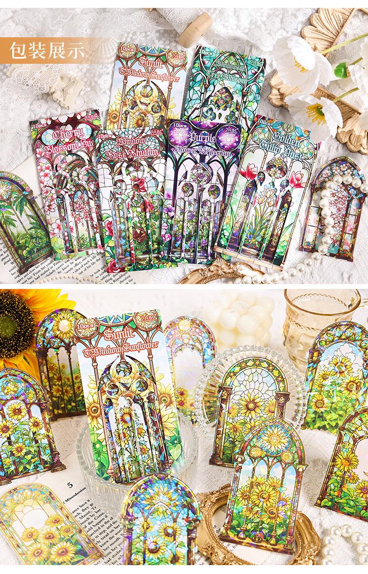 Pegatina transfronteriza ZABC para ventana, serie colorida, láser, retro, cuenta manual, pegatina de material PET impermeable