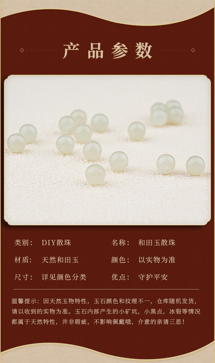 Ice type hetian jade mutton-fat white 6mm/2 pieces, Ice type hetian jade mutton-fat white 7mm/2 pieces, Ice ty...