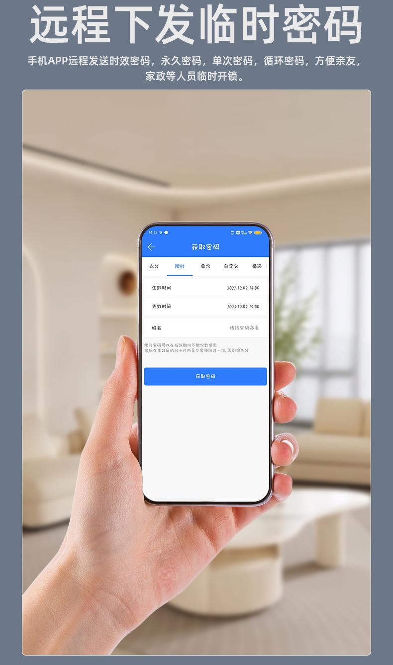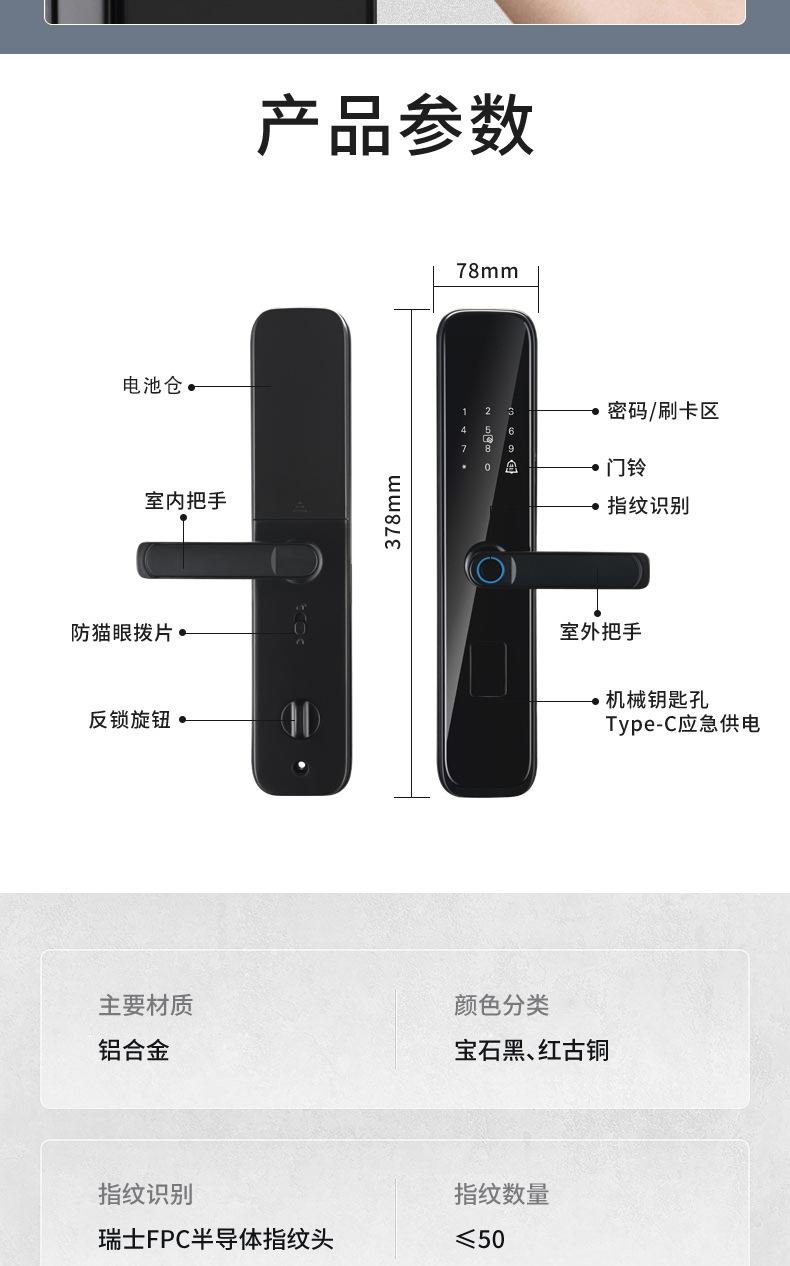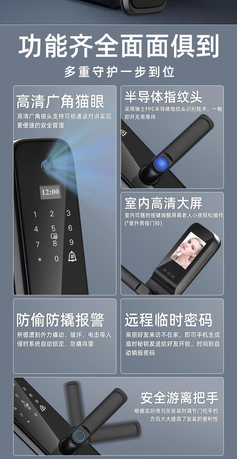 Fingerprint, Password, With key, visible cat's eye, face recognition, Remote Unlock