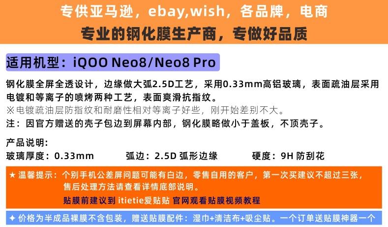 Pegatinas Love compatibles con la película templada iQOONeo8, película antihuellas de pantalla completa sin agujeros Love Cool Neo8Pro