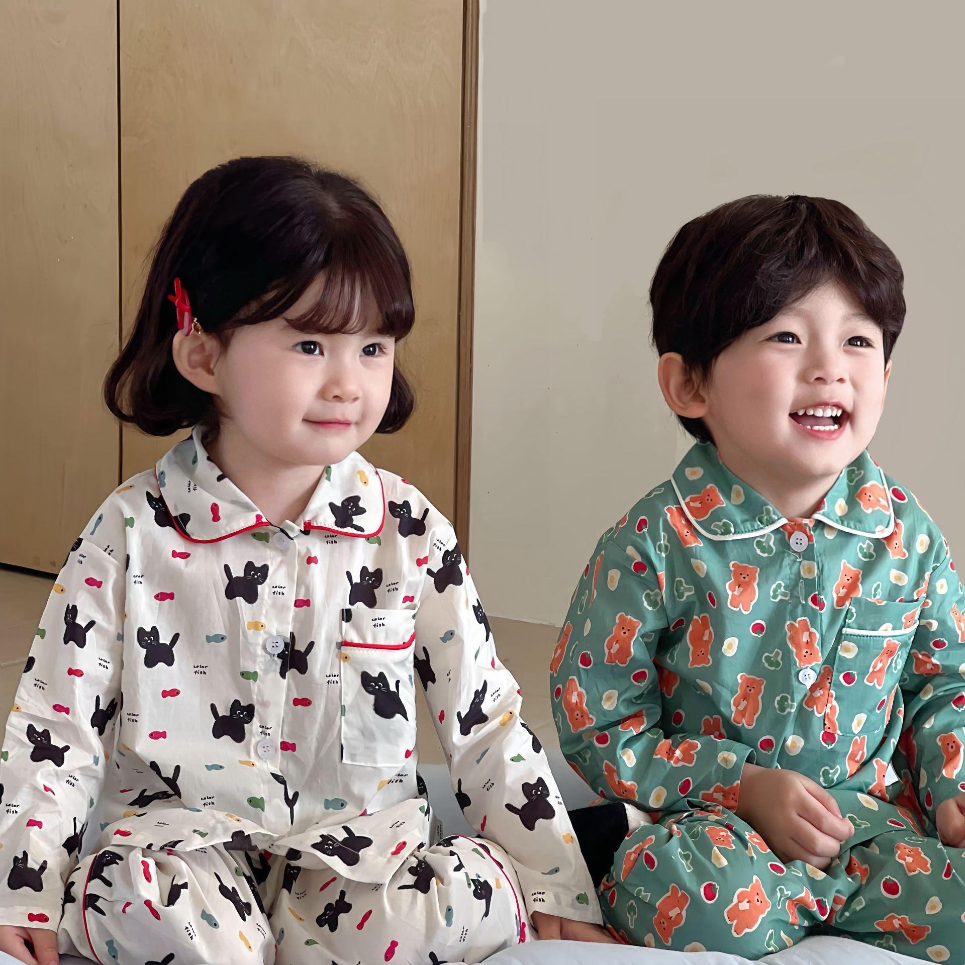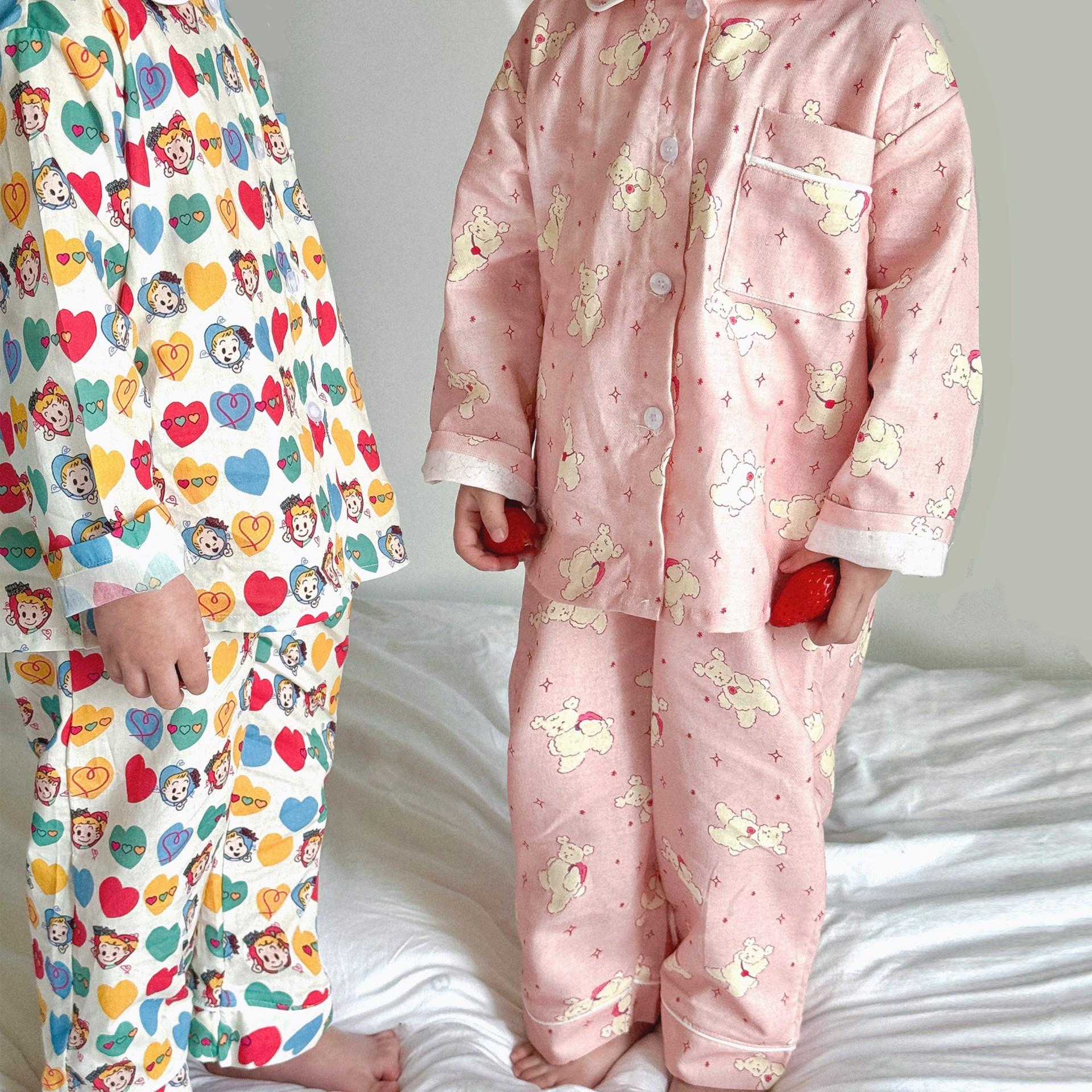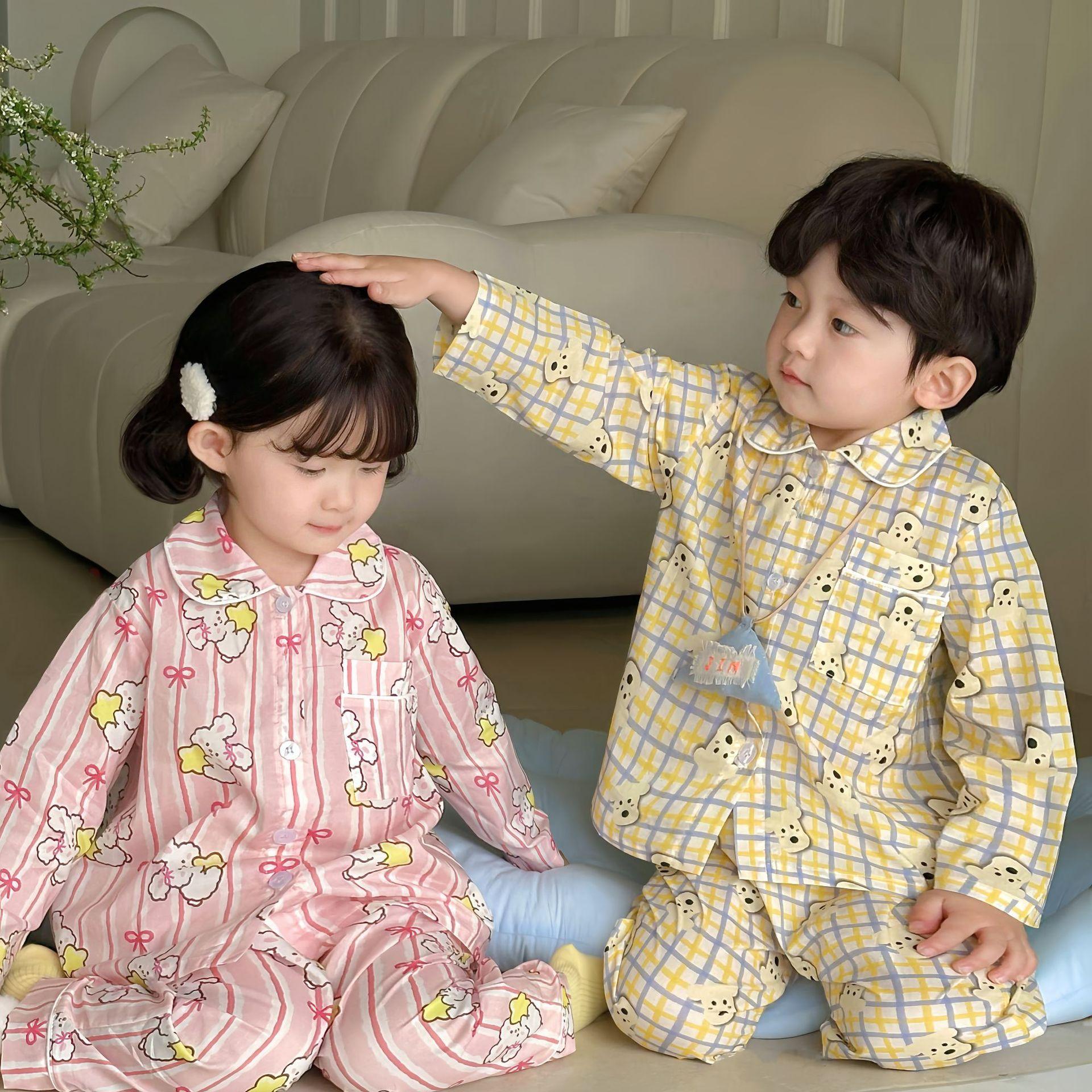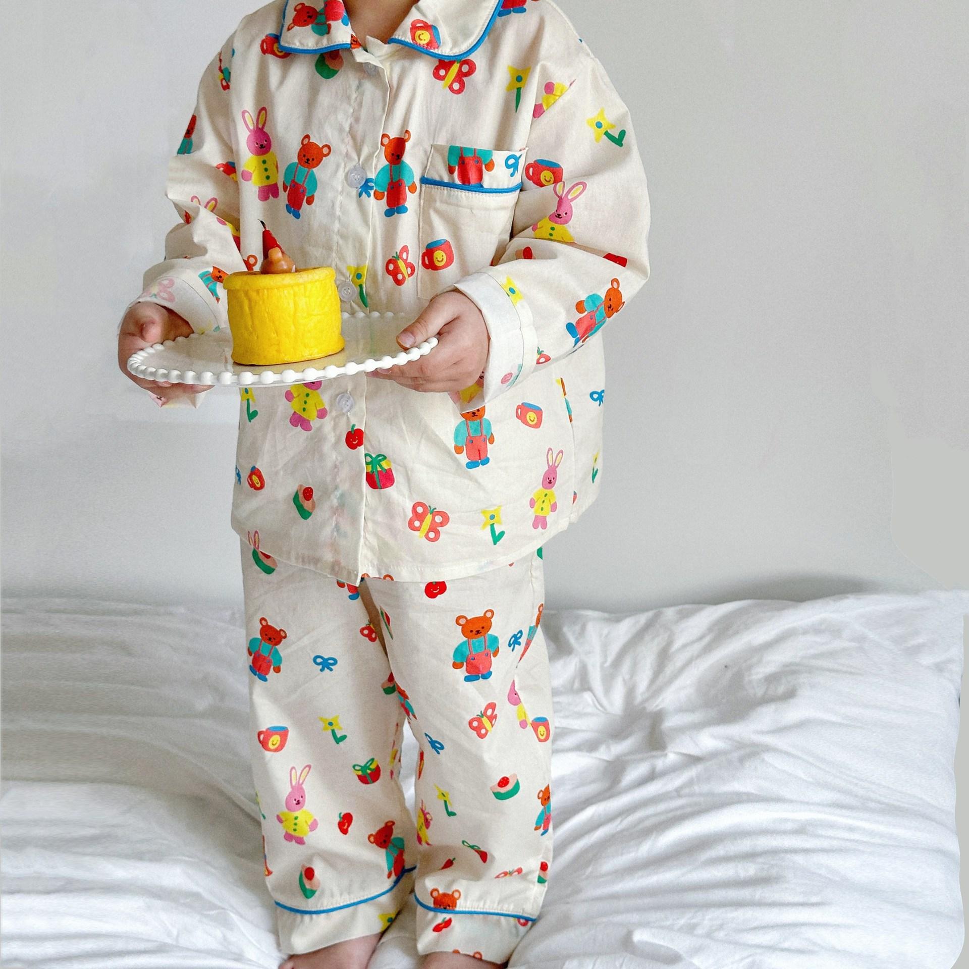 Ropa para el Hogar para Niños 2025 Primavera y Verano Algodón para Bebés y Niños Dibujos Animados Ropa para el Hogar Algodón Puro para Niños Pantalones de Manga Larga Pijamas
