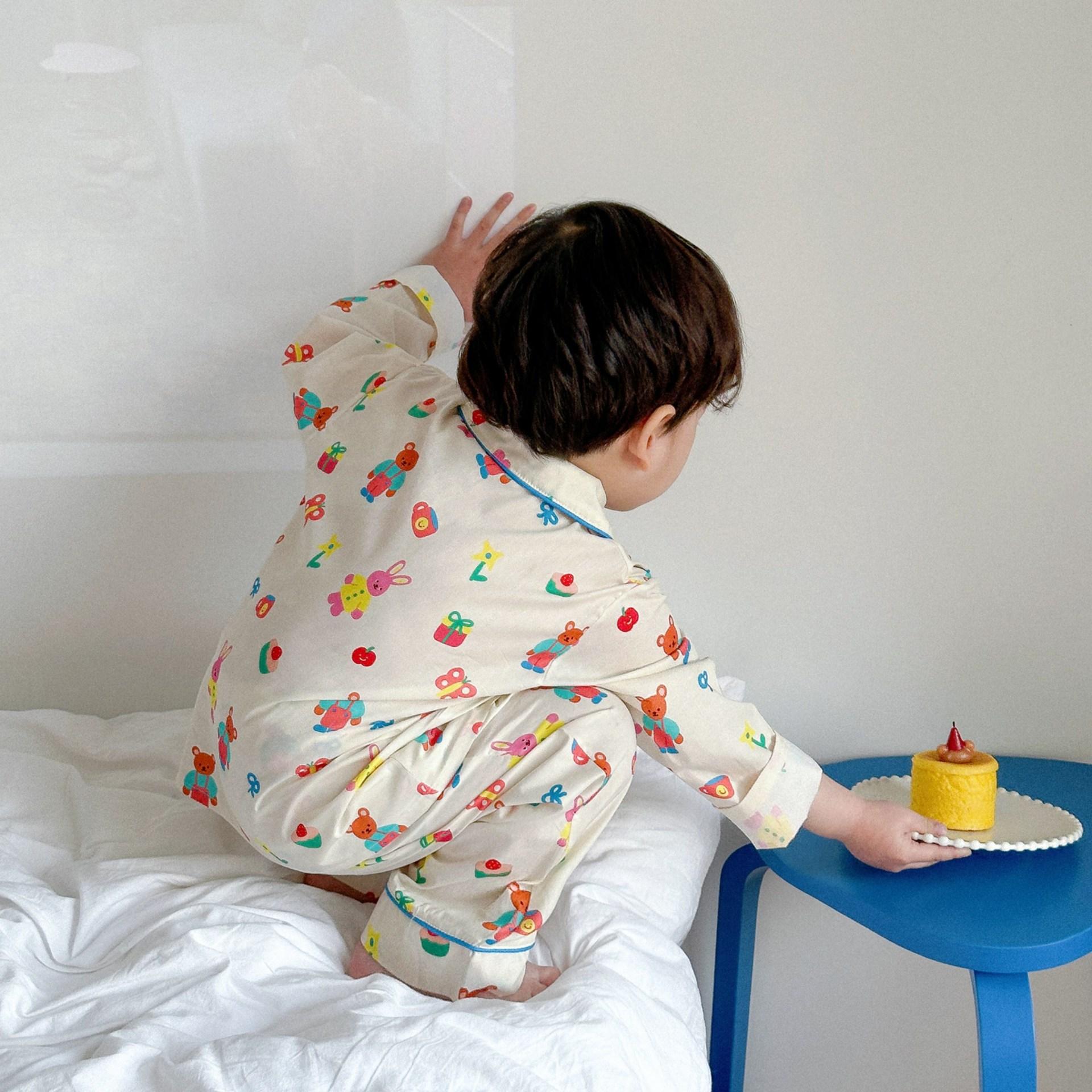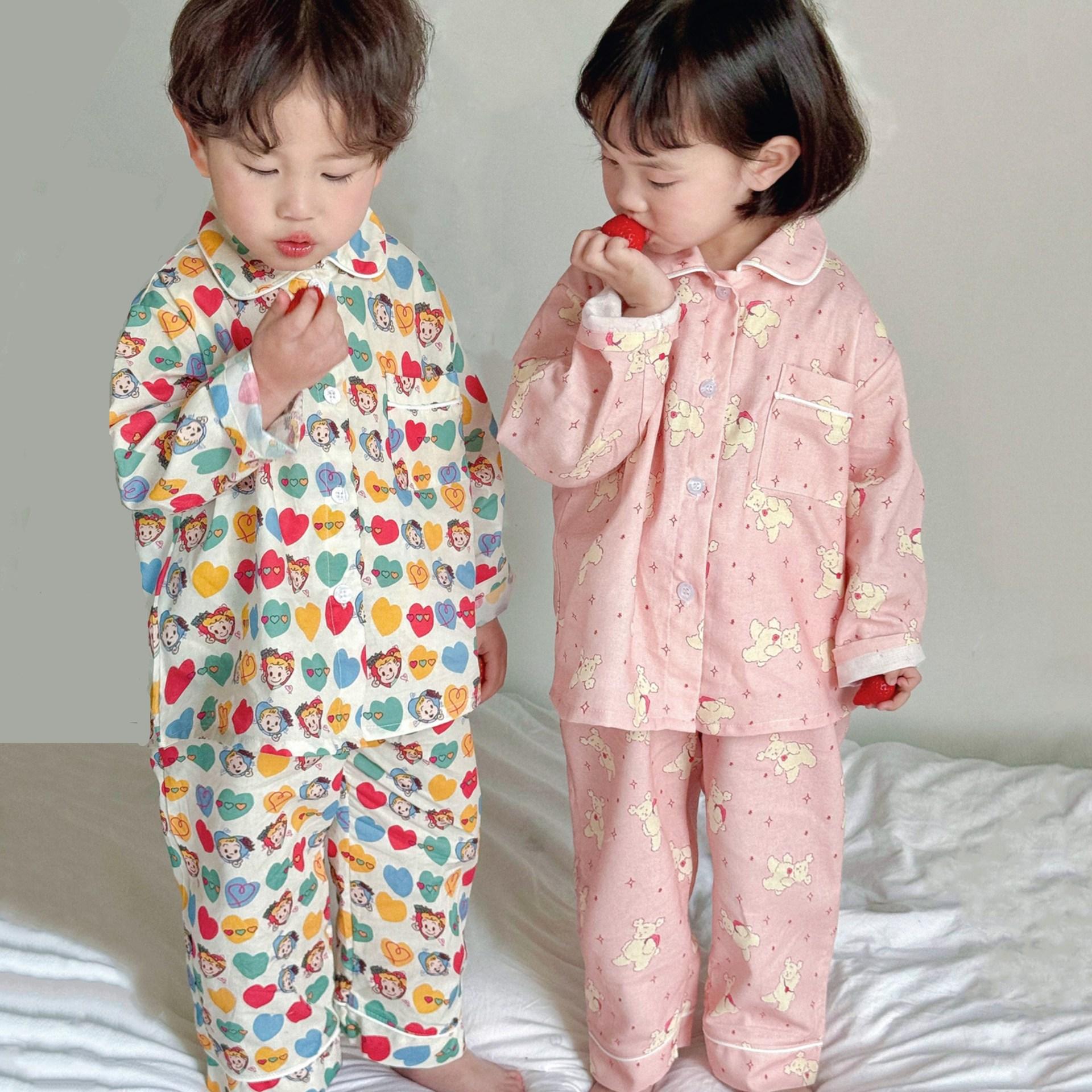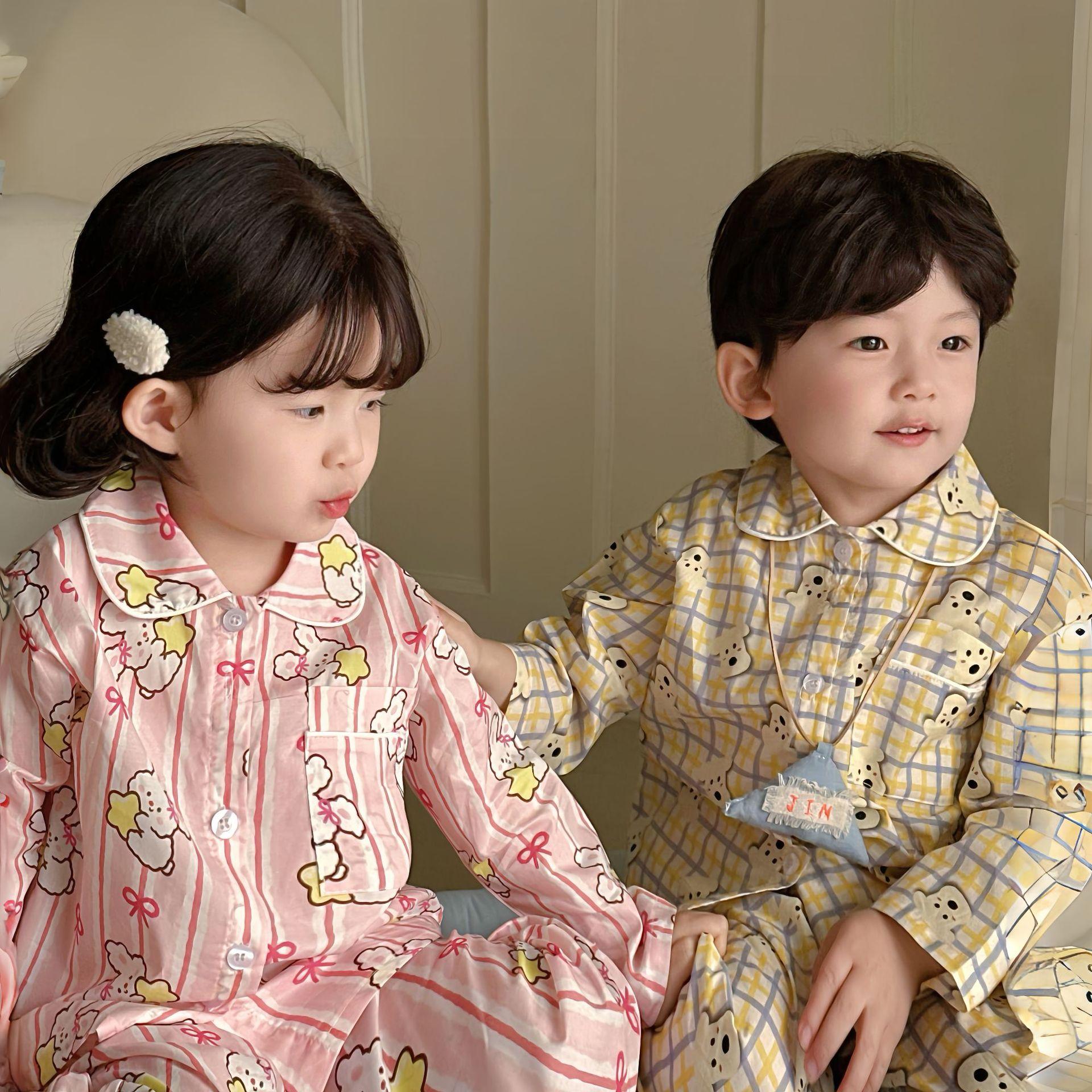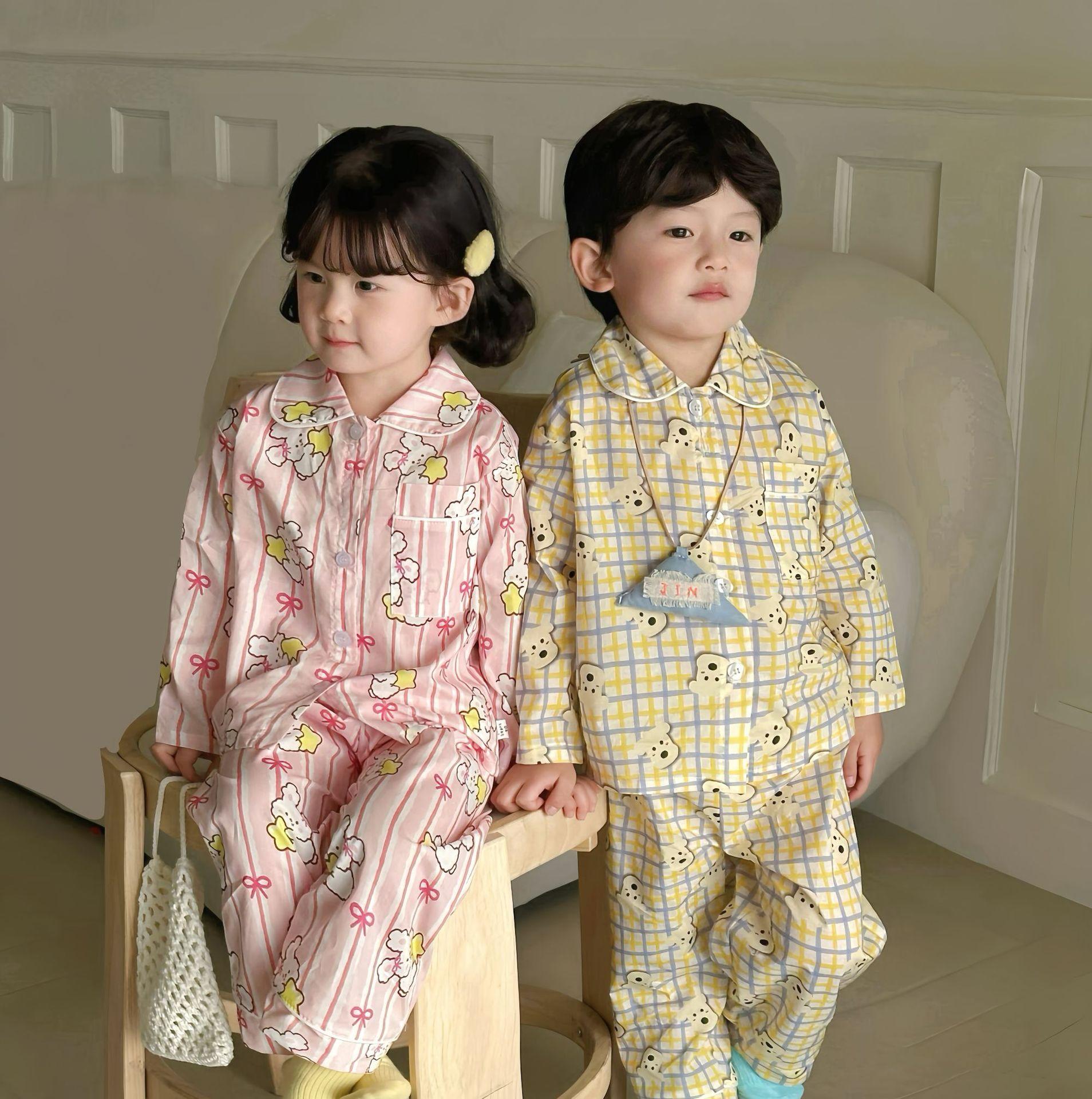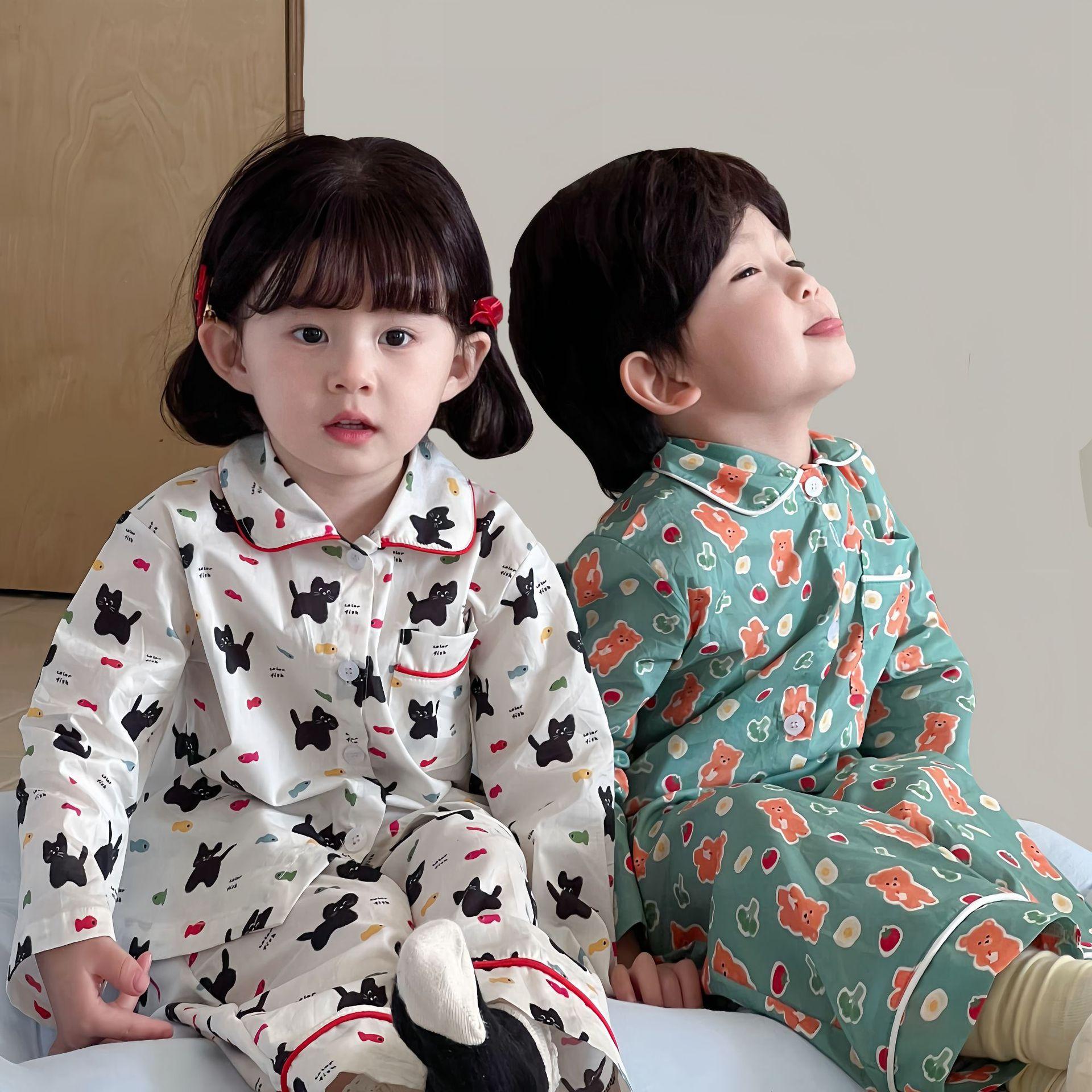 Ropa para el Hogar para Niños 2025 Primavera y Verano Algodón para Bebés y Niños Dibujos Animados Ropa para el Hogar Algodón Puro para Niños Pantalones de Manga Larga Pijamas
