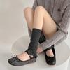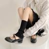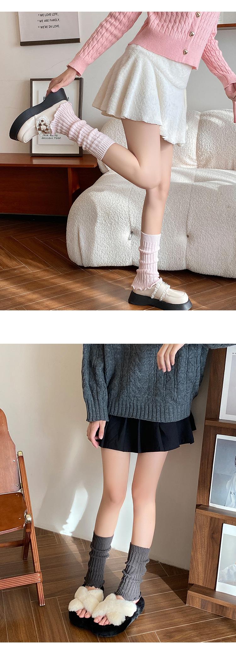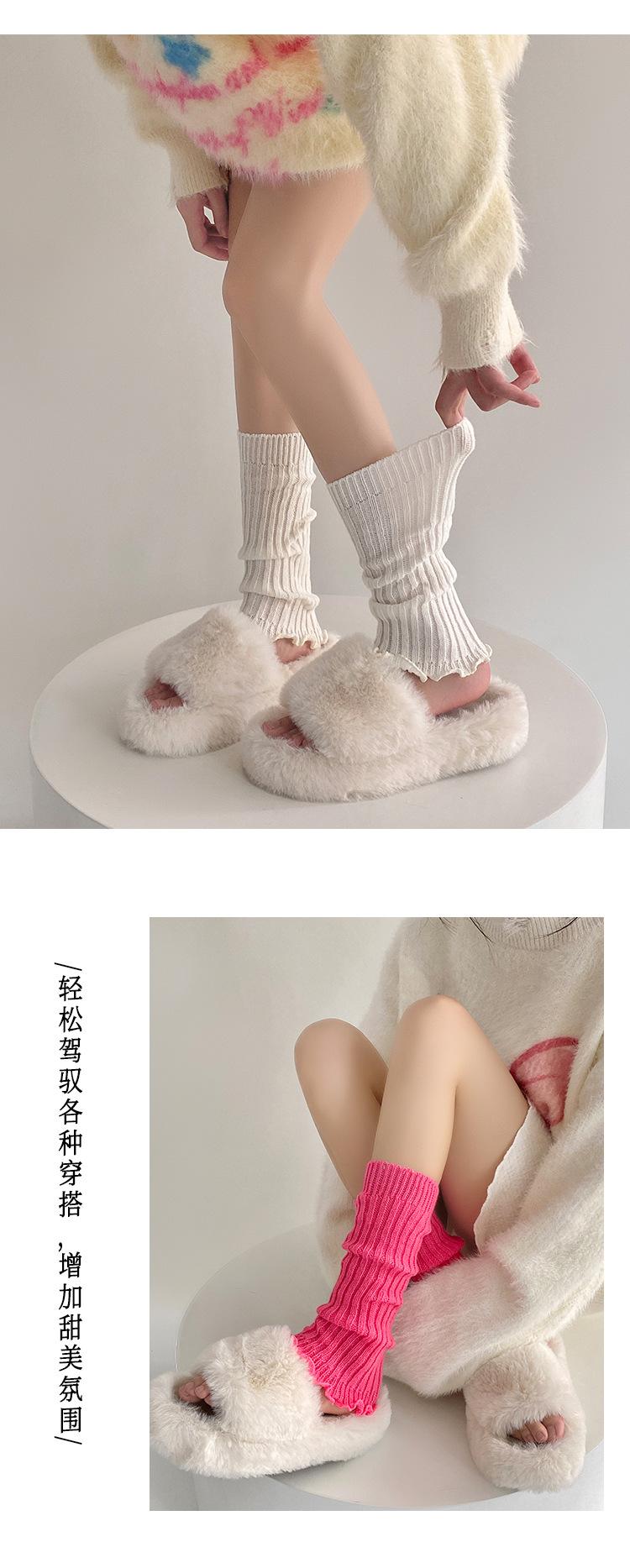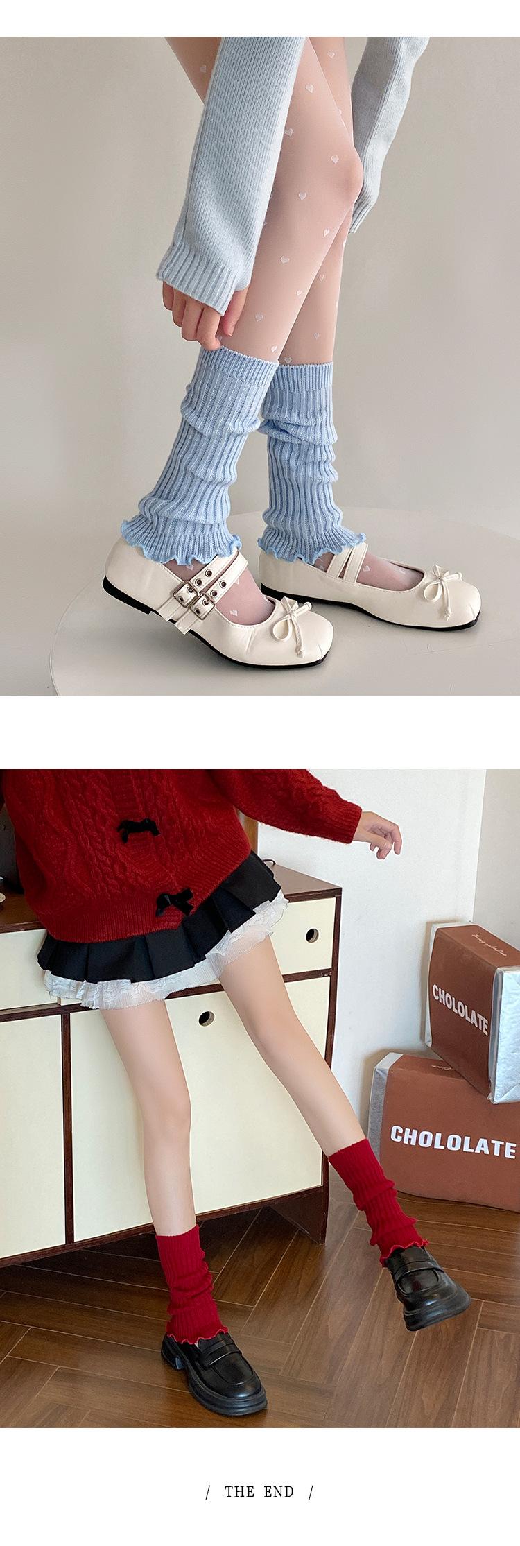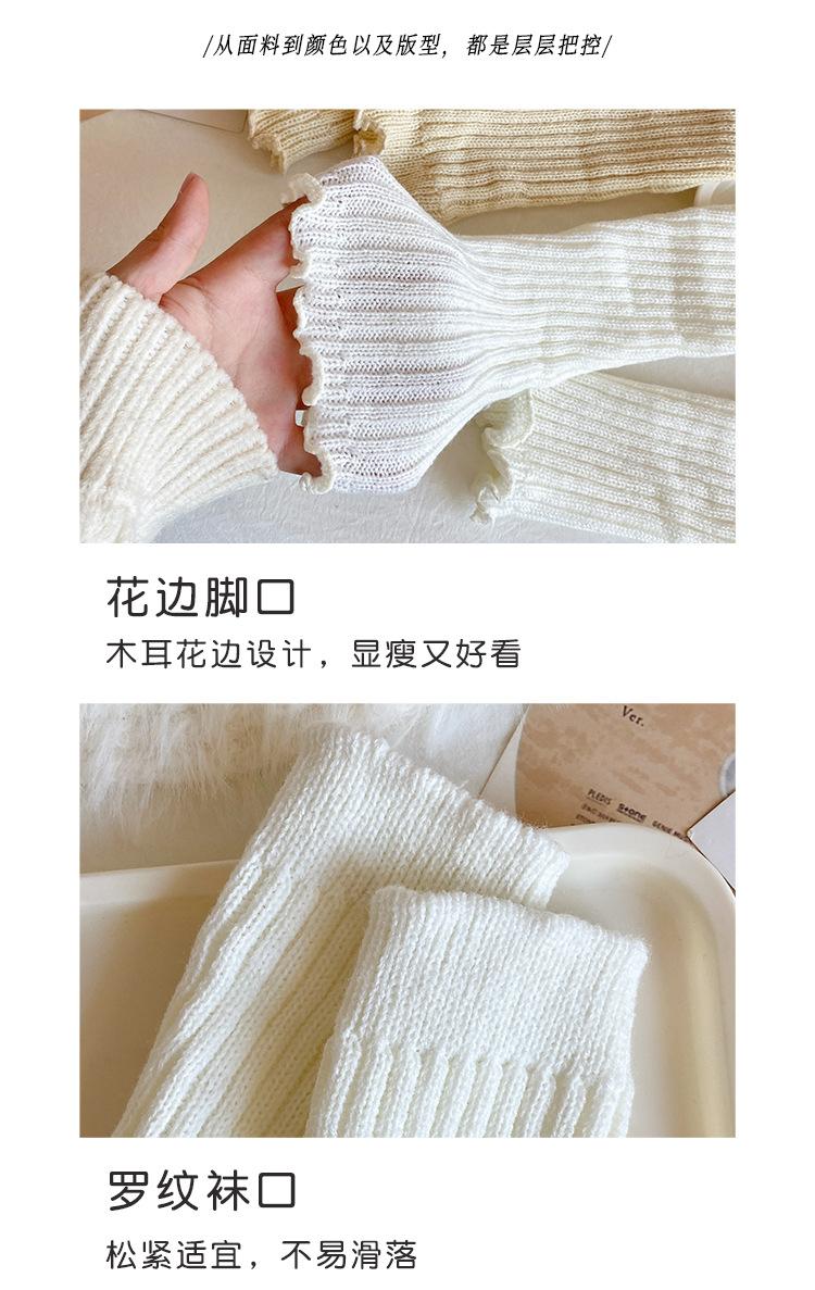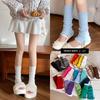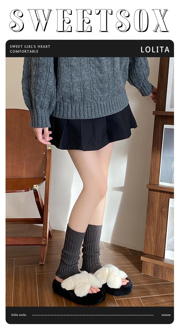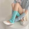Calcetines apilados de tubo medio estilo japonés para mujer, estilo universitario, primavera y otoño, con encaje de color liso, para otoño e invierno, de lana Lolita.