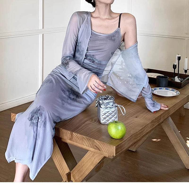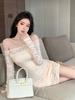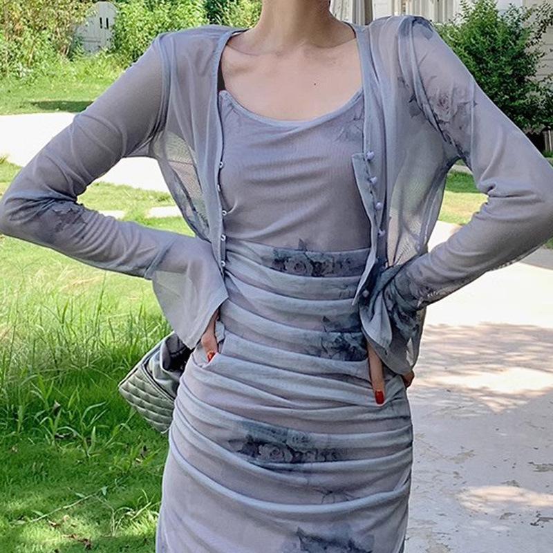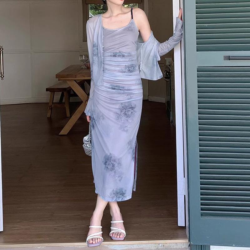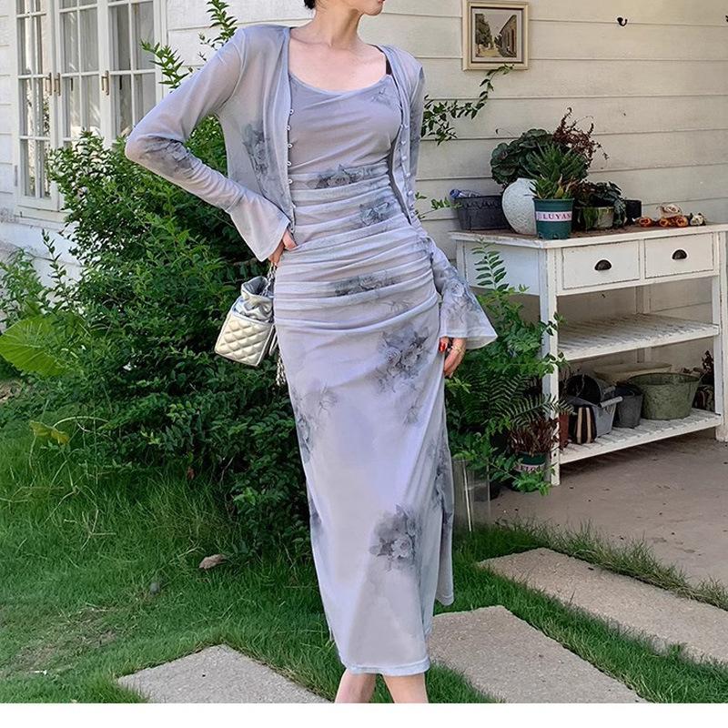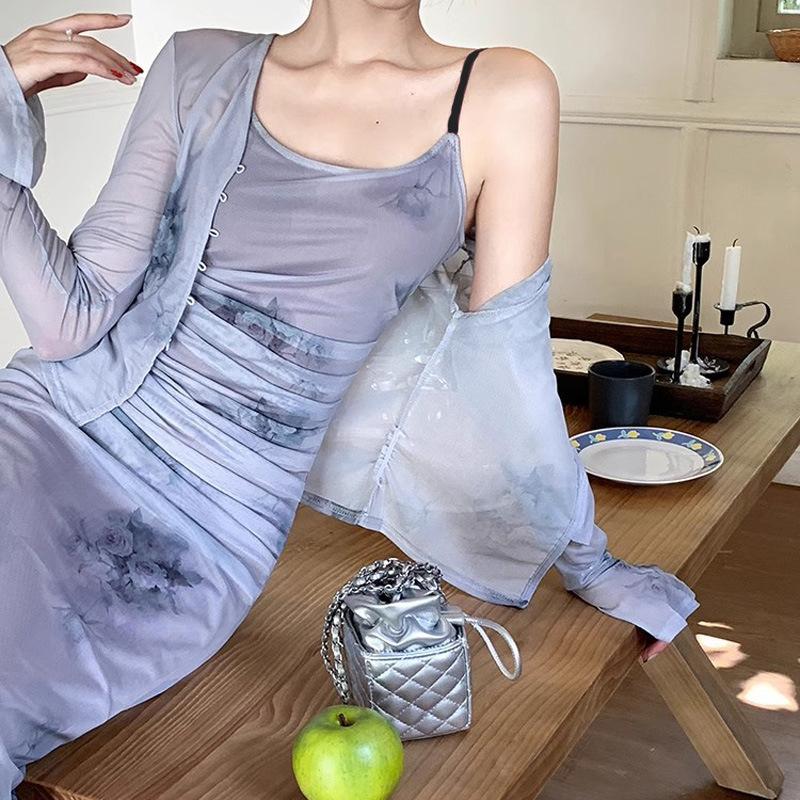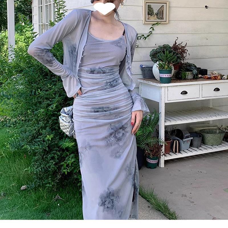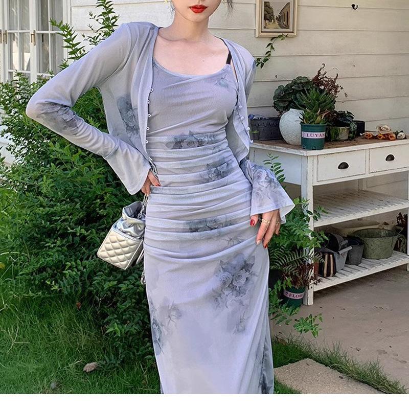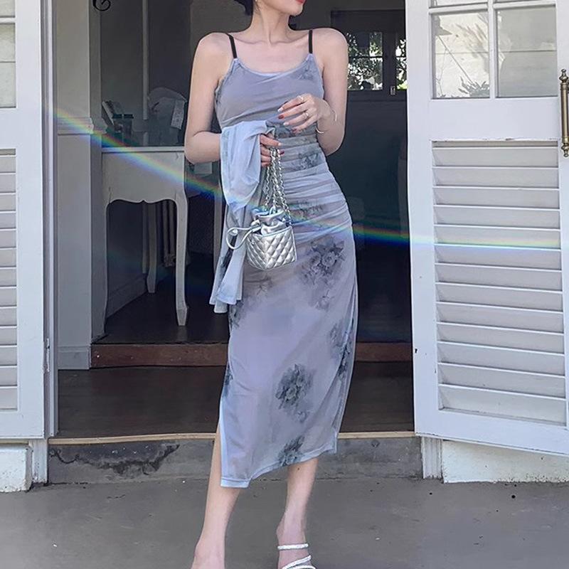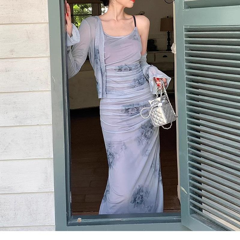 Vestido lencero estilo francés vintage con rosas, plisado, estampado a la cadera, para mujer, novedad de 2024