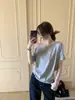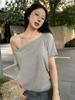 Camiseta de manga corta gris con hombros descubiertos de Niche Design para mujer, estilo informal, holgado y elegante, de verano, color negro