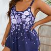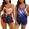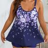 Traje de baño tankini con estampado bicolor europeo y americano Xingcheng 2024, traje de baño dividido de talla grande con tirantes conservadores de comercio exterior para mujer