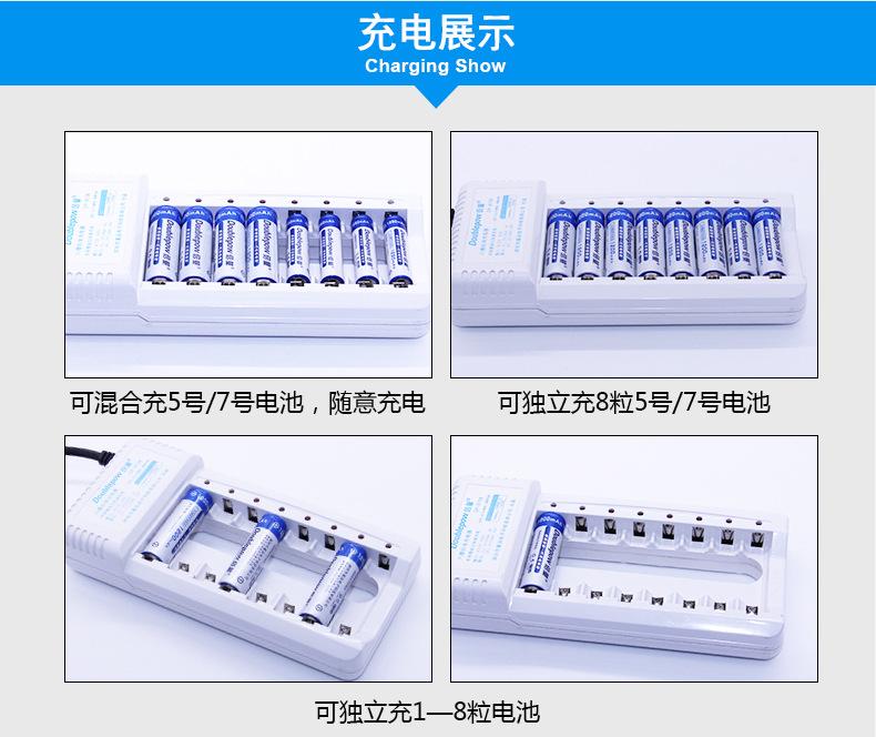 Puede cargar de 1 a 8 pilas AA o AA individualmente, y puede mezclar pilas recargables AA y AA de 1,2 V de diferentes marcas.
