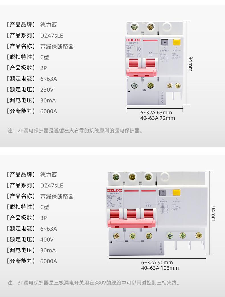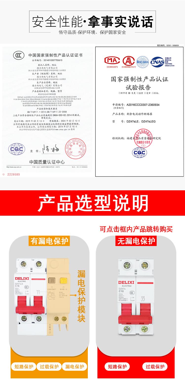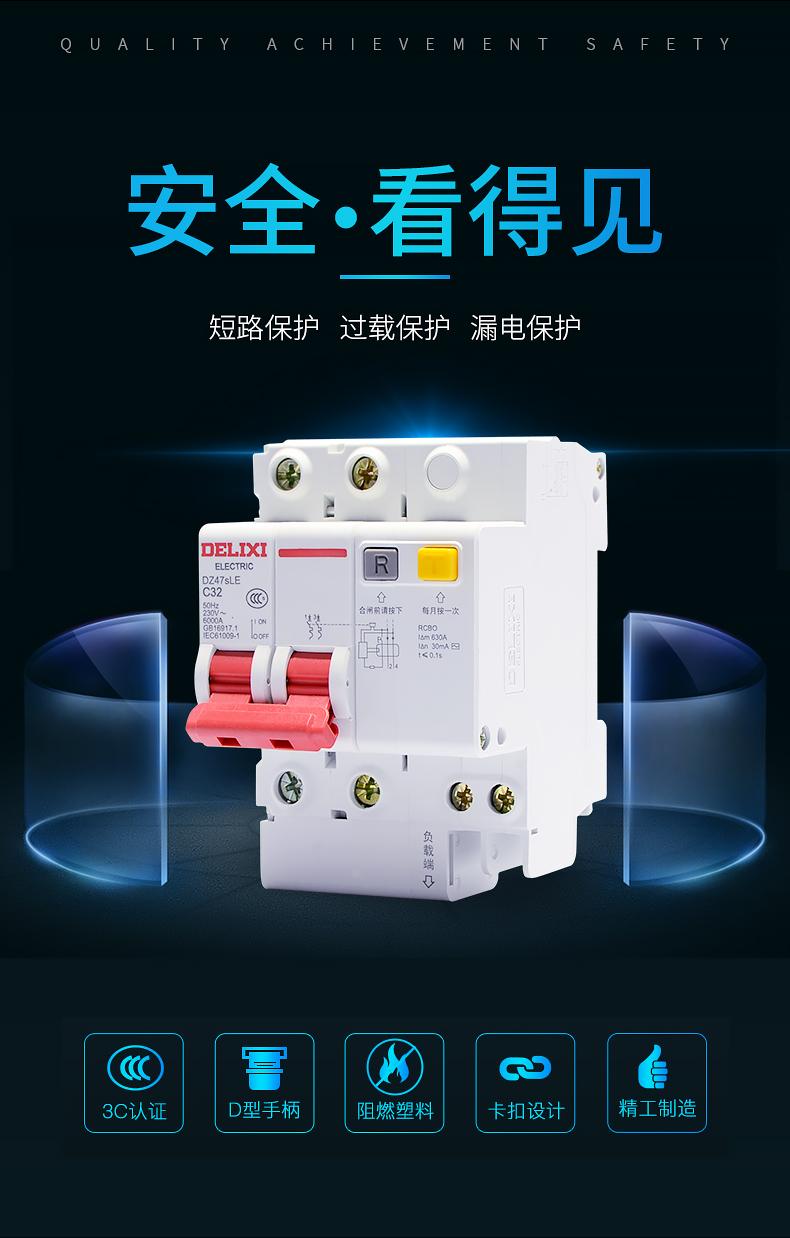 Interruptor de aire Delixi con disyuntor de protección contra fugas 1P + N doméstico 2p interruptor trifásico 3p Interruptor de aire 4p protección contra fugas