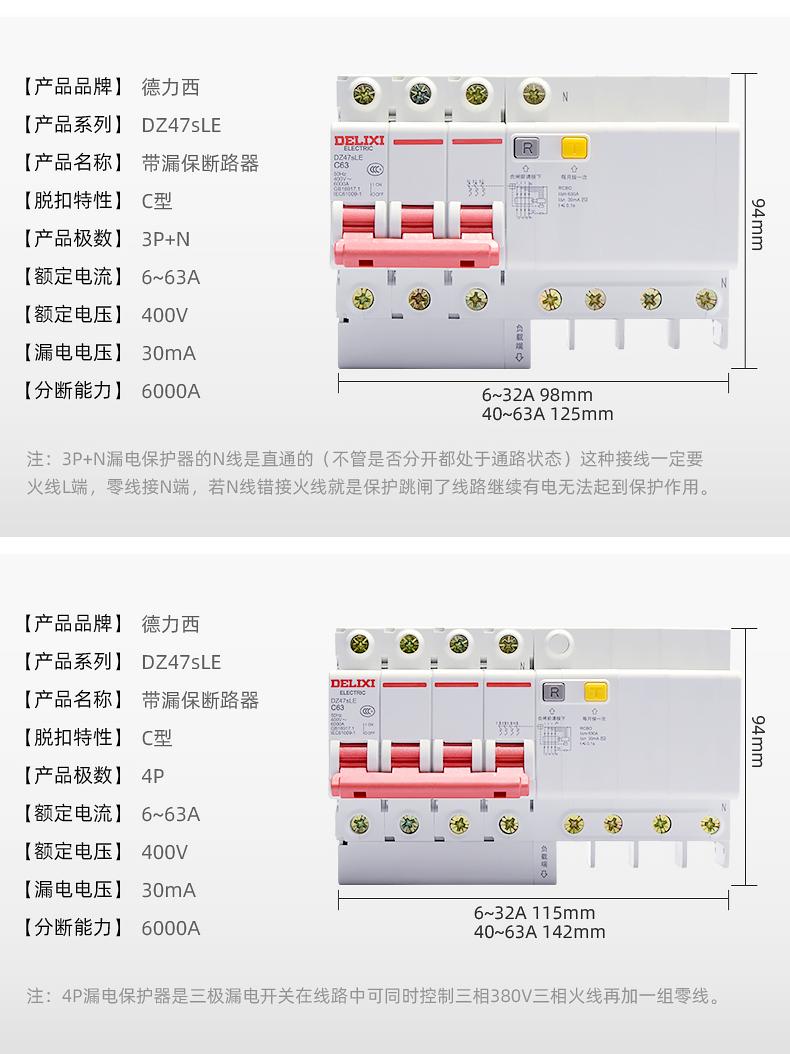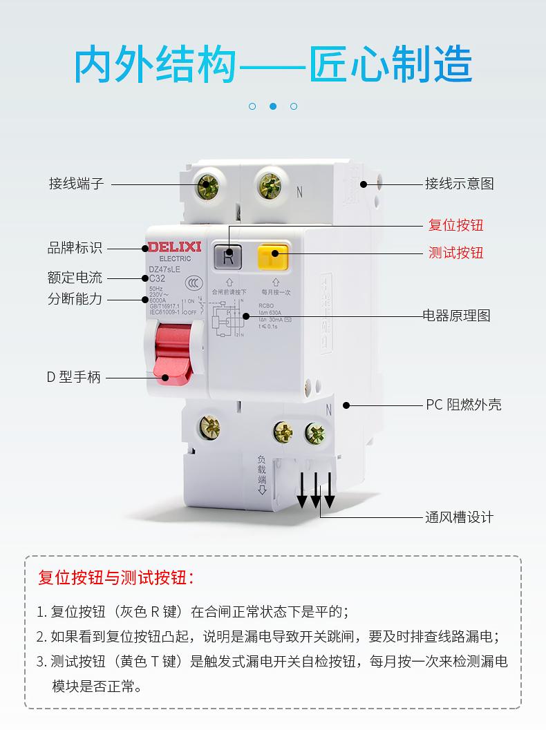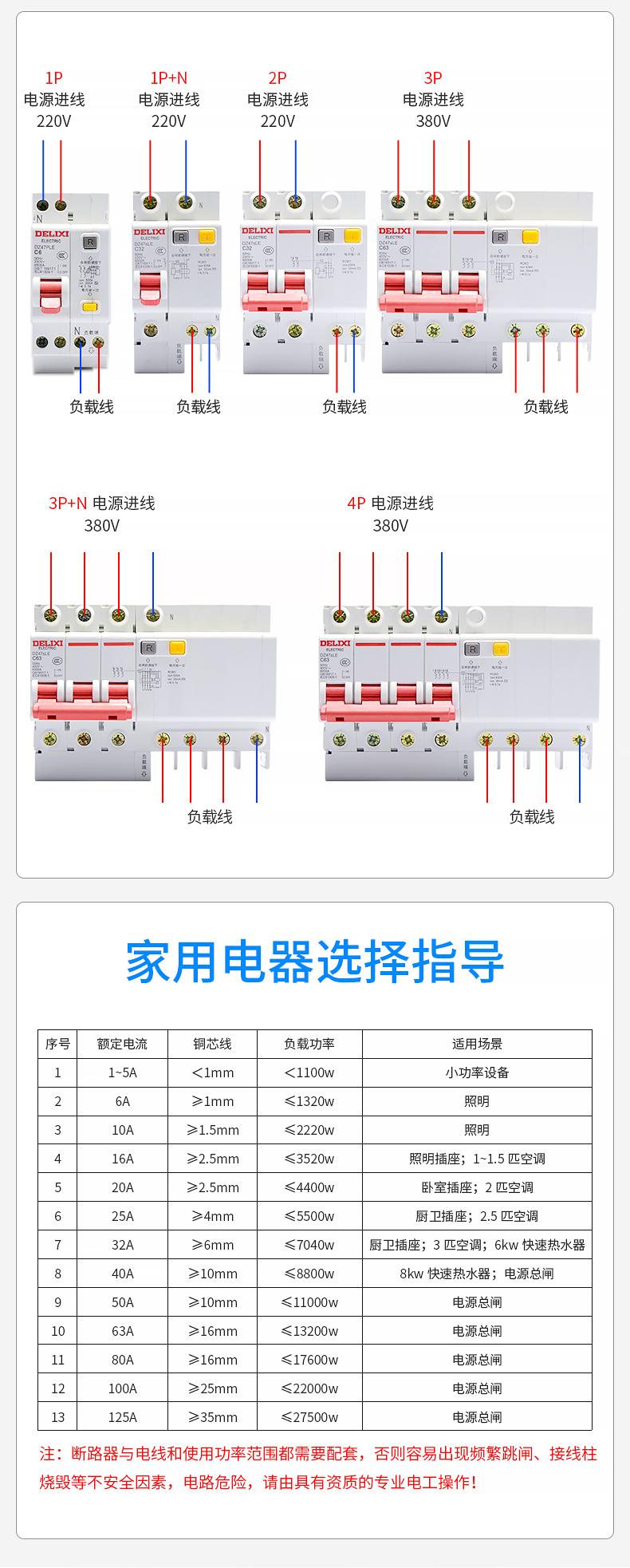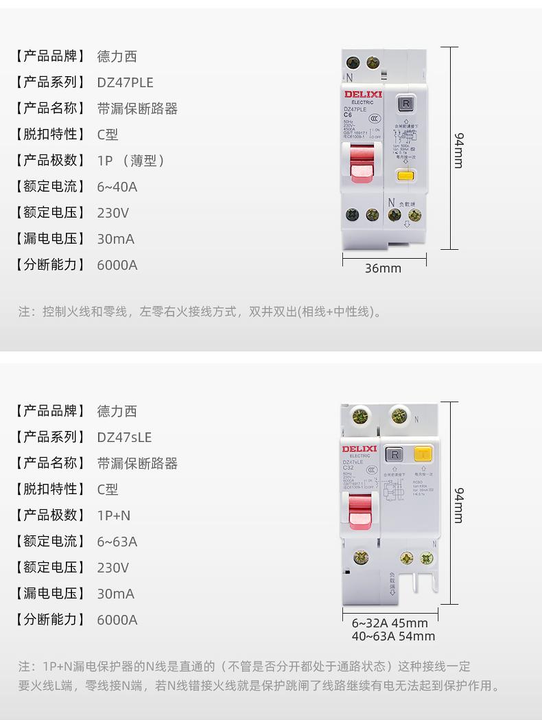 Interruptor de aire Delixi con disyuntor de protección contra fugas 1P + N doméstico 2p interruptor trifásico 3p Interruptor de aire 4p protección contra fugas
