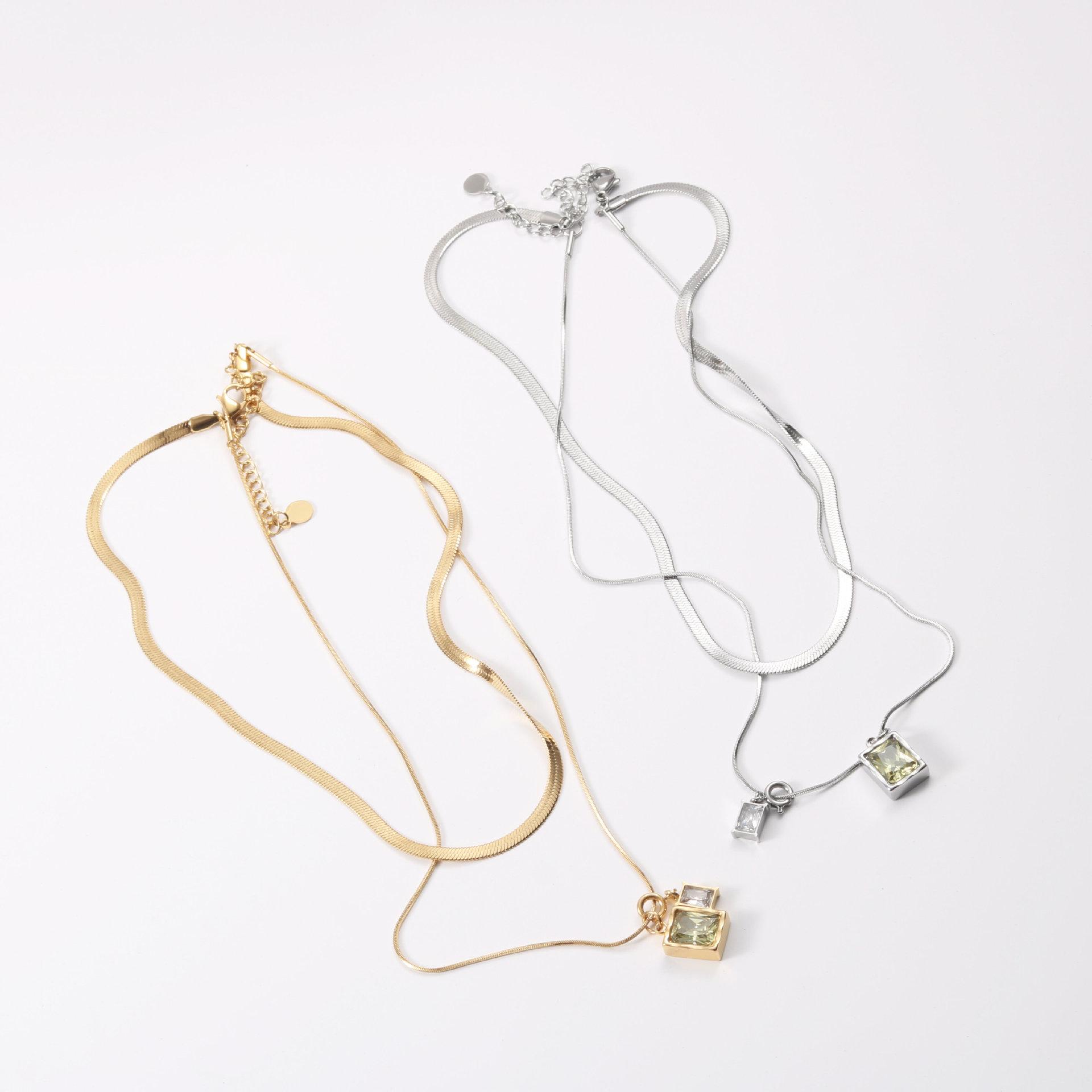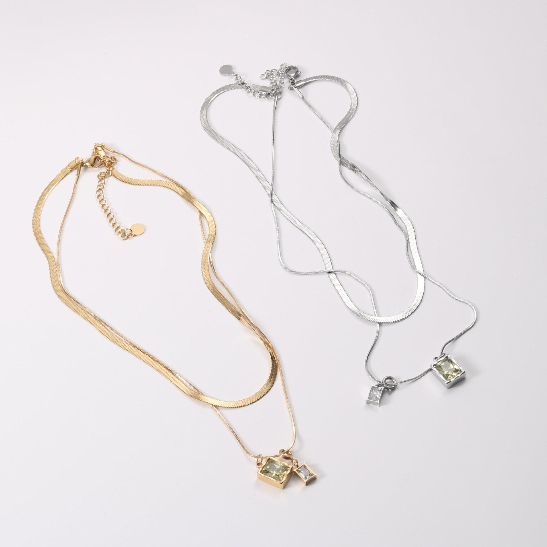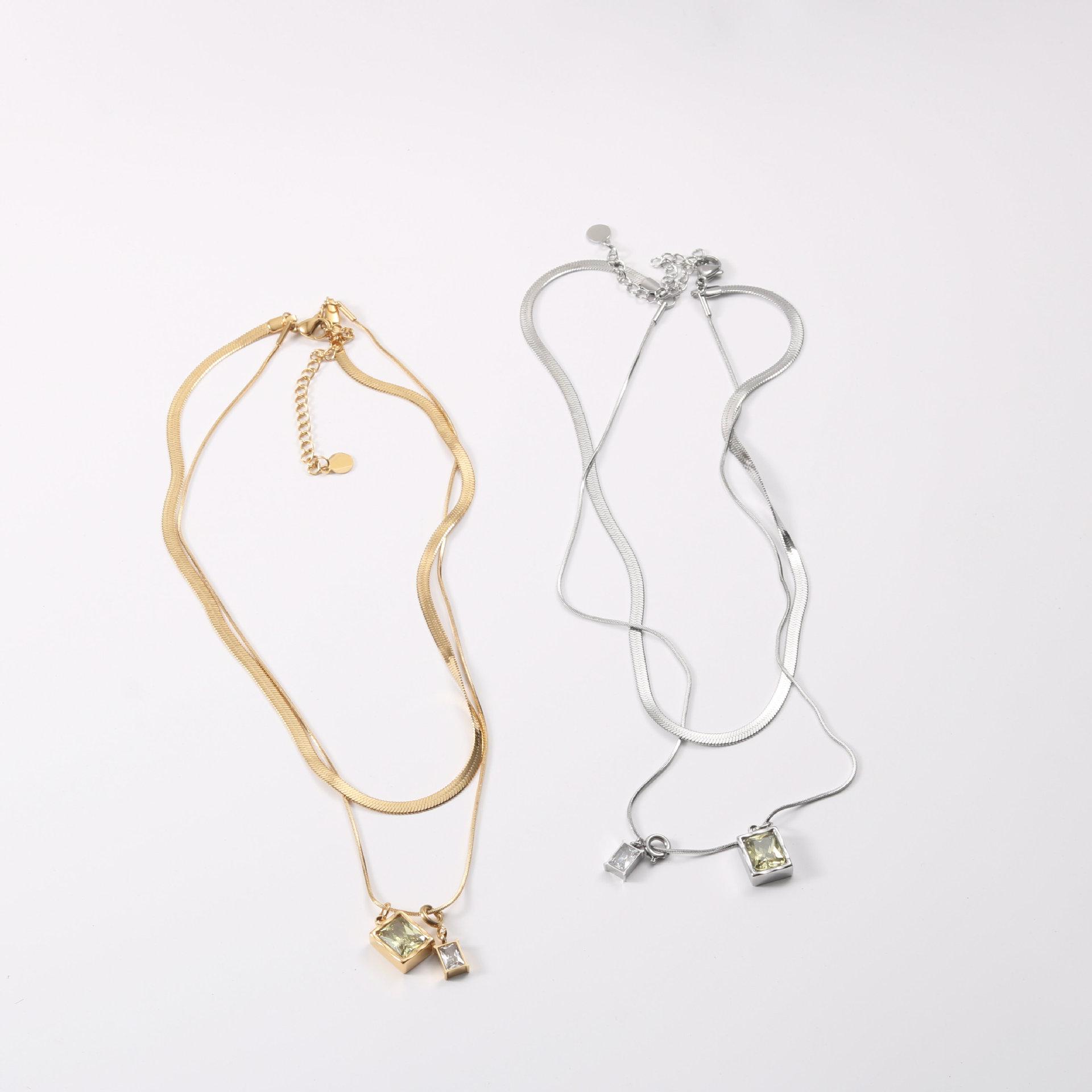 Collar de la serie Microlight, diseño de nicho femenino, cadena de clavícula superpuesta de doble capa, cadena de hueso de serpiente 2022, acero de titanio chapado en oro