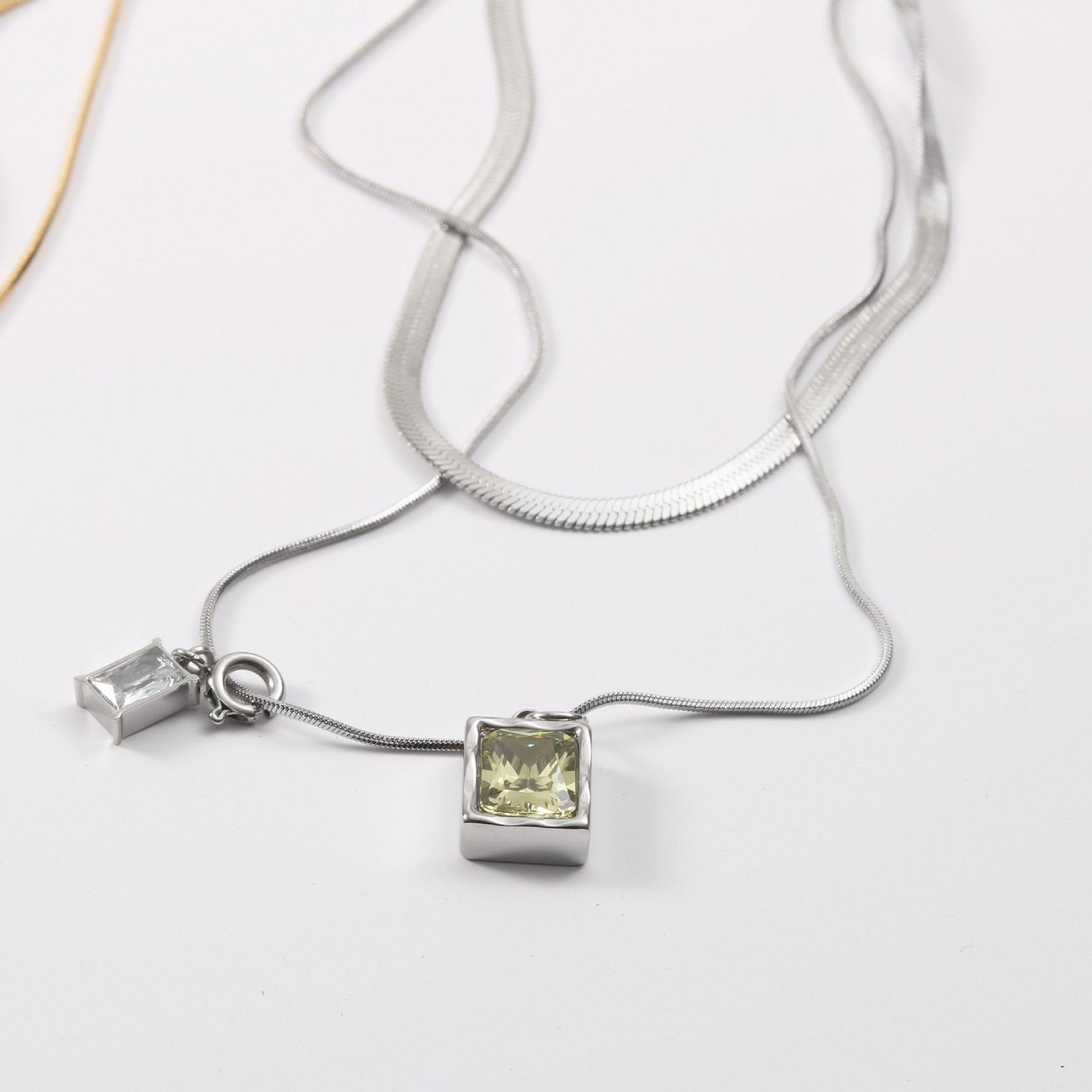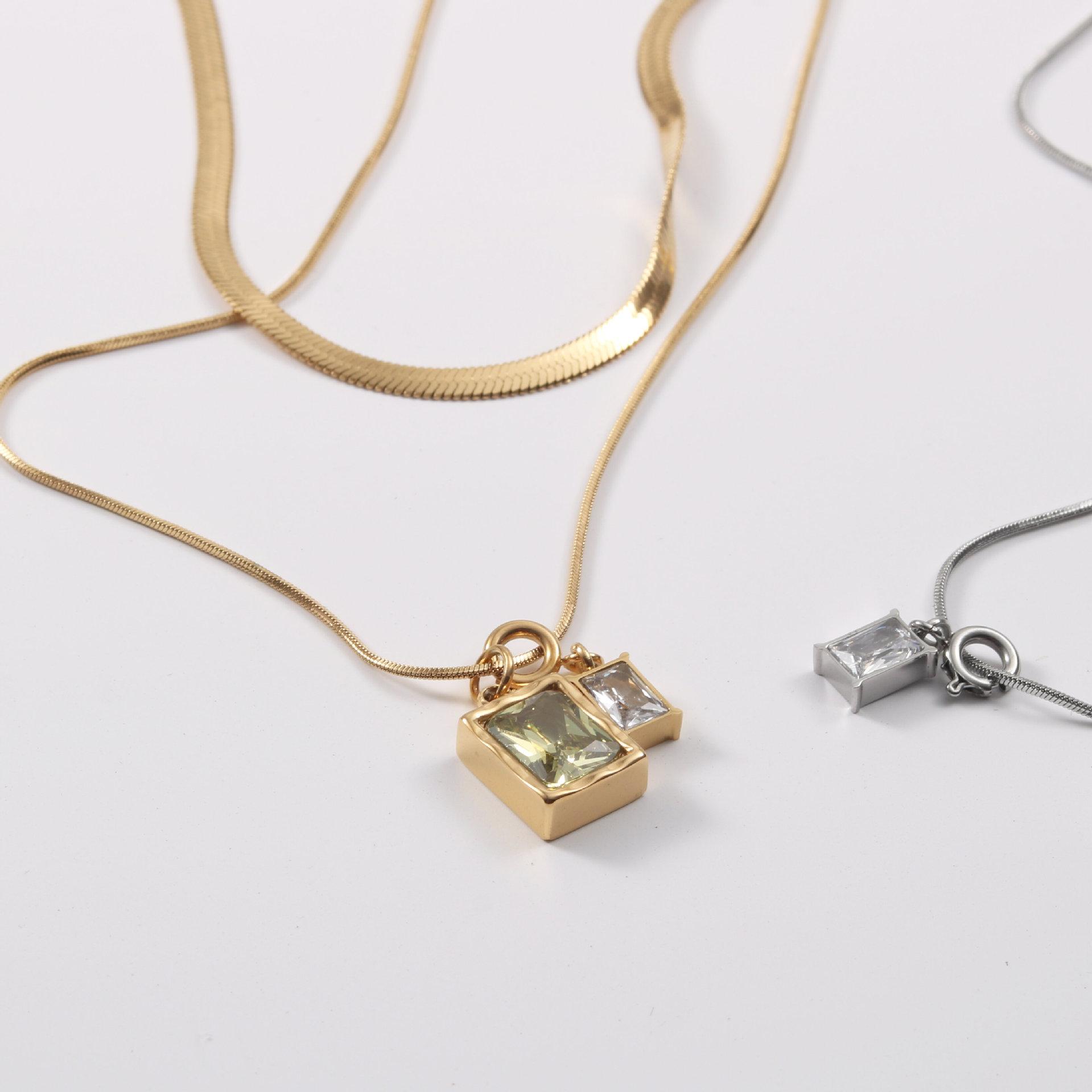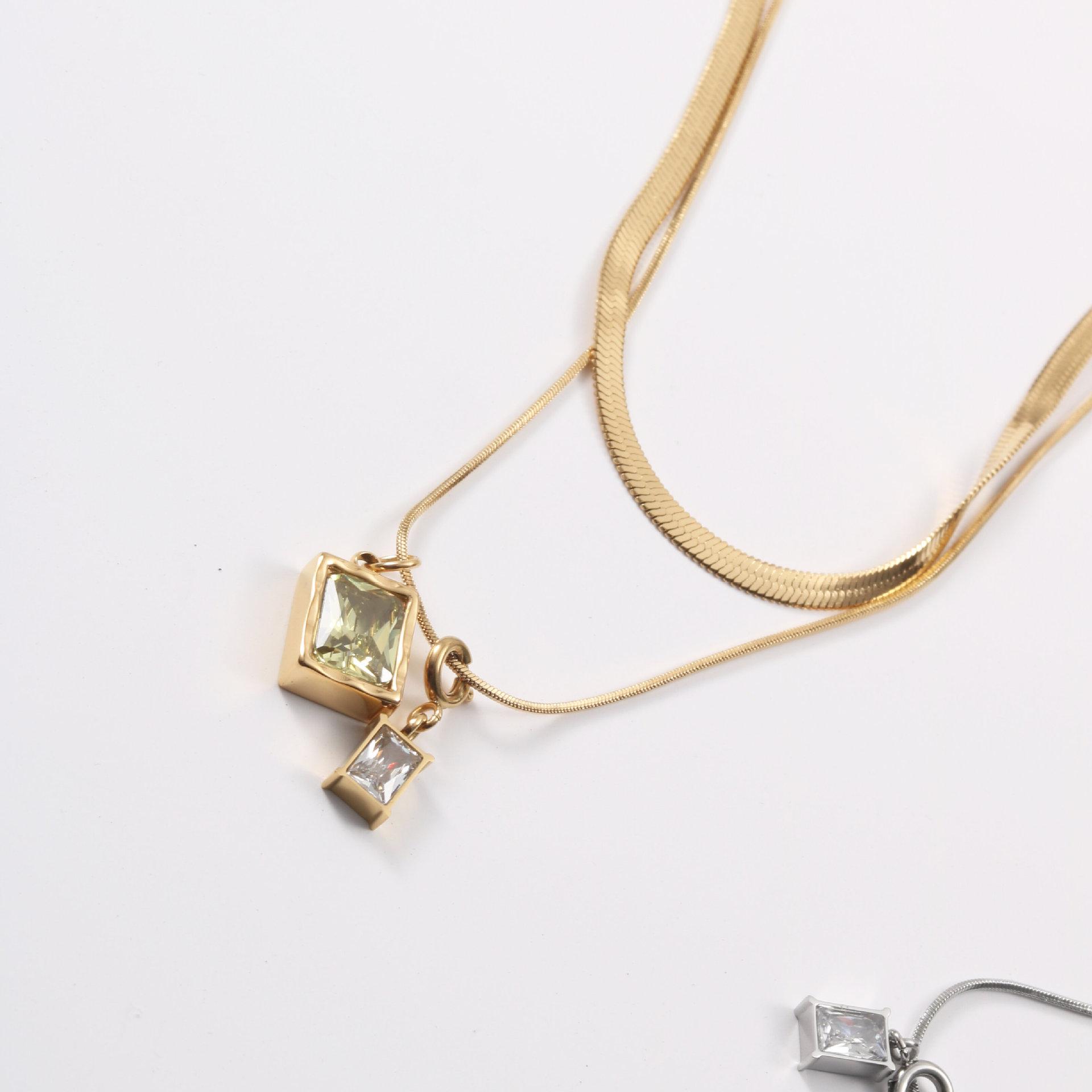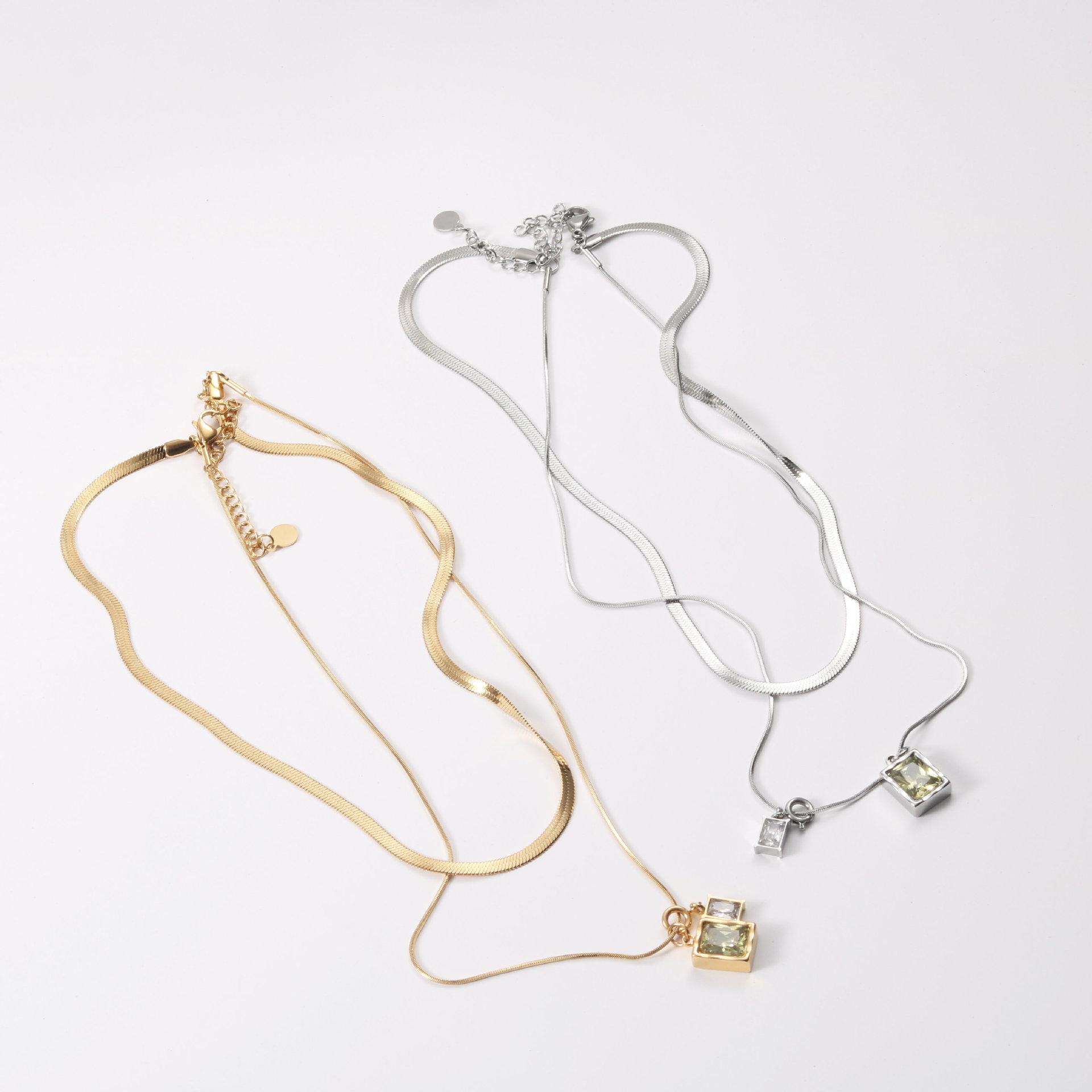 Collar de la serie Microlight, diseño de nicho femenino, cadena de clavícula superpuesta de doble capa, cadena de hueso de serpiente 2022, acero de titanio chapado en oro