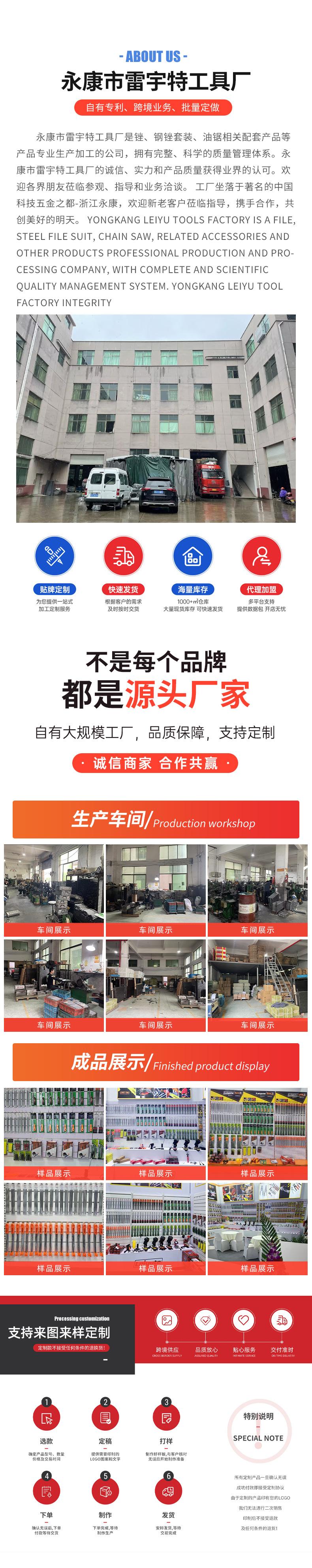http://www.leiyute.comLei Yute fue fundada en 1994 y se ha dedicado a la producción profesional de herramientas de jardín durante 20 años. Tiene fuertes ventajas en limas, productos de soporte para limas y amoladoras de cadena.