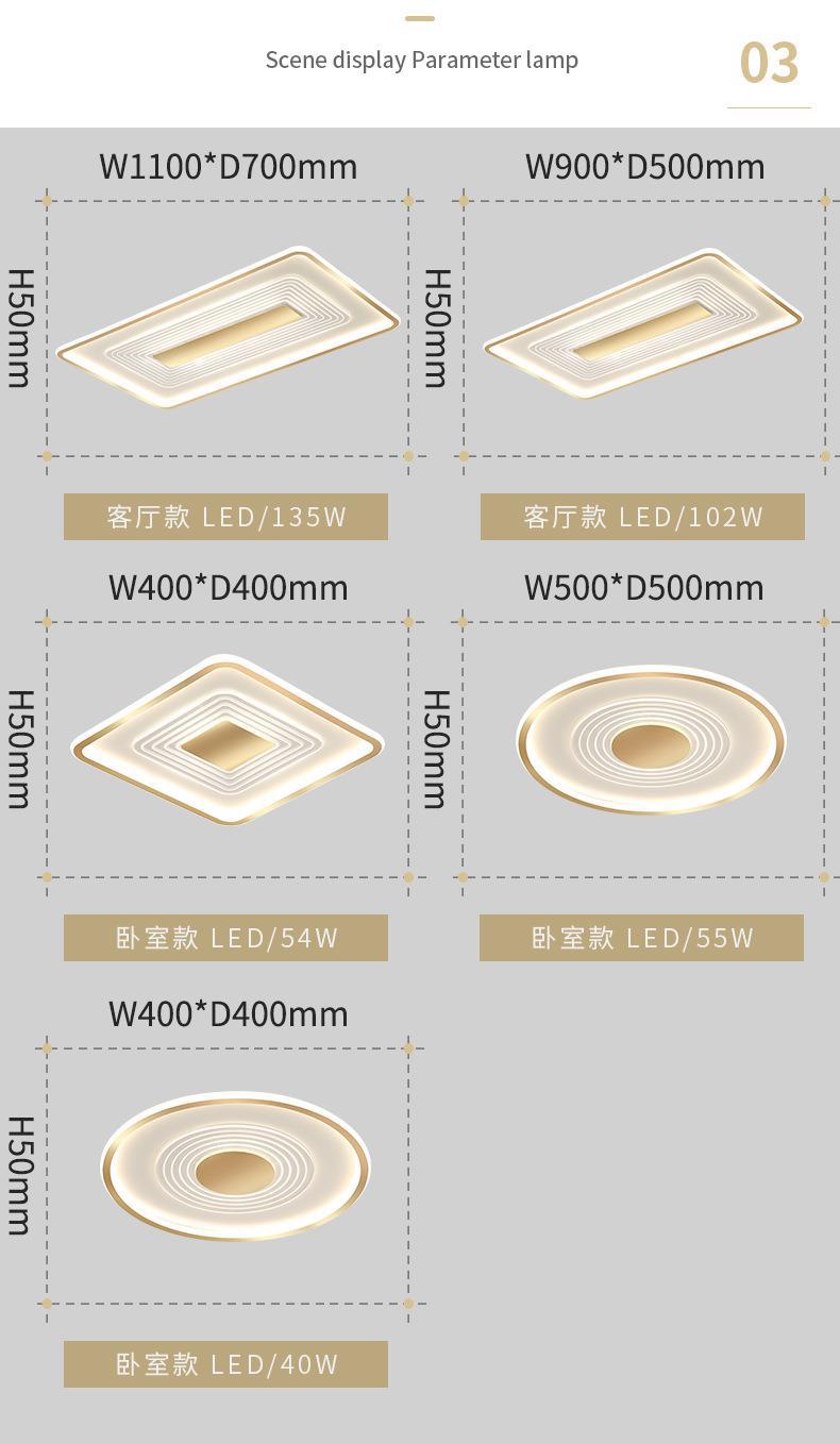 Square gold diameter 50CM-60W, Rectangular gold diameter 110x70CM-130W, Round gold diameter 50CM-55W