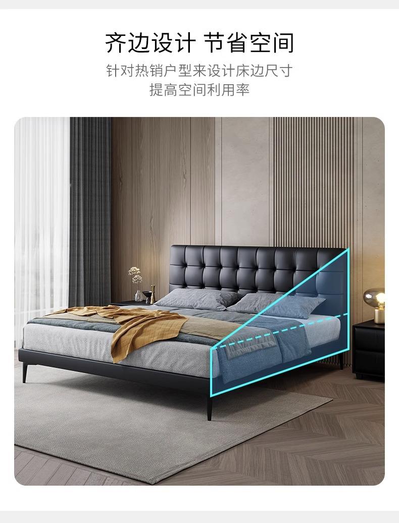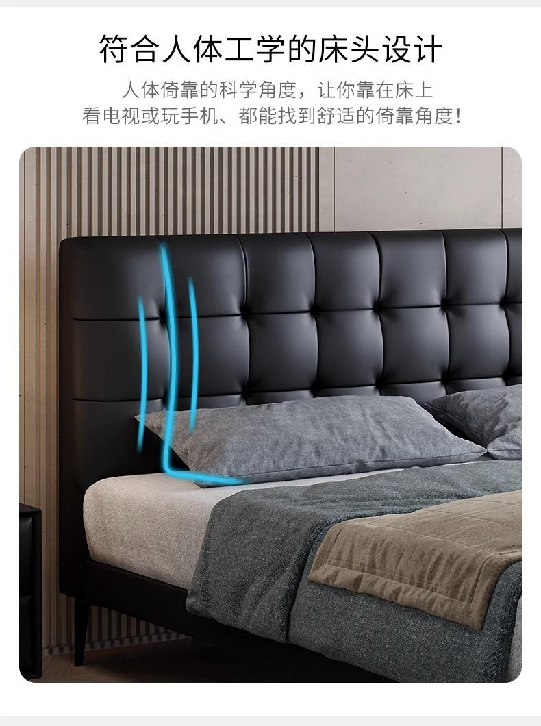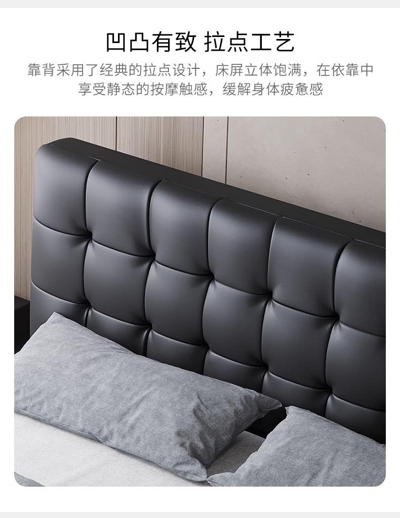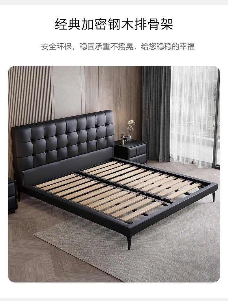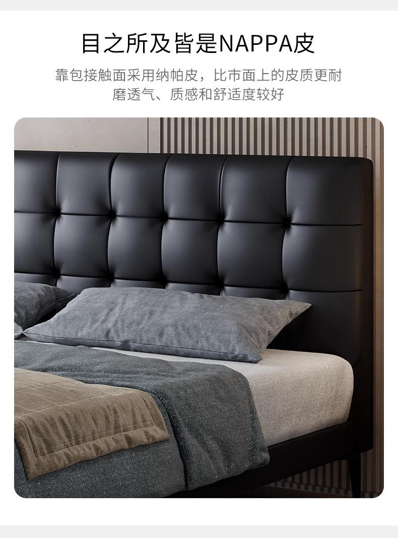 Cama moderna y sencilla de cuero negro, estilo nórdico, ligera, de lujo, para apartamento pequeño, cama auxiliar suave, para dormitorio principal, cama doble minimalista italiana.