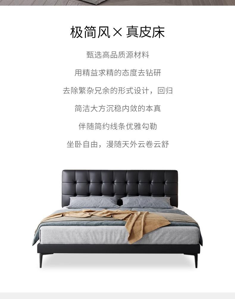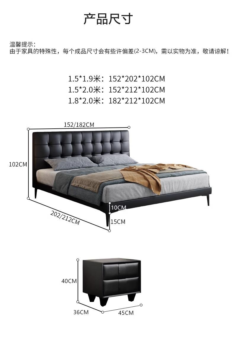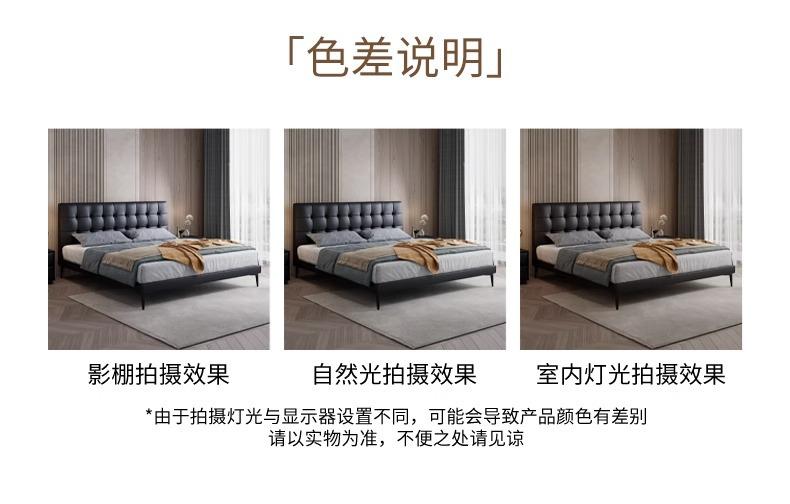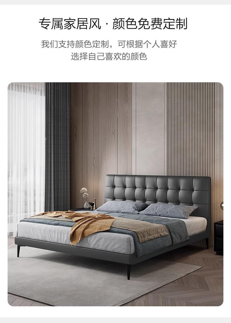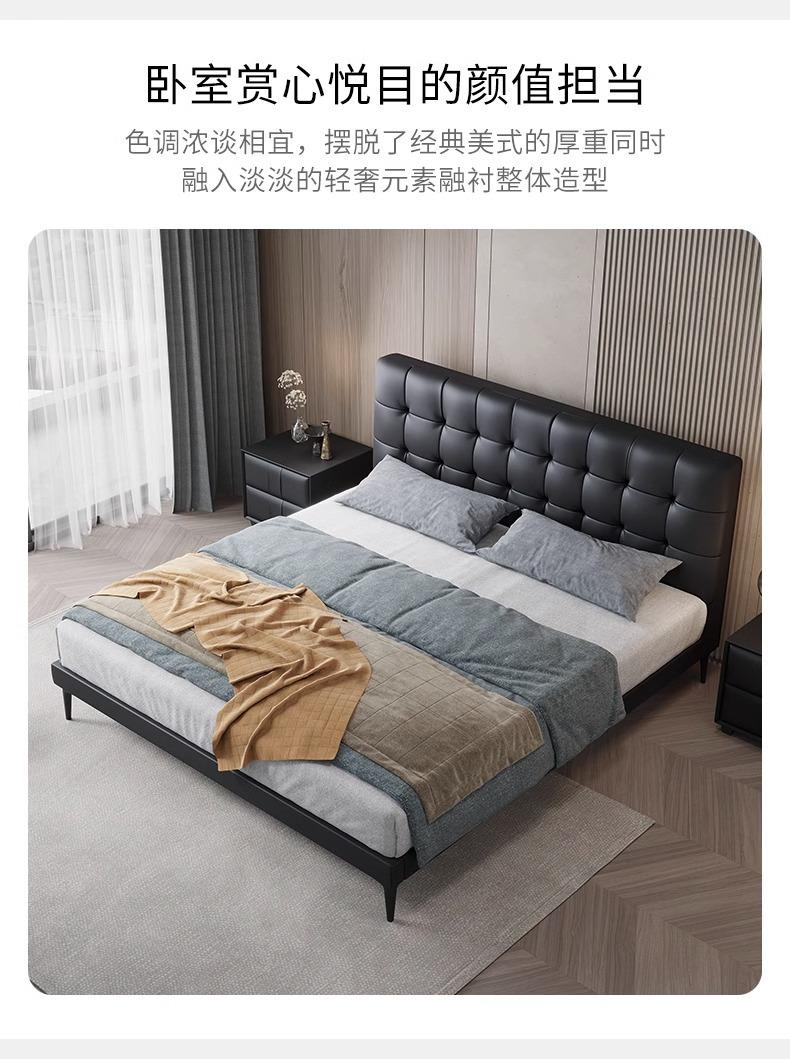 Cama moderna y sencilla de cuero negro, estilo nórdico, ligera, de lujo, para apartamento pequeño, cama auxiliar suave, para dormitorio principal, cama doble minimalista italiana.